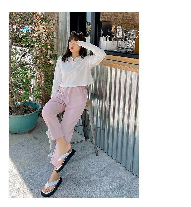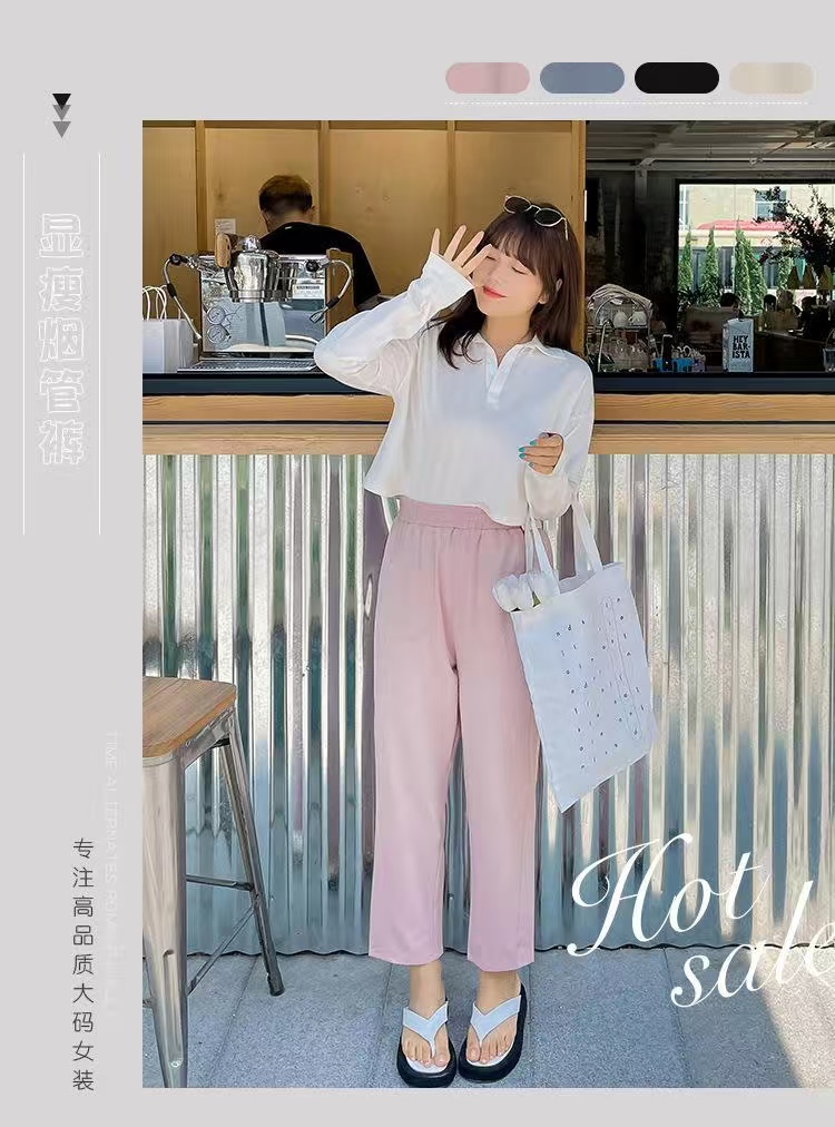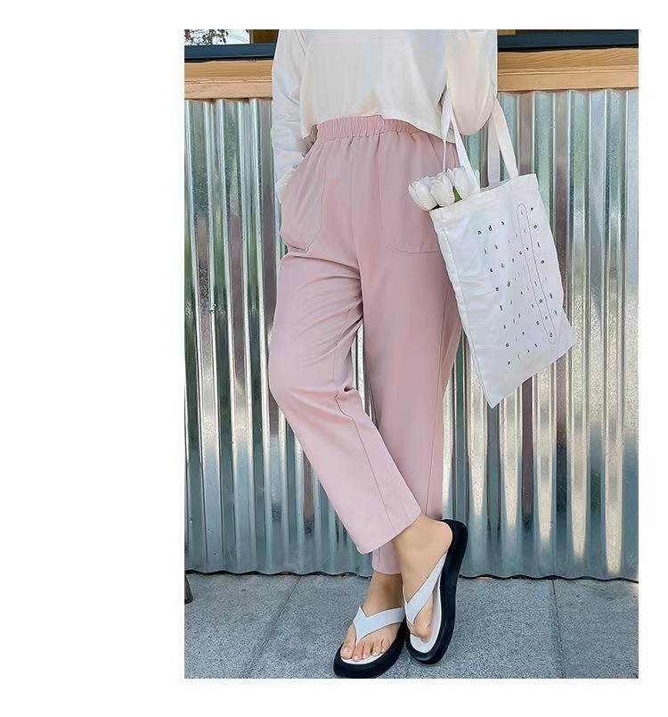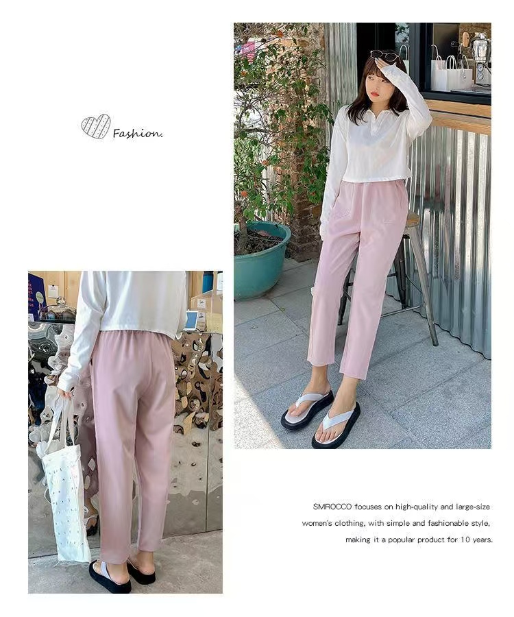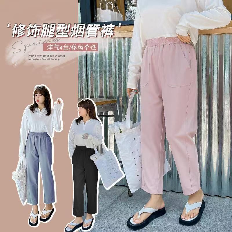 【诗铭洛可】W401 烟管裤65%黏胶纤维松紧腰超显瘦老爹裤B19-2