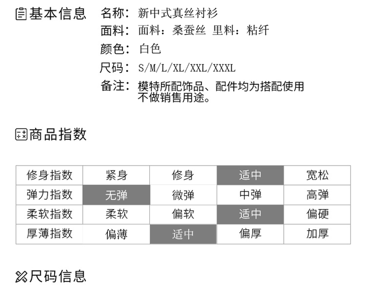 3、规格、尺码等;
