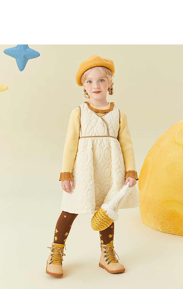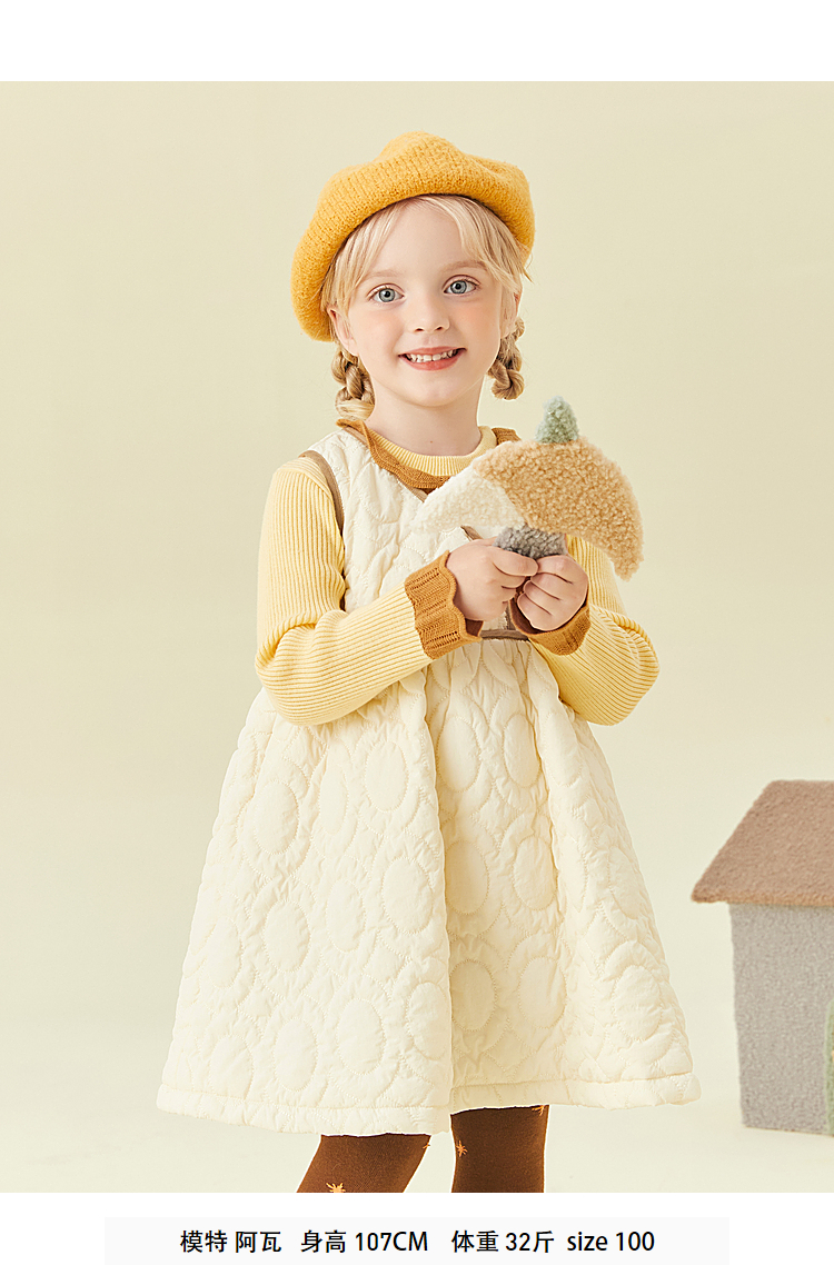 【秒】【专柜同款】MQD童装女小童夹棉连衣裙套装秋冬新款复古儿童裙子