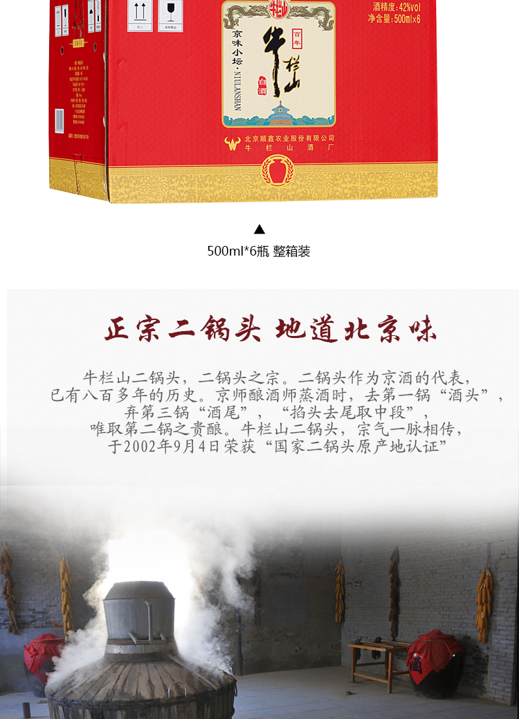 【推荐】牛栏山 百年 京味小坛(红) 42度 500ml6