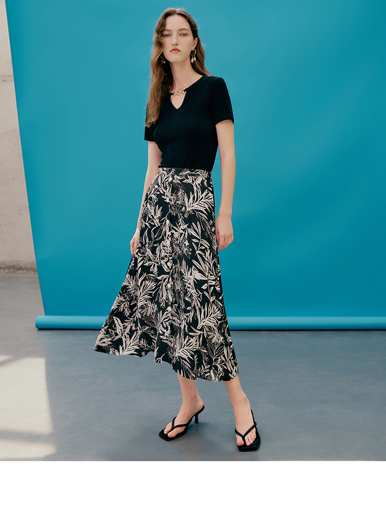 vimage纬漫纪夏季花色直筒裤宽松高腰遮肉休闲裤女九分裤V1105723