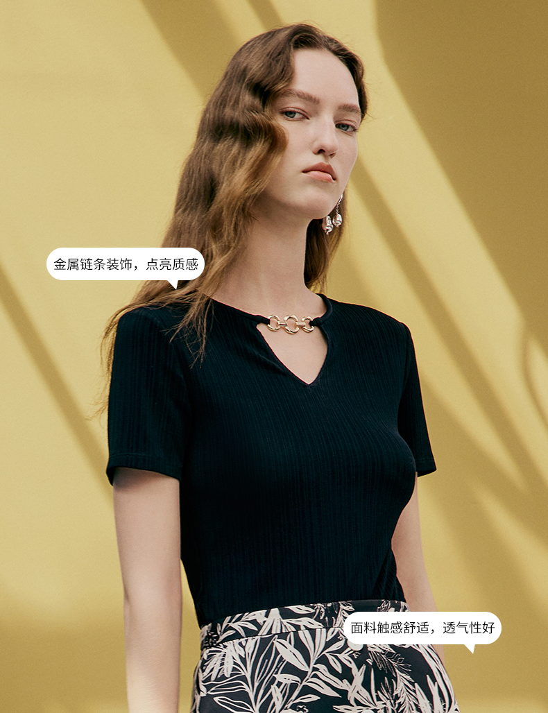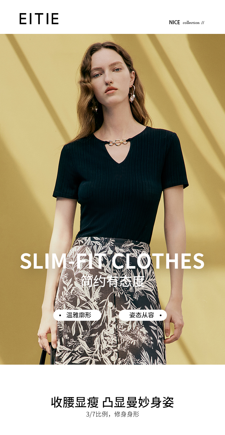 EITIE爱特爱新款夏季纯色百搭显瘦小上衣7413117