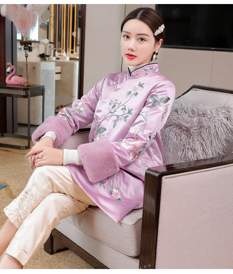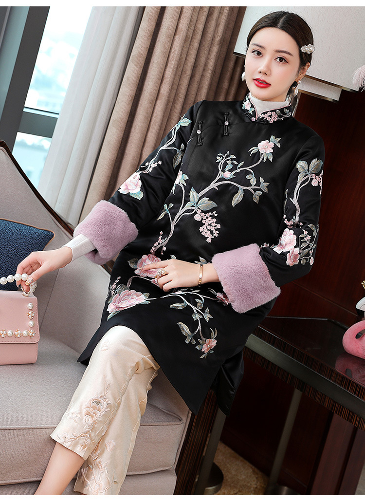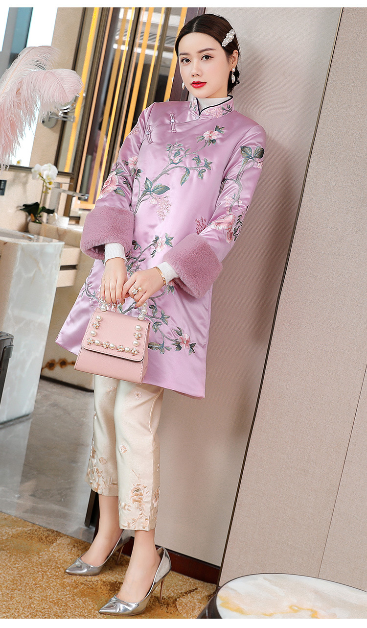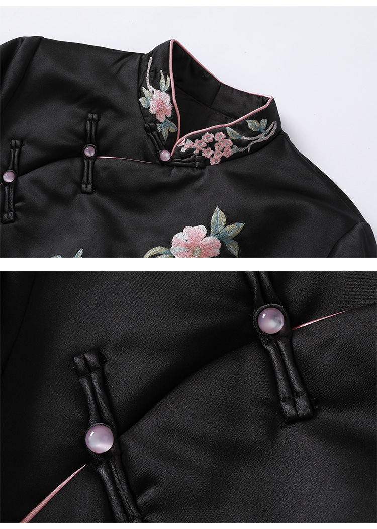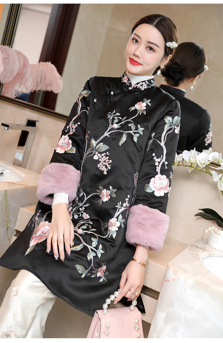 复古中国风,绣花七分袖中长款加厚连衣裙外套KDS-1968