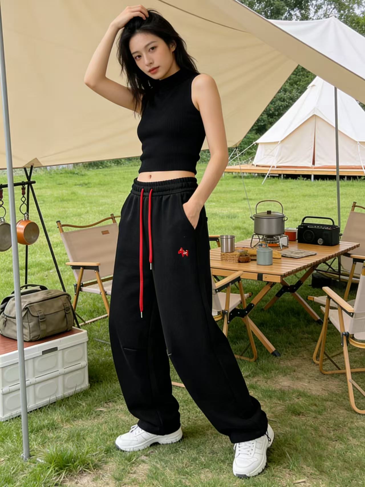 418良粉节|2026 活动爆款 小马刺绣【自营】2601两穿可收口松紧腰弯刀裤休闲裤-喜出