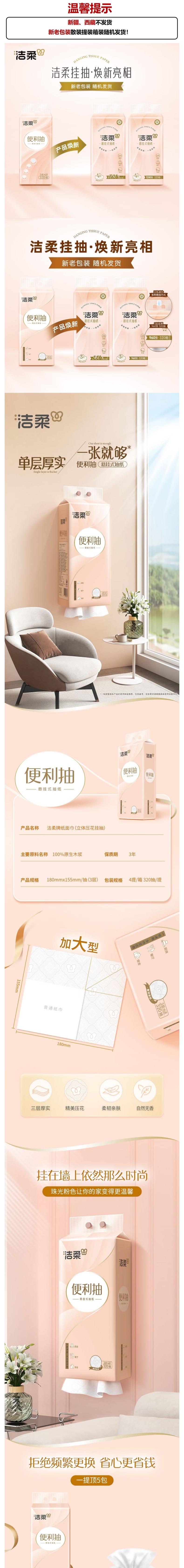 洁柔 便利抽悬挂式抽纸3层320抽*4提 GJR320-04E