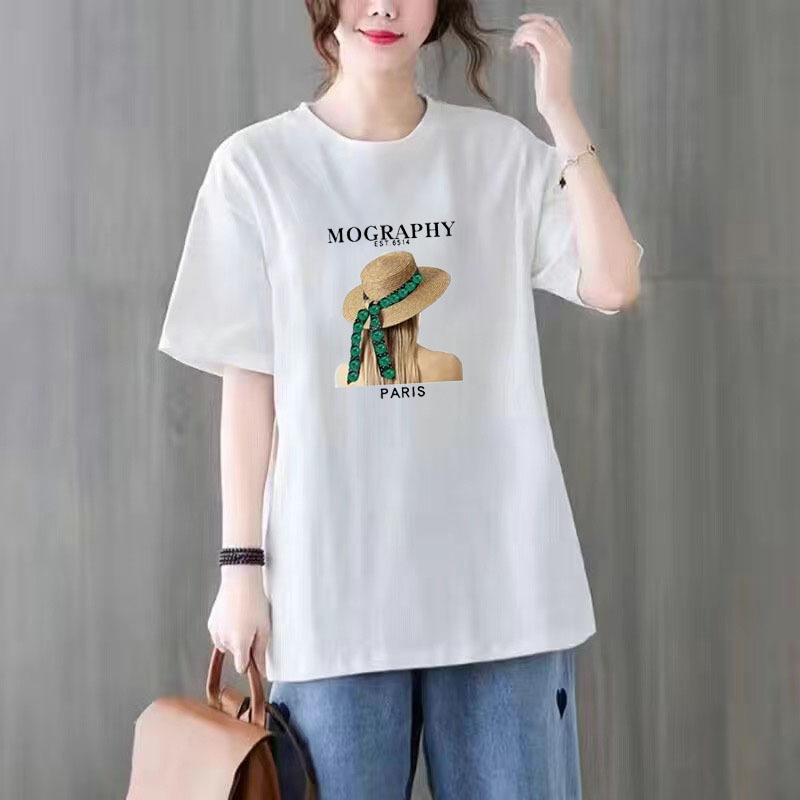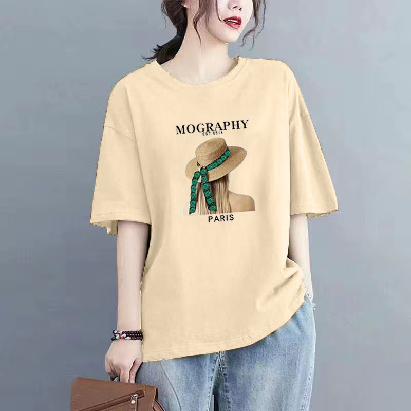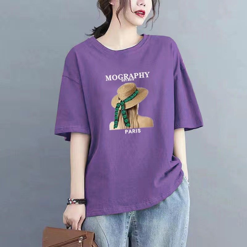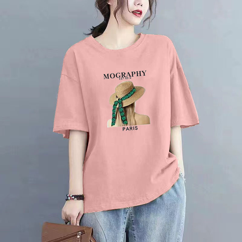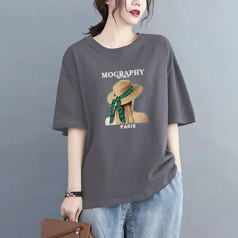 百媚生 纯棉短袖宽松印花T恤1087