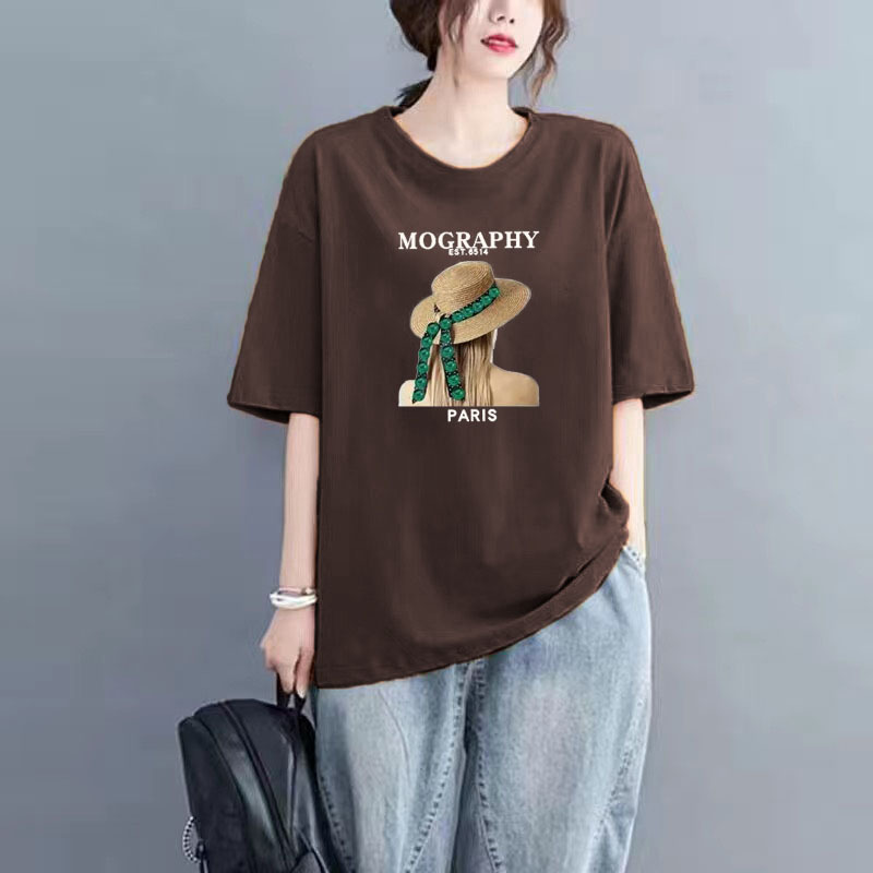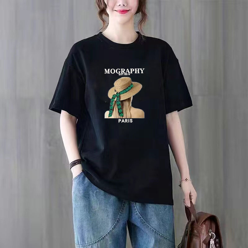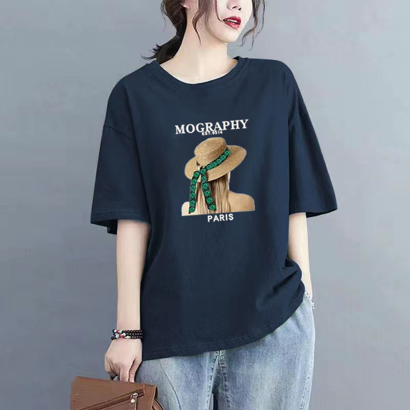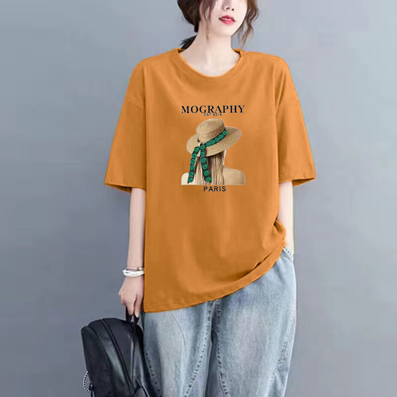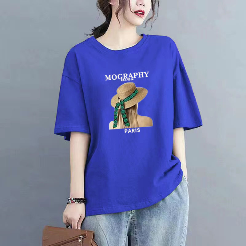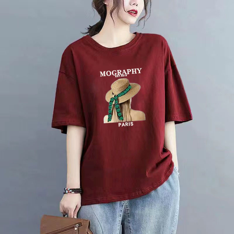 百媚生 纯棉短袖宽松印花T恤1087