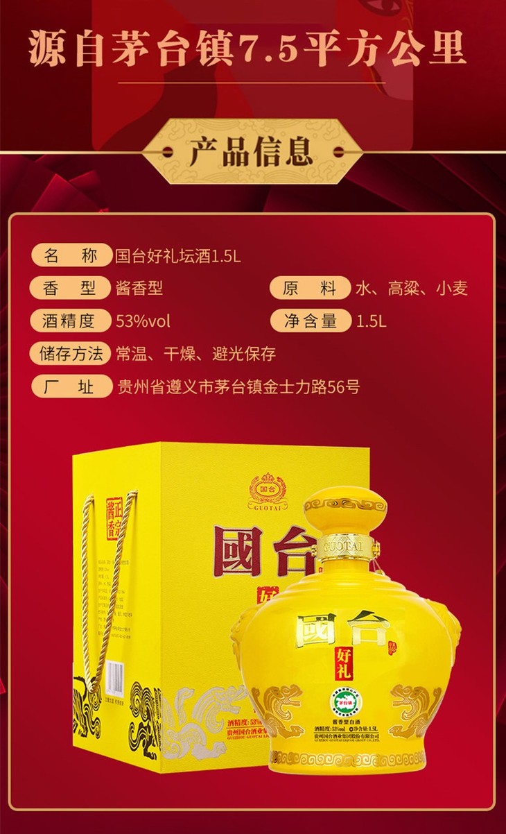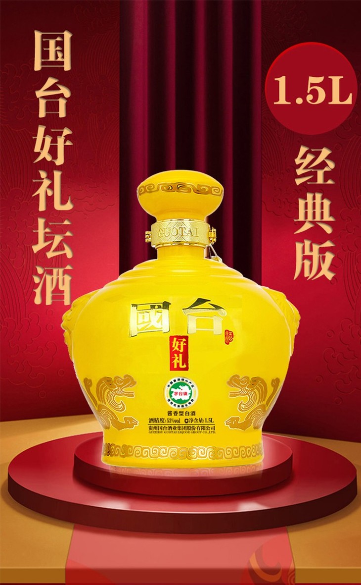 【秒杀】贵州国台酒 好礼经典版 1.5L礼盒装 53度 酱香型白酒(新包装)