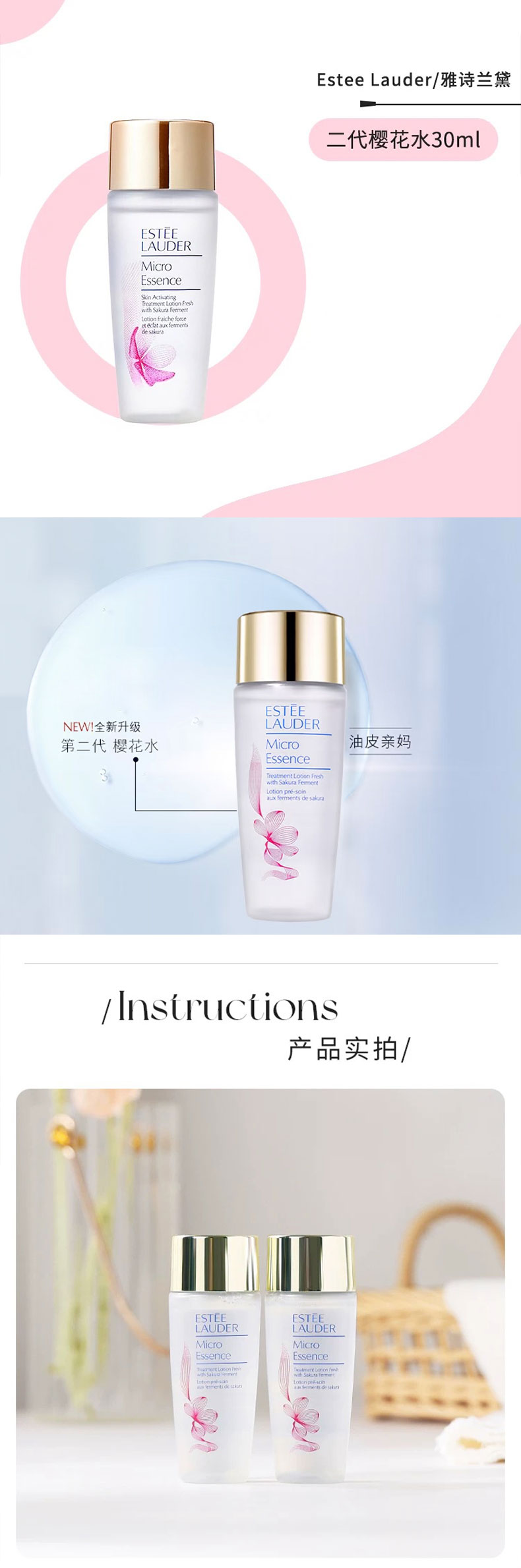 雅诗兰黛小棕瓶微雕眼霜15ml+小棕瓶精华15ml+樱花原生液30ml 香港直邮