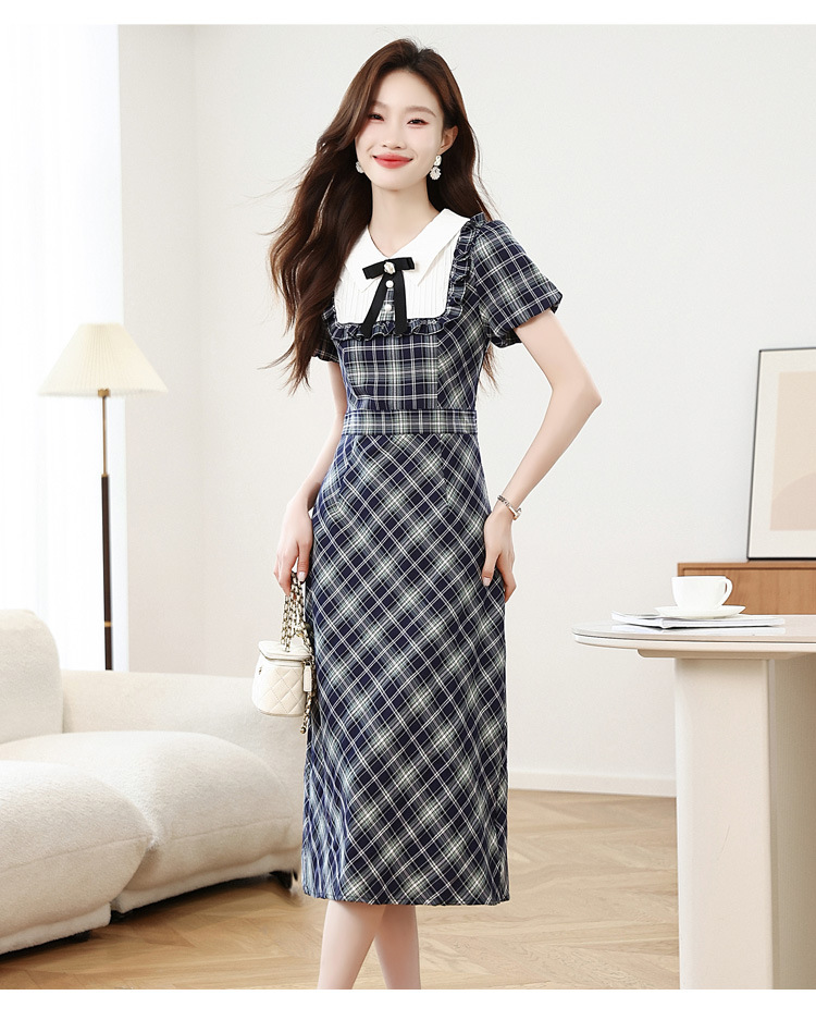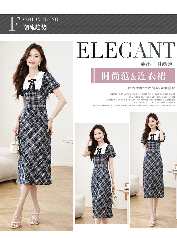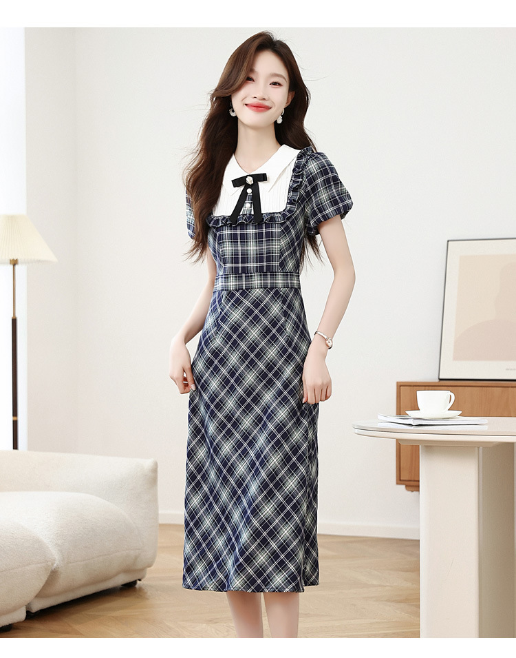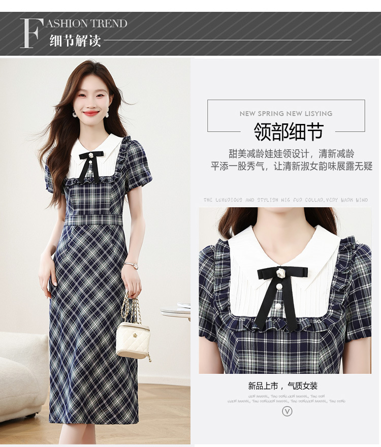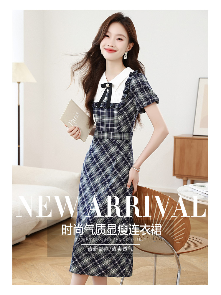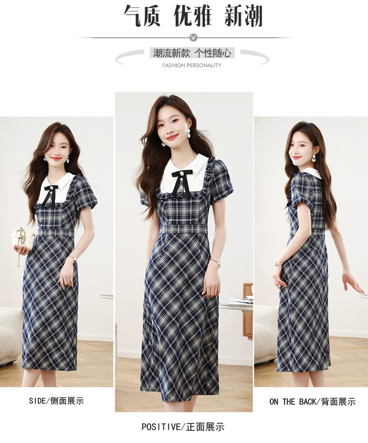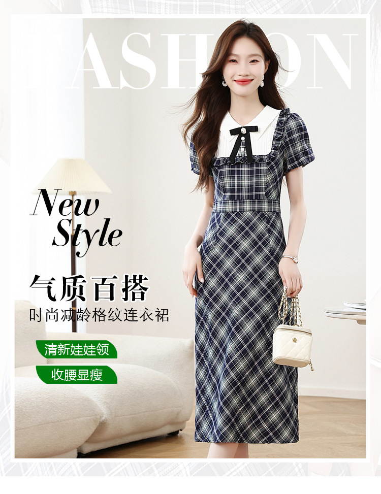 XS9230格子连衣裙女2025夏季新款女装韩系气质优雅设计感小众显瘦长裙