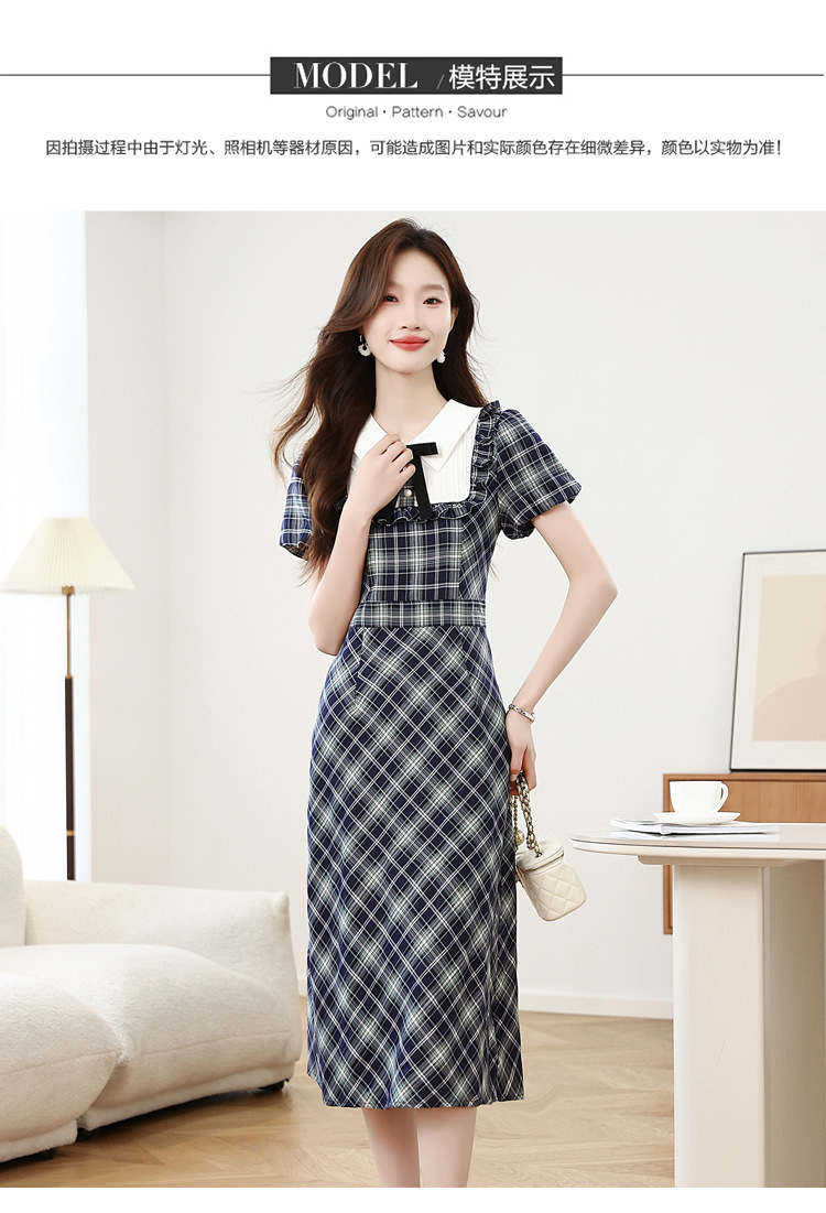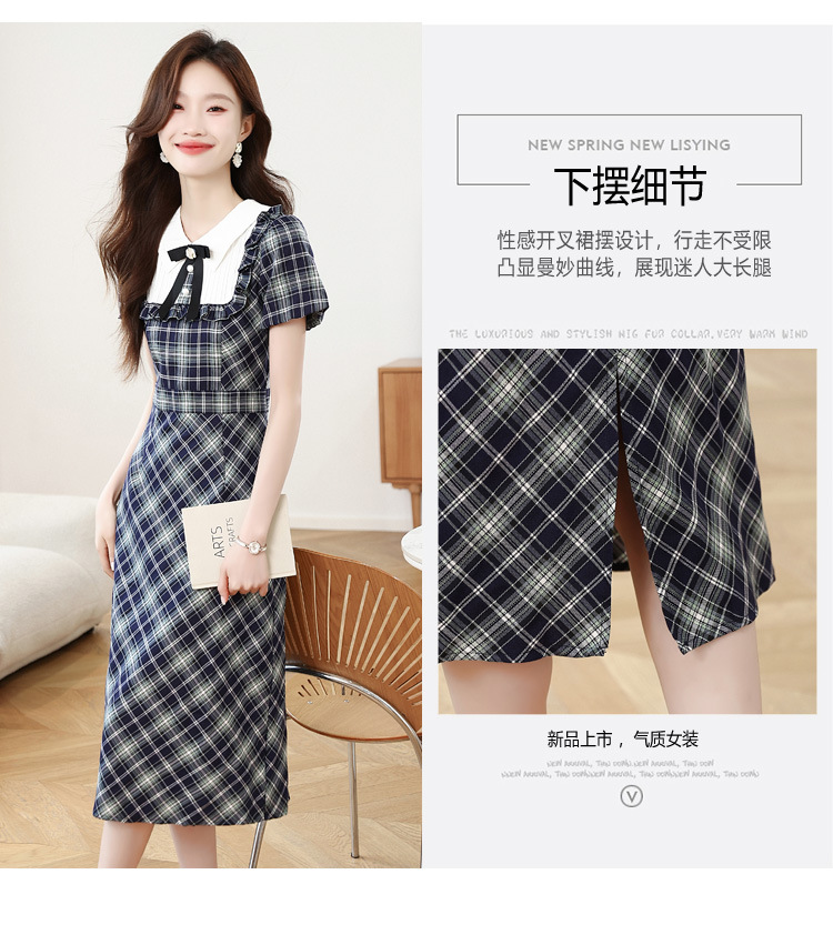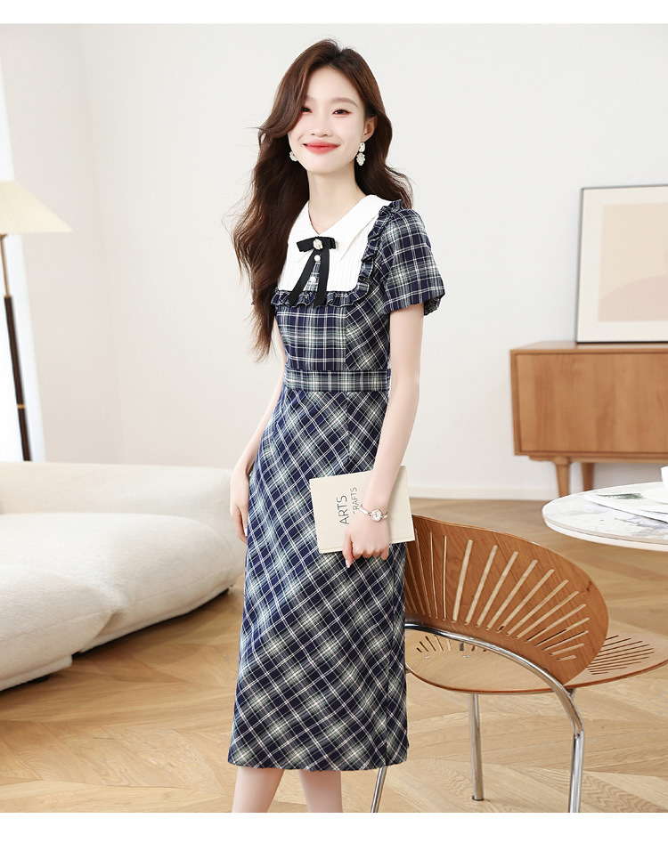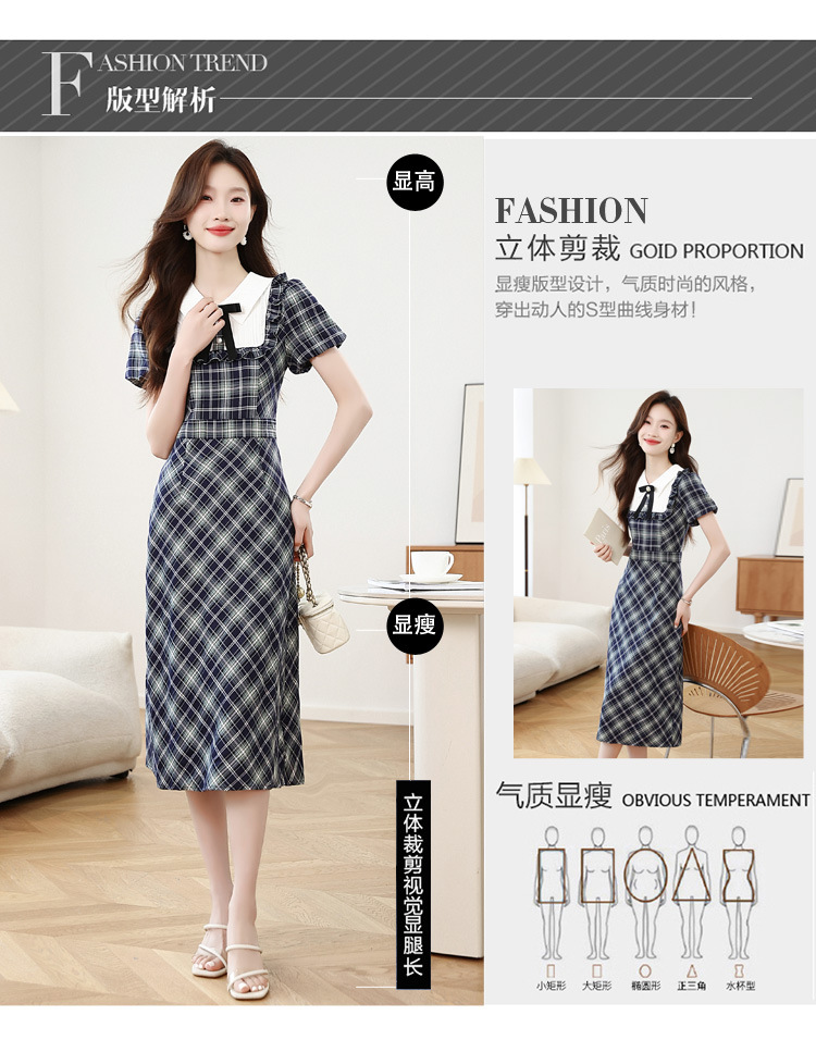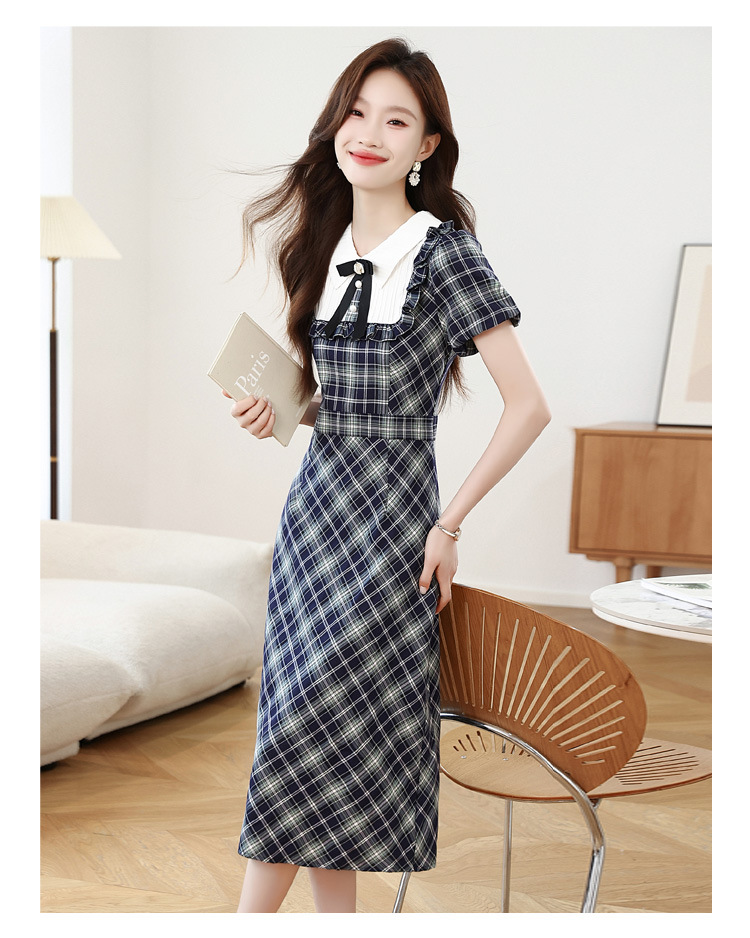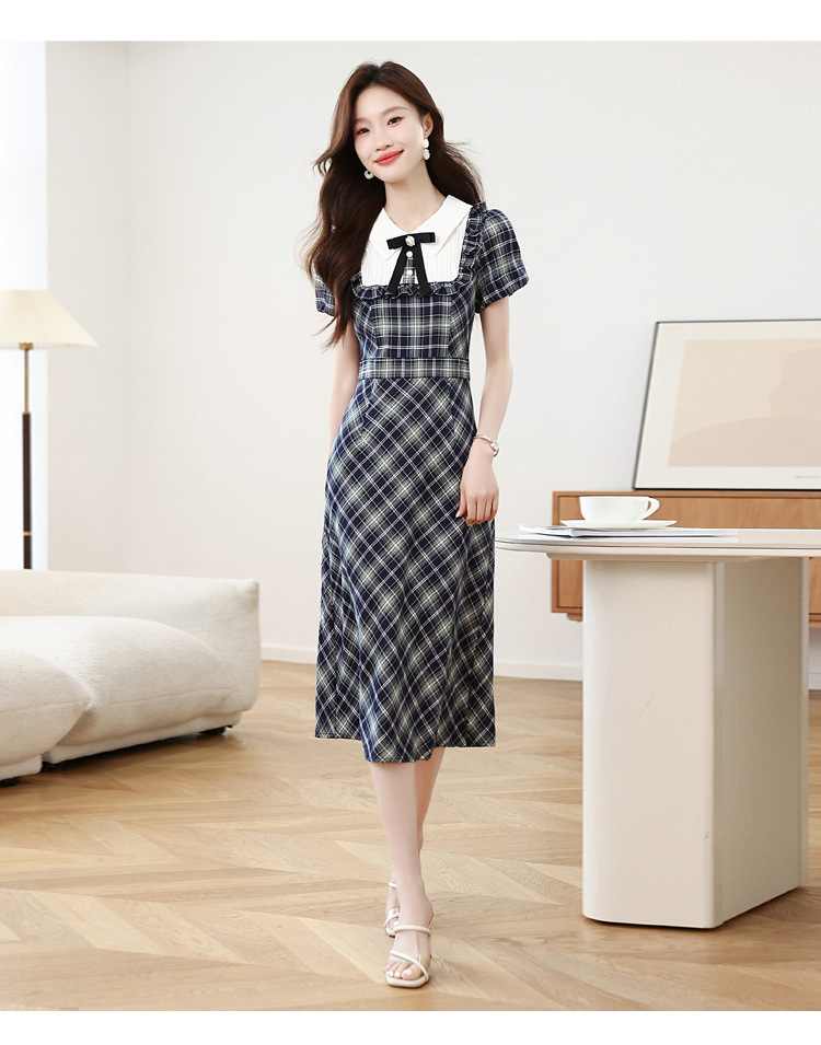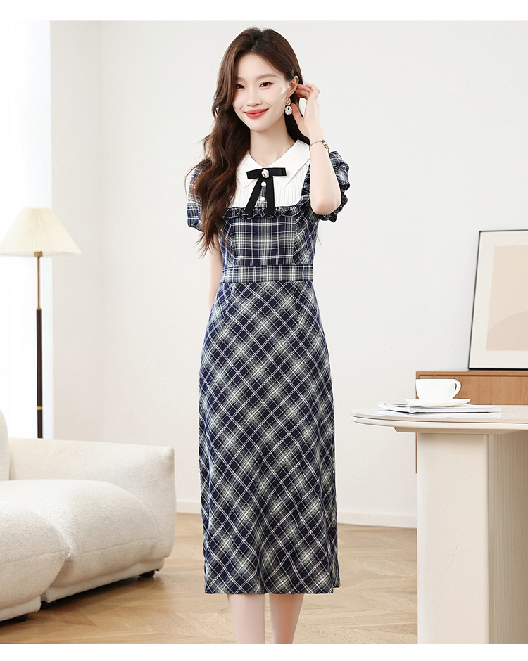 XS9230格子连衣裙女2025夏季新款女装韩系气质优雅设计感小众显瘦长裙