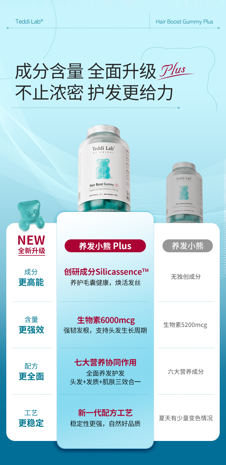 【十二专属】Unichi养发小熊2.0升级版60粒/瓶 含专研成分 养发护发(t效期到28年2月)