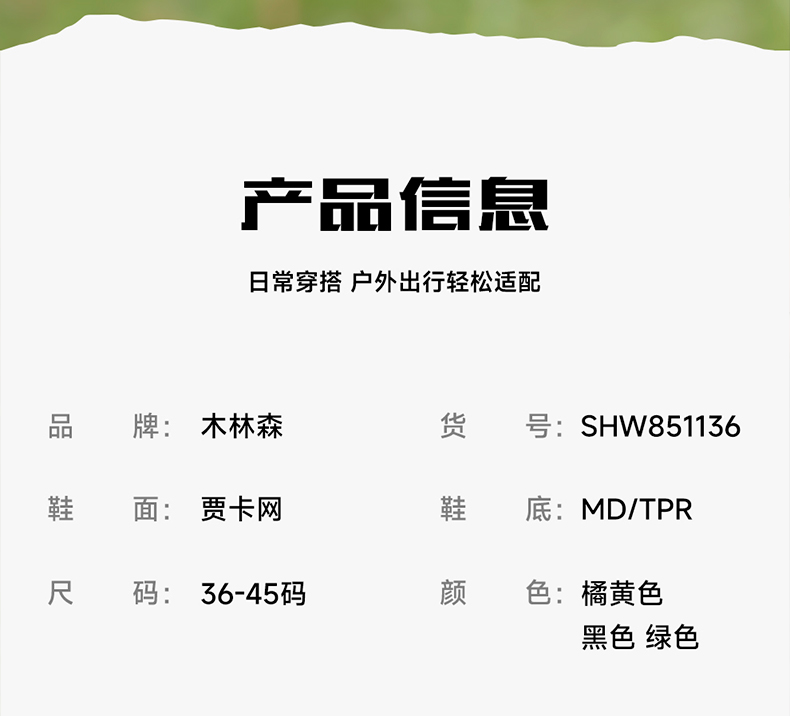 【木林森运动户外潮流运动鞋SHW851136】口碑爆款,贾卡网鞋面,透气包裹双兼顾,防滑耐磨大底,男女同款潮流吸睛设计