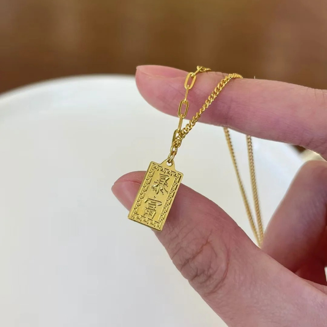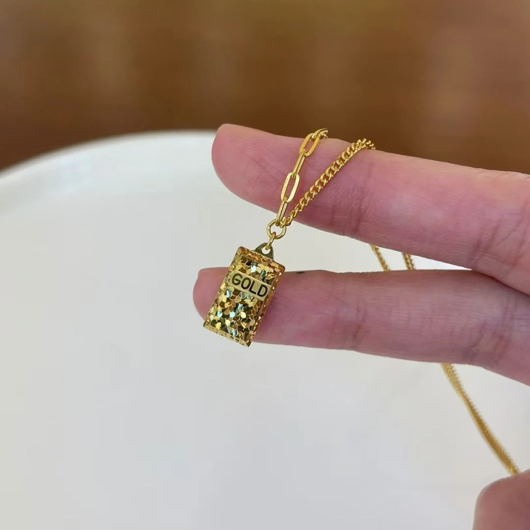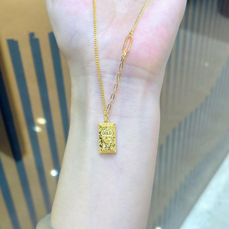 沙金爆闪碎冰暴富小金砖项链女铜镀金时尚小金条吊坠高级感锁骨链
