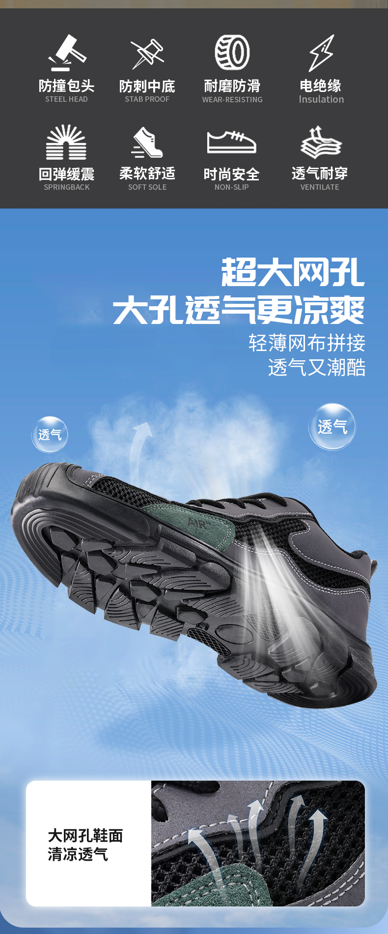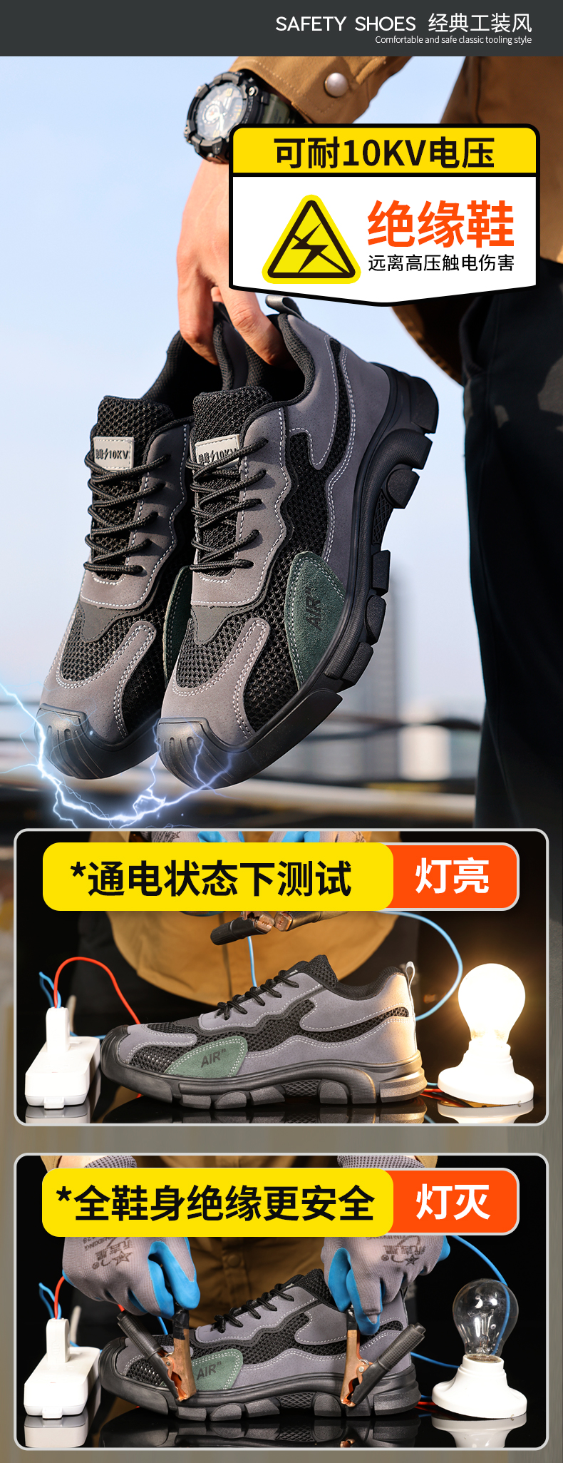 劳保鞋男防砸防刺夏季透气绝缘橡胶底舒适轻便10KV防护鞋
