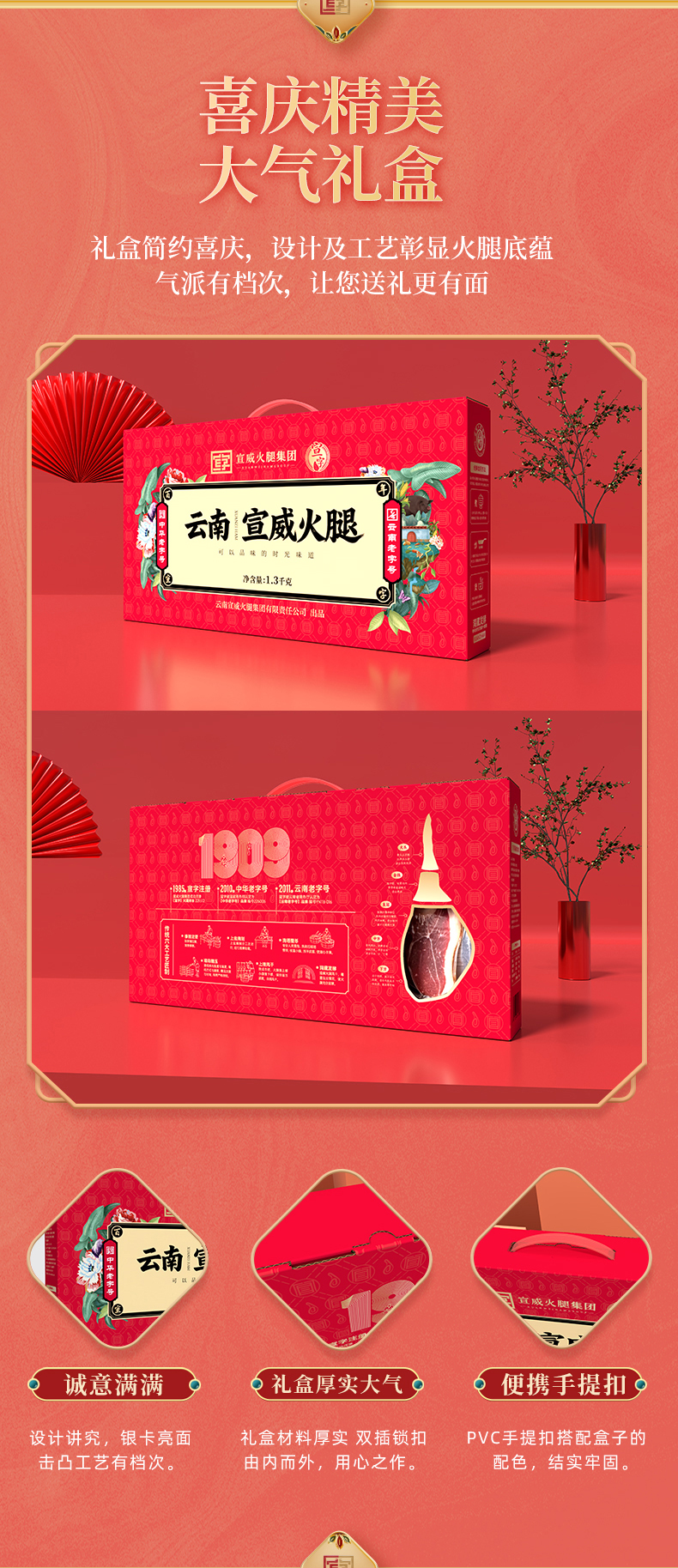 【中华老字号】宣威火腿整腿切割云南特产年货礼盒装送礼品送长辈