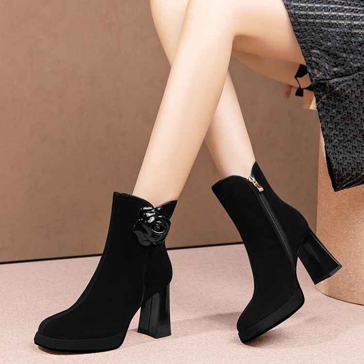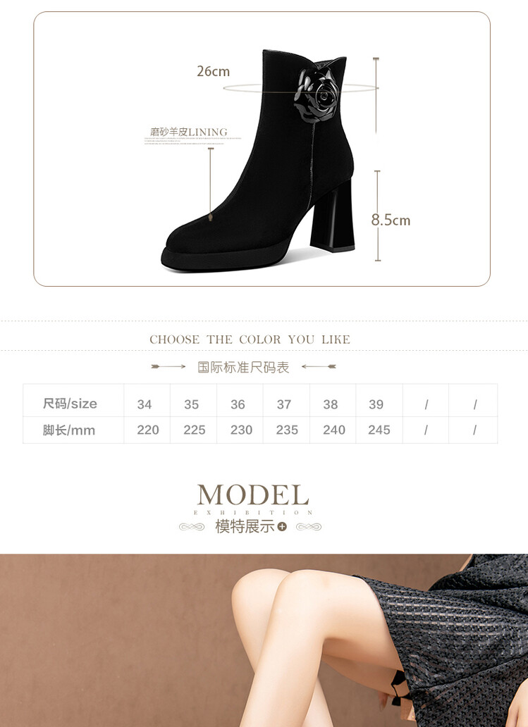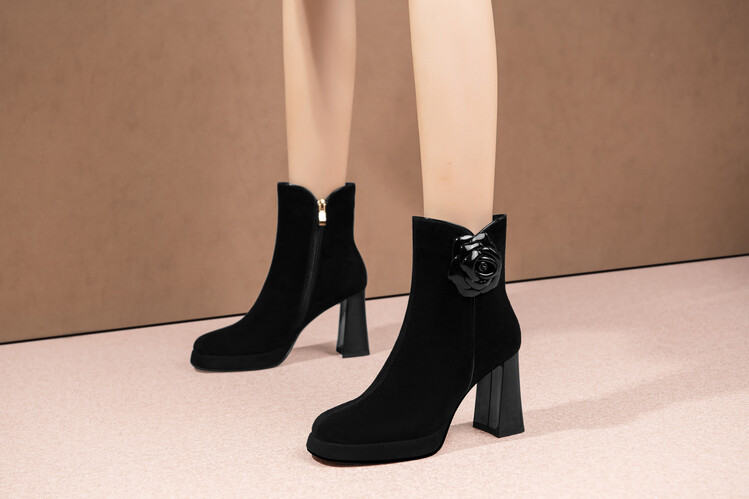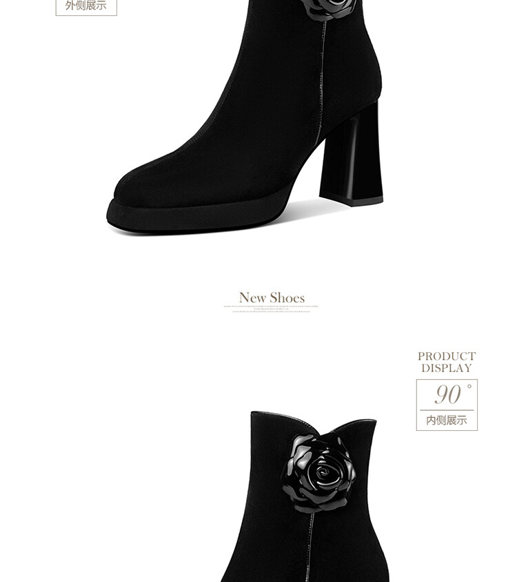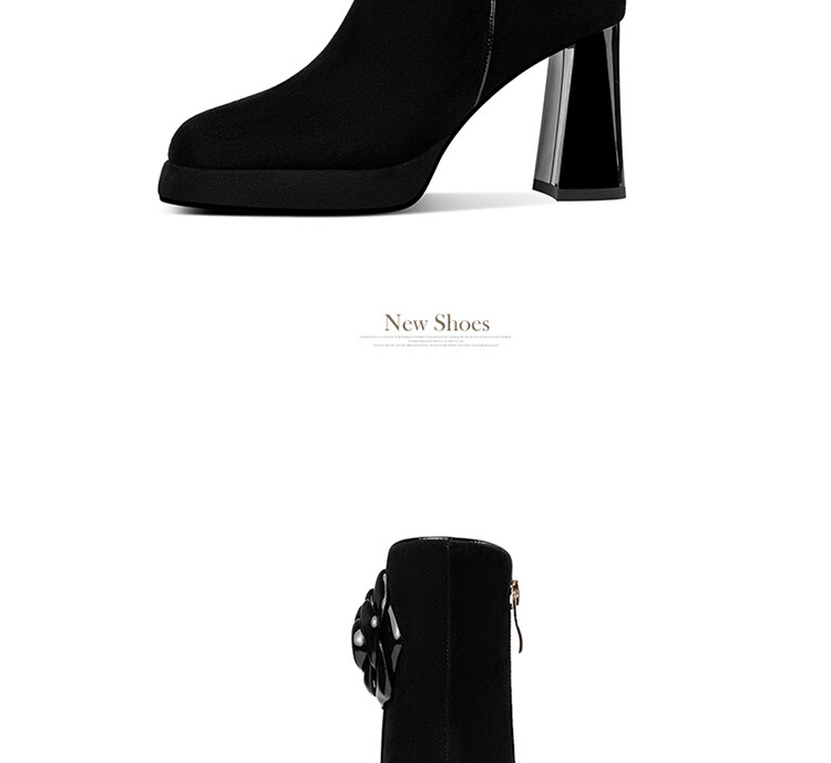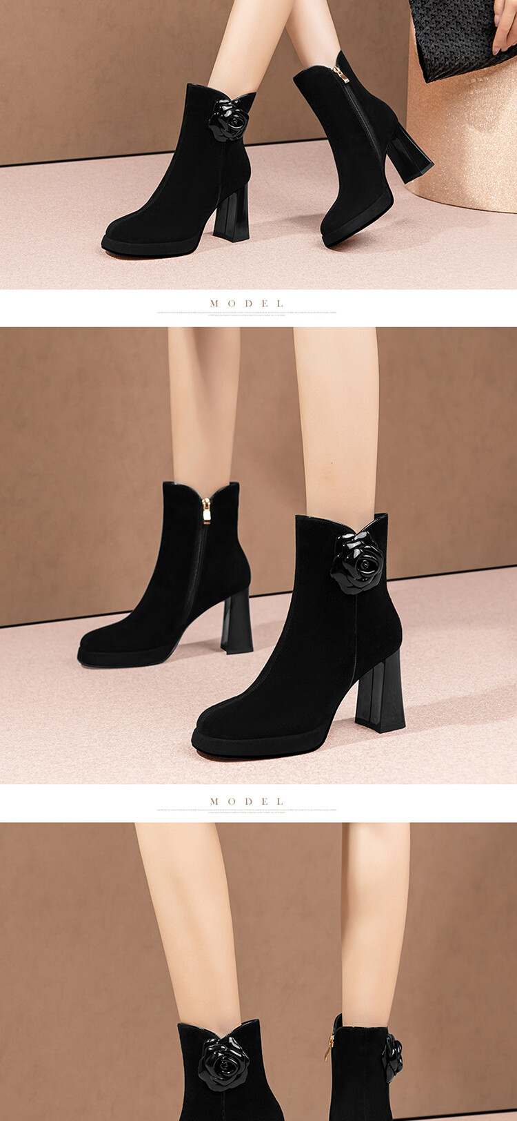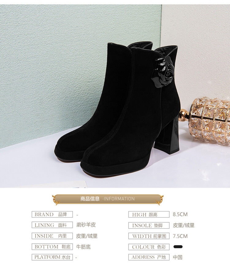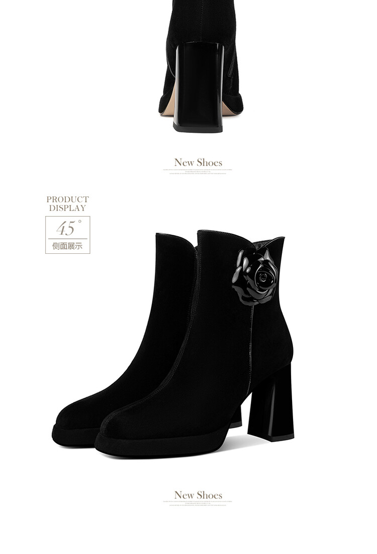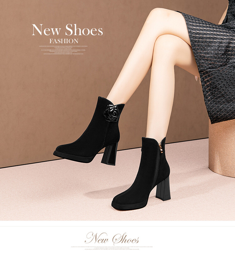 英伦风翻皮粗跟短靴,方头马丁靴后拉链单靴机车靴HY-H3236