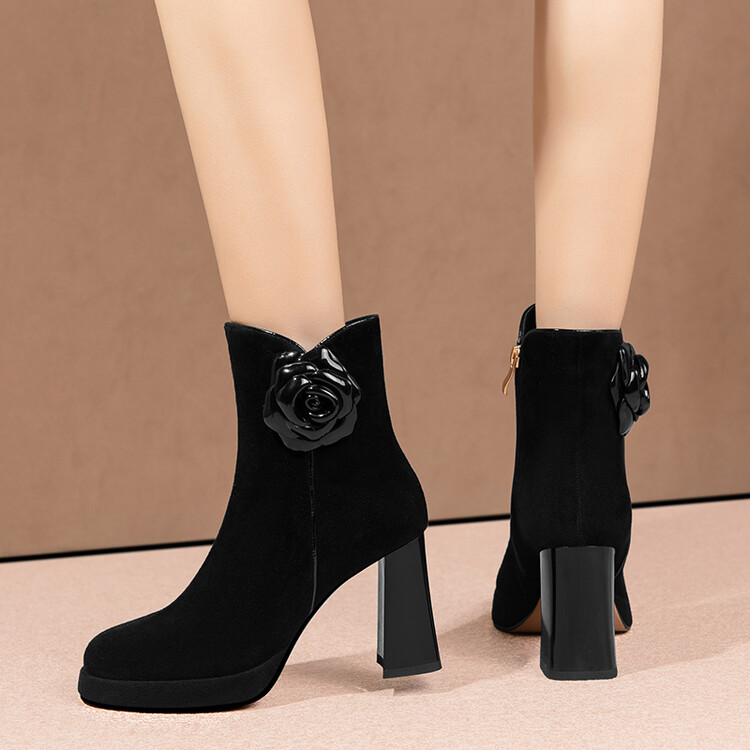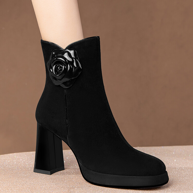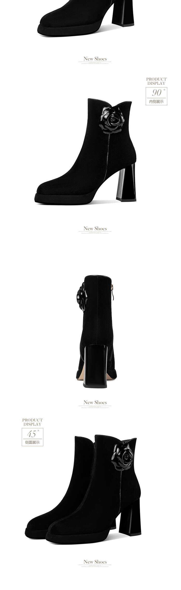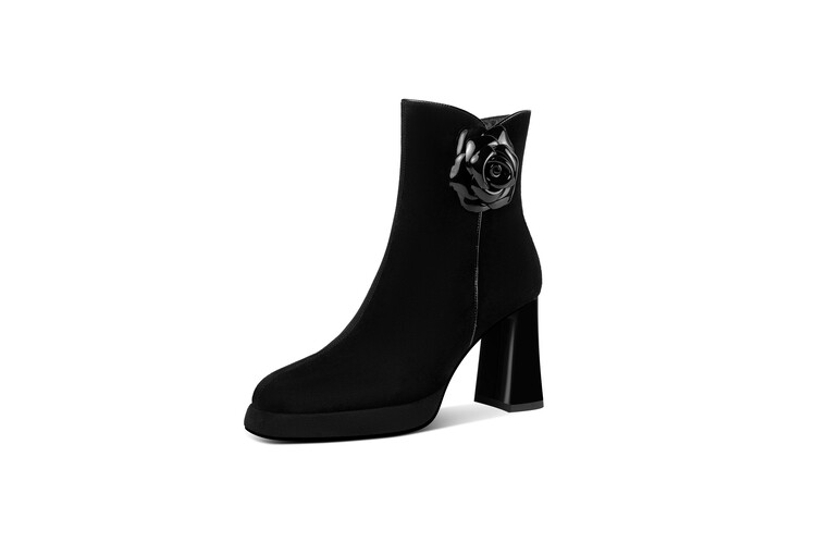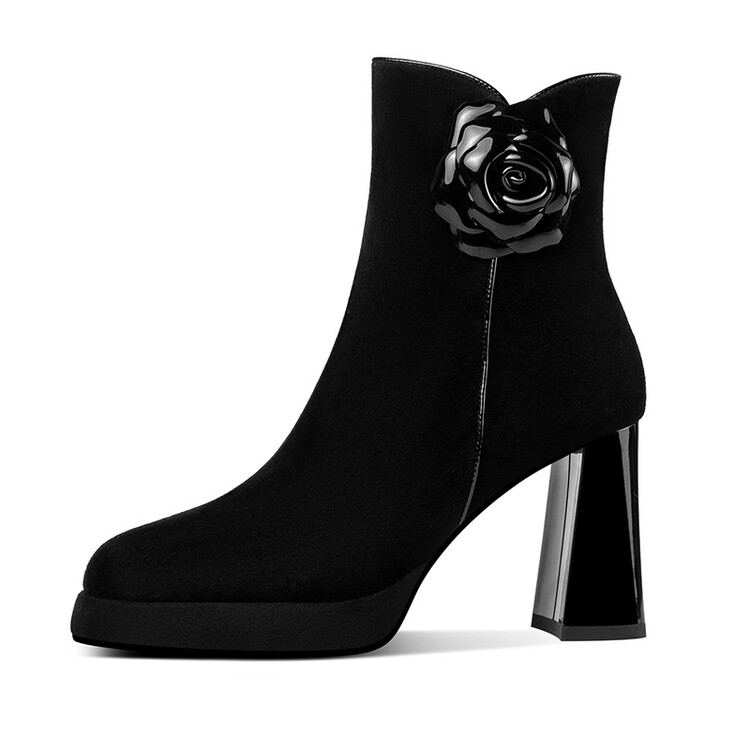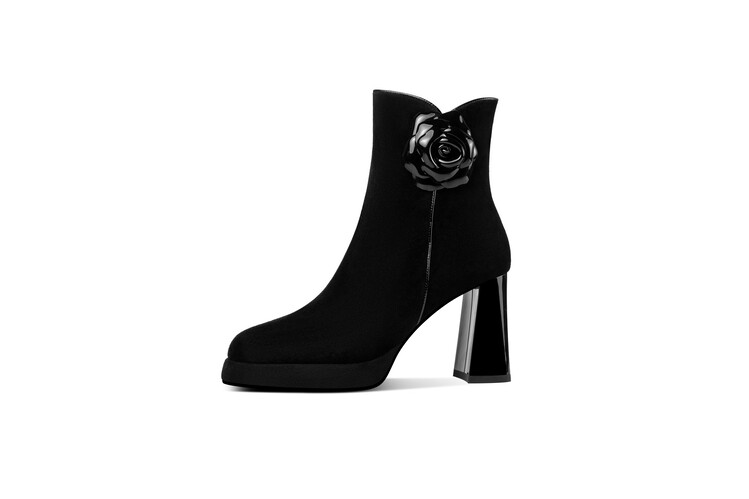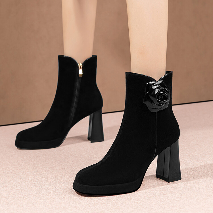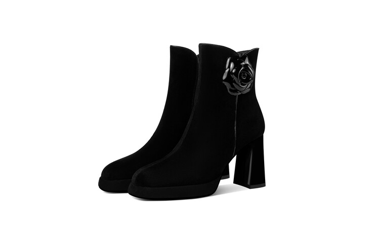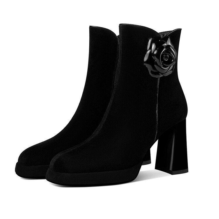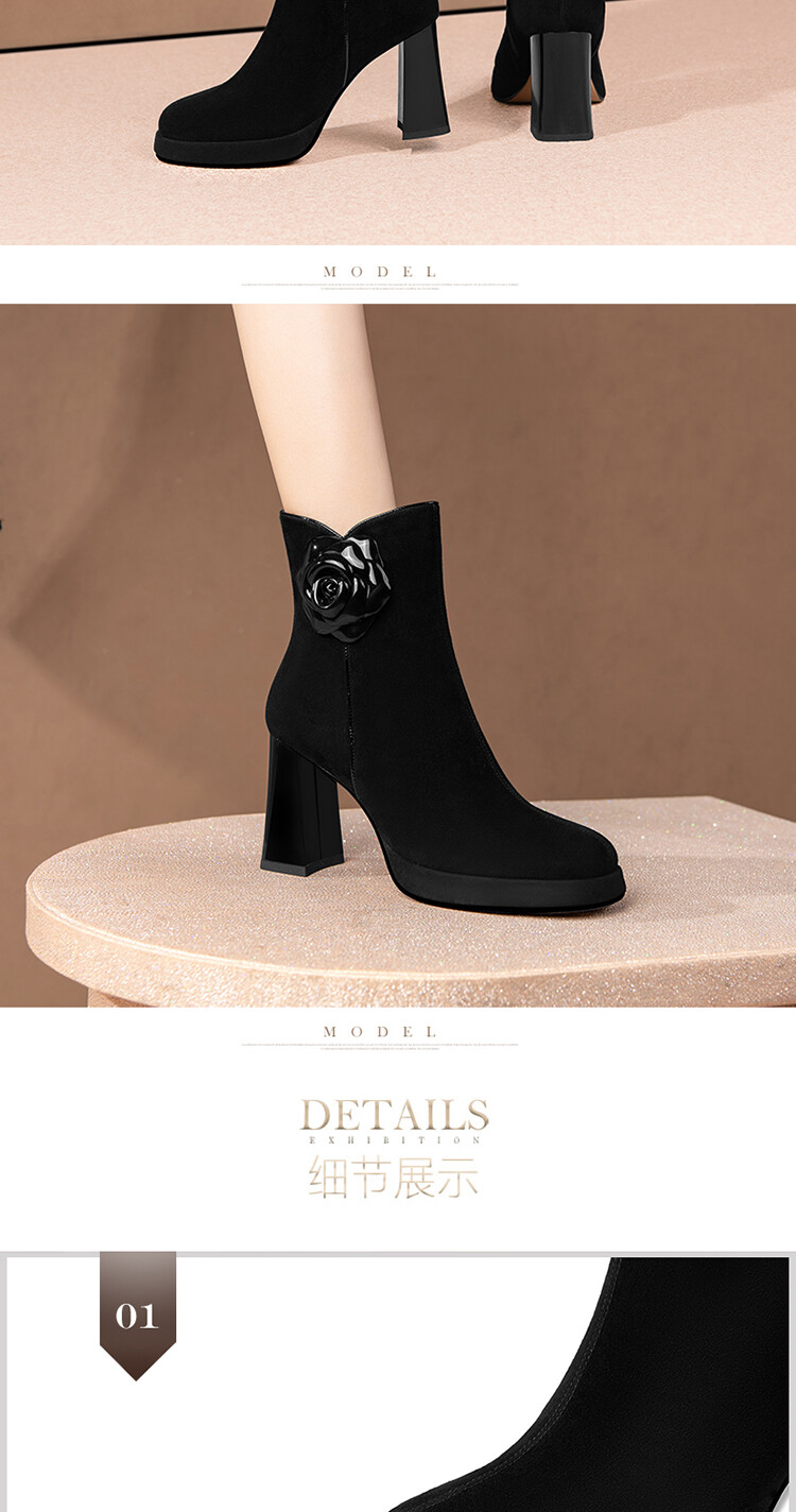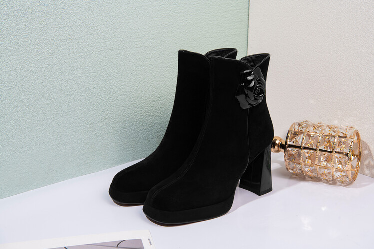 英伦风翻皮粗跟短靴,方头马丁靴后拉链单靴机车靴HY-H3236