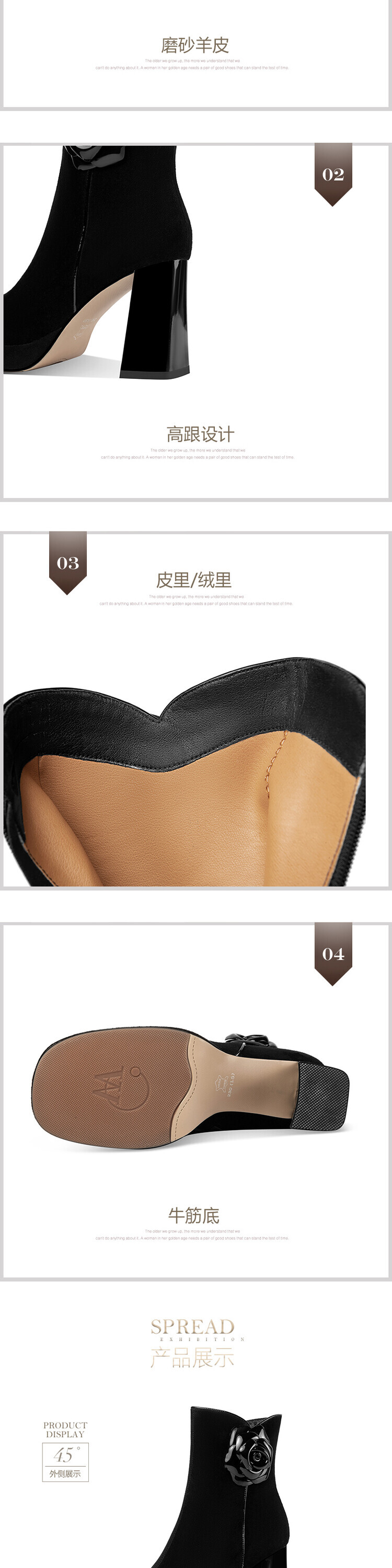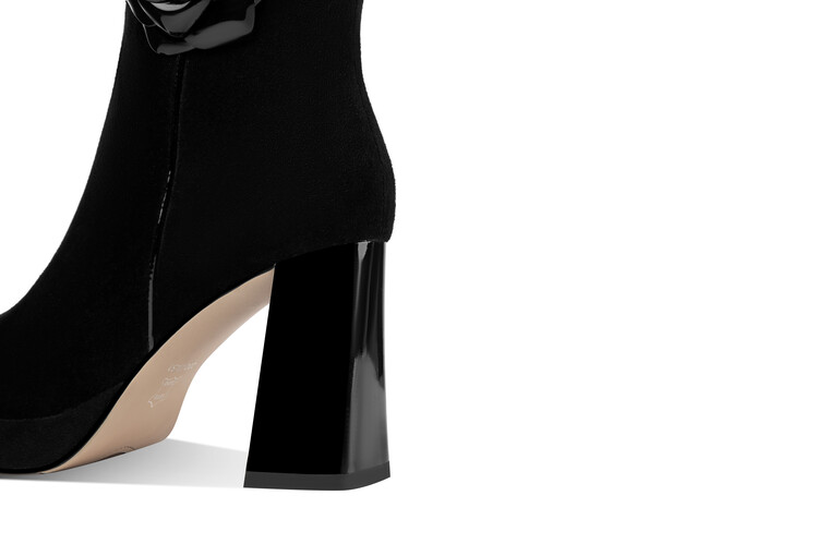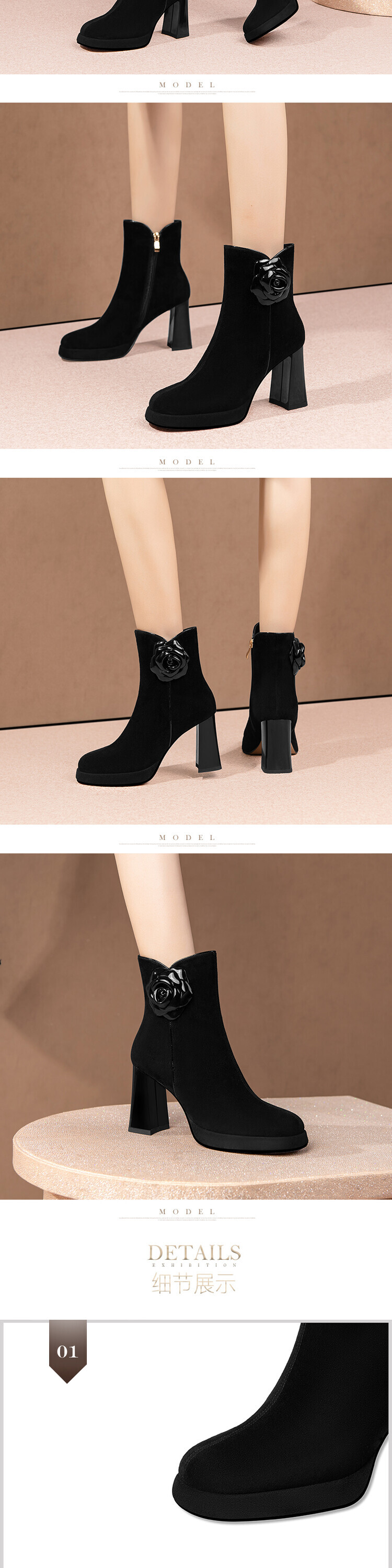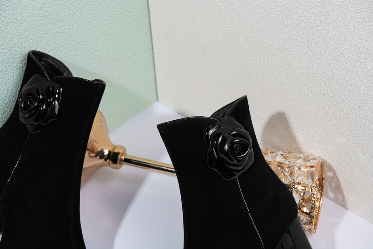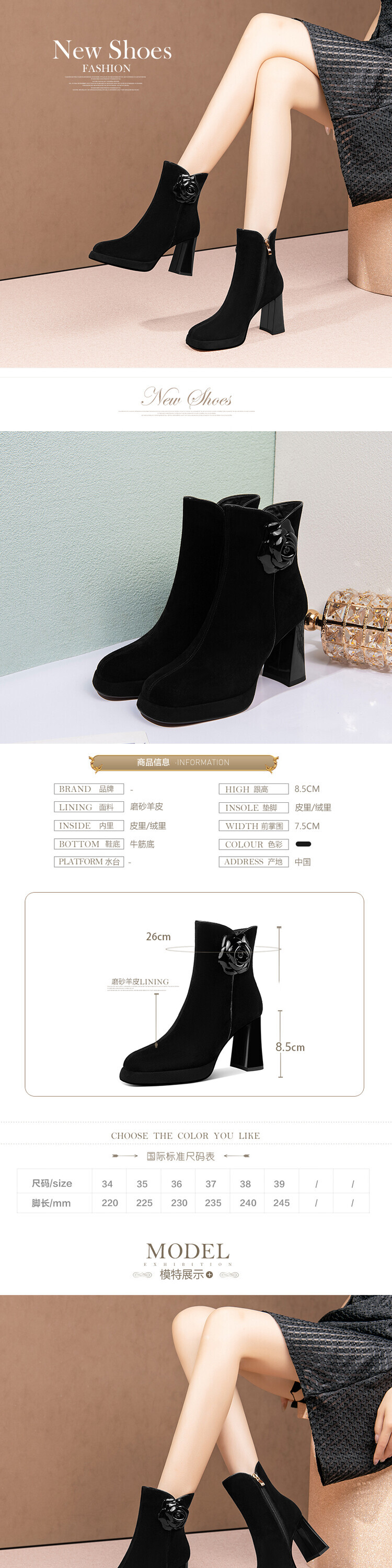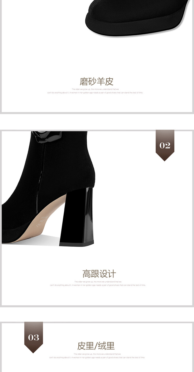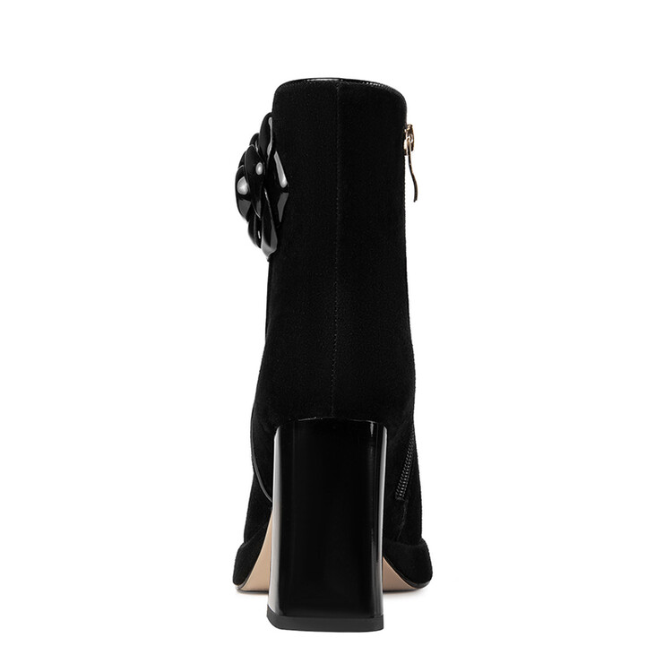 英伦风翻皮粗跟短靴,方头马丁靴后拉链单靴机车靴HY-H3236