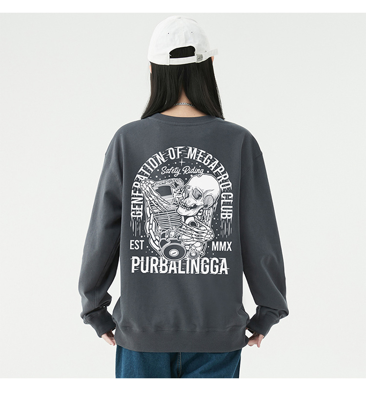 自由基地2023秋冬越野机车新款圆领套头卫衣毛圈款打底衫潮人卫衣 NMT-2070