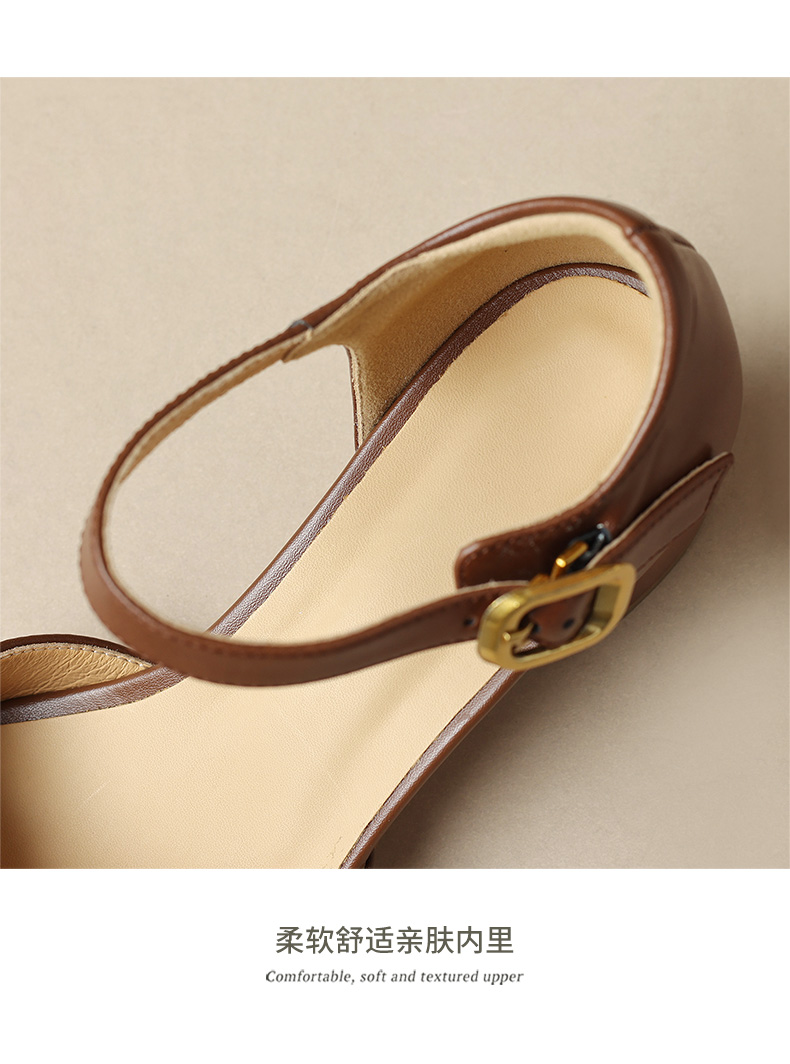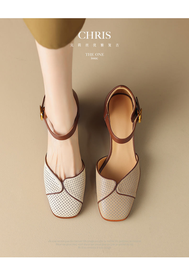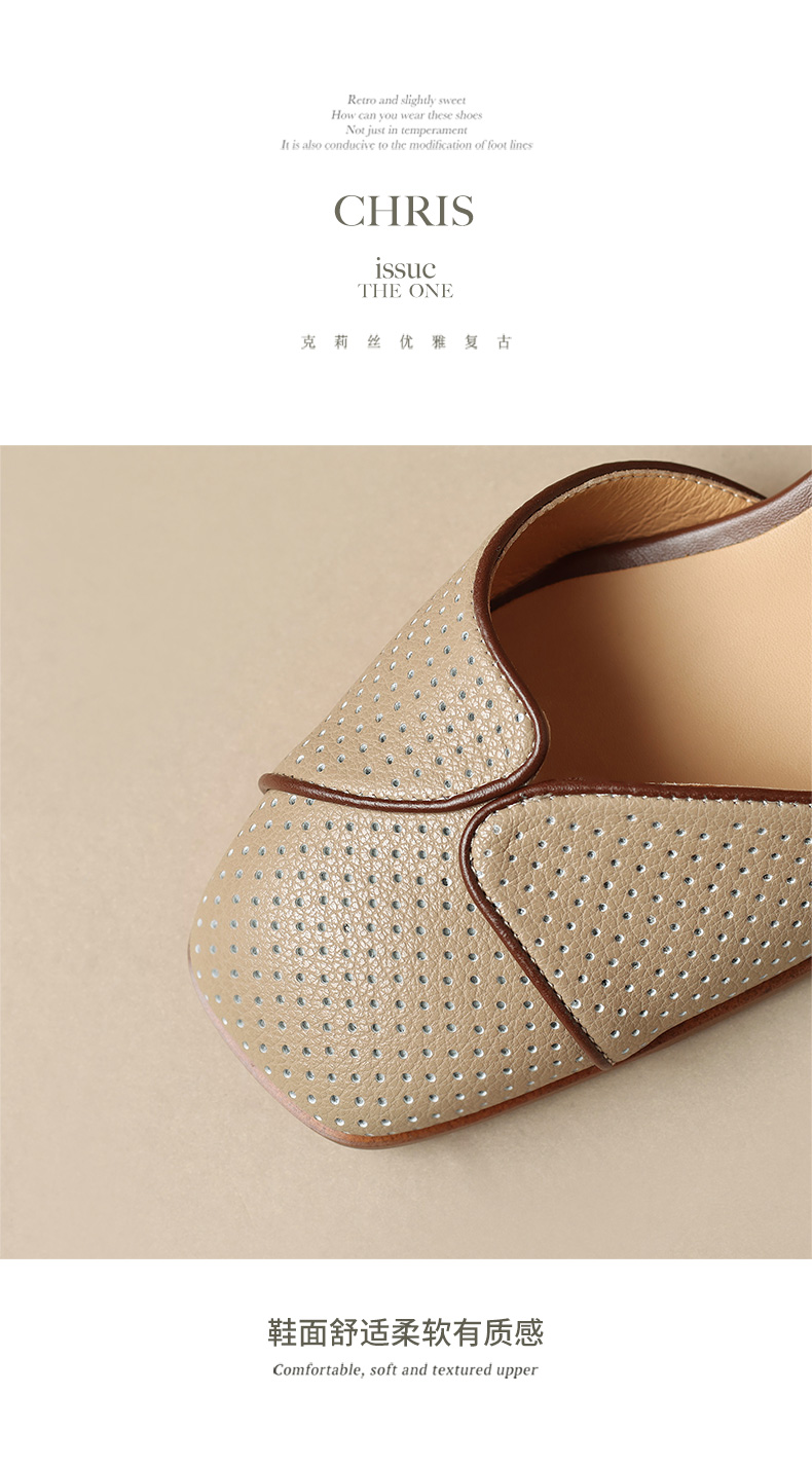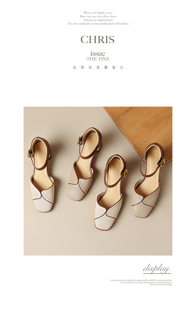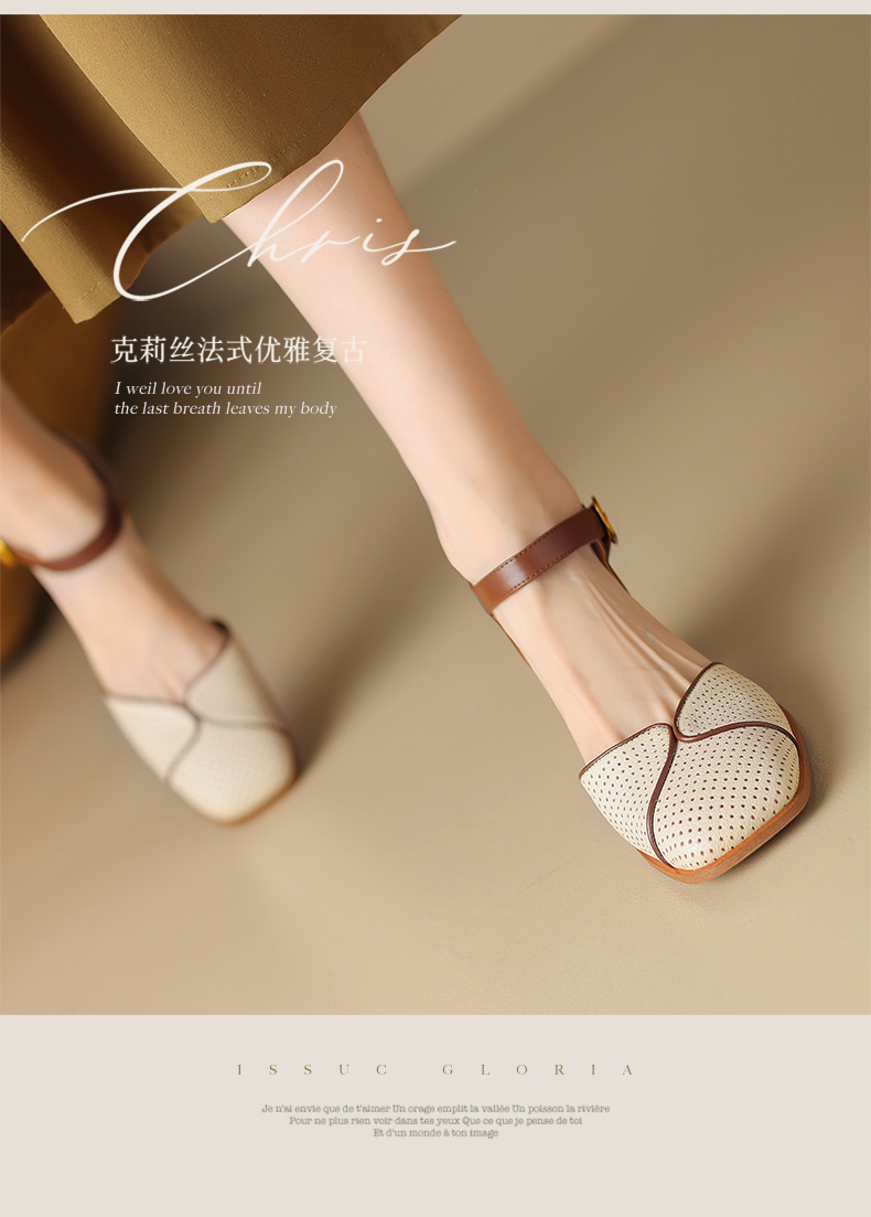 夏季新款,复古头层粒面透气孔牛皮里外全头层真皮包头中空凉鞋NJMK-K620