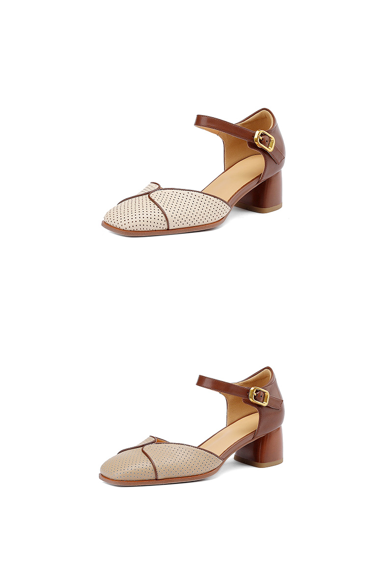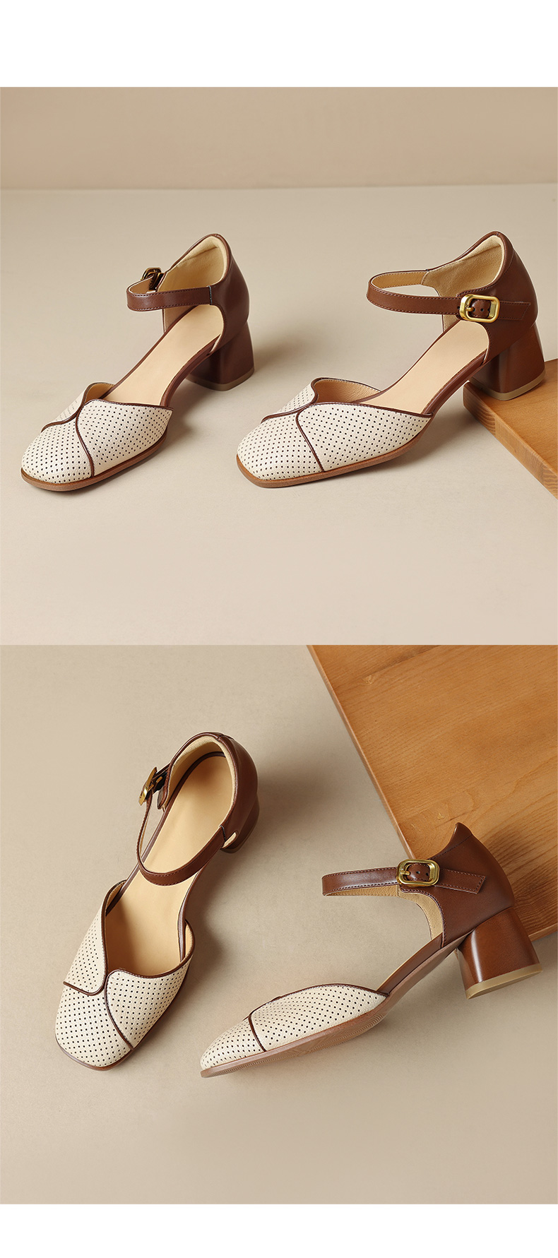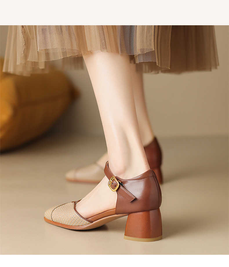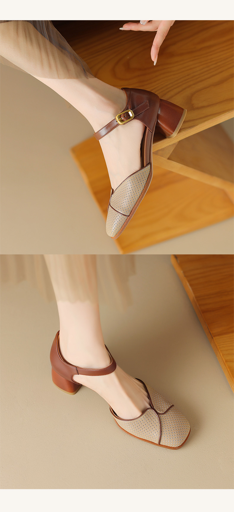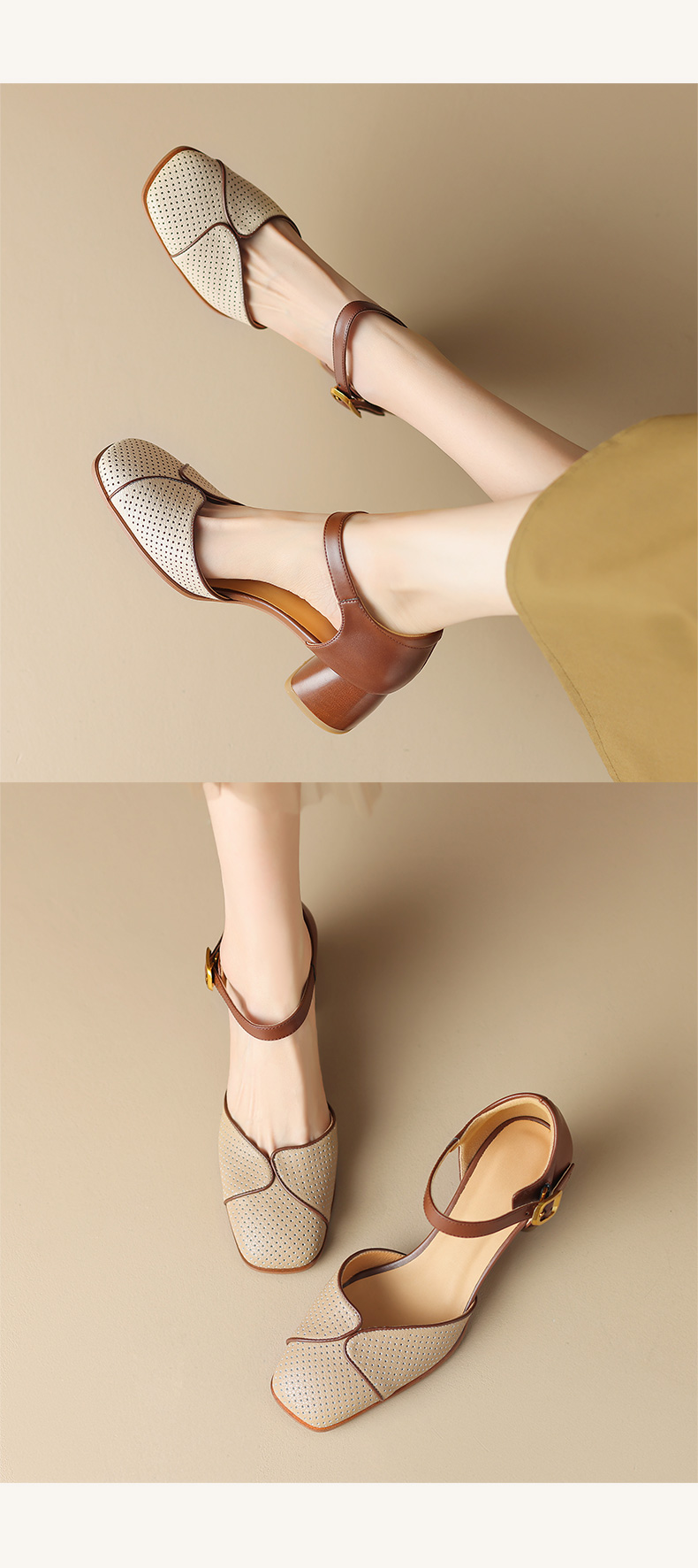 夏季新款,复古头层粒面透气孔牛皮里外全头层真皮包头中空凉鞋NJMK-K620