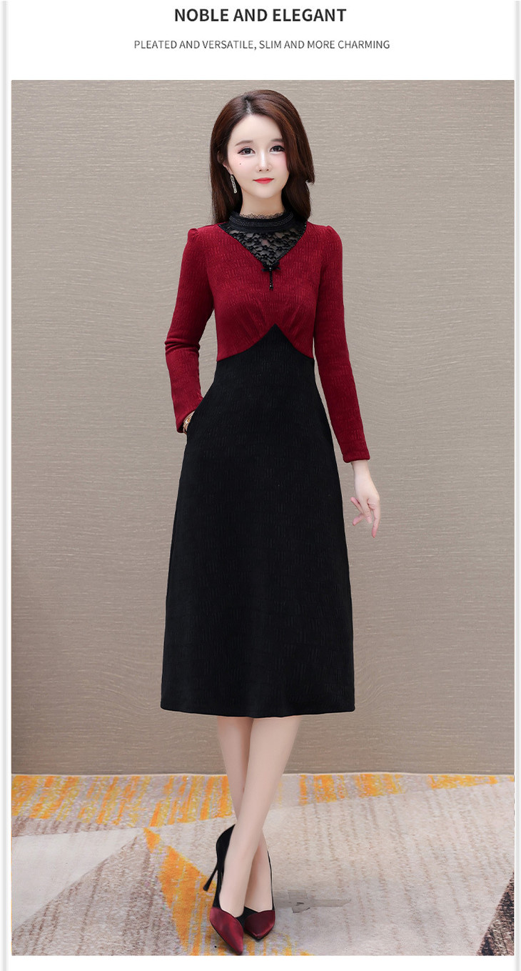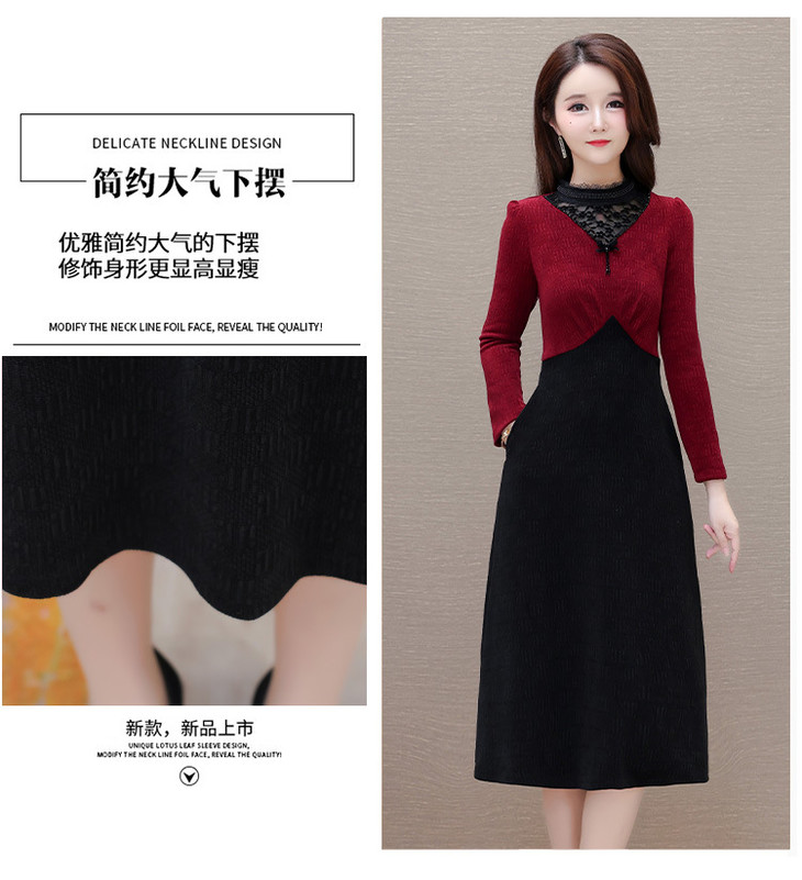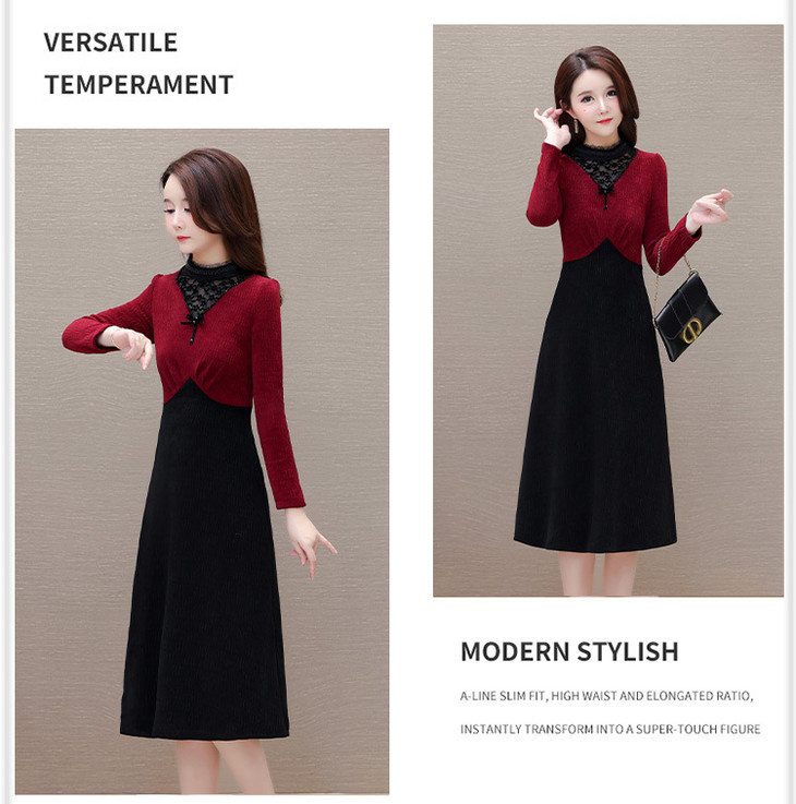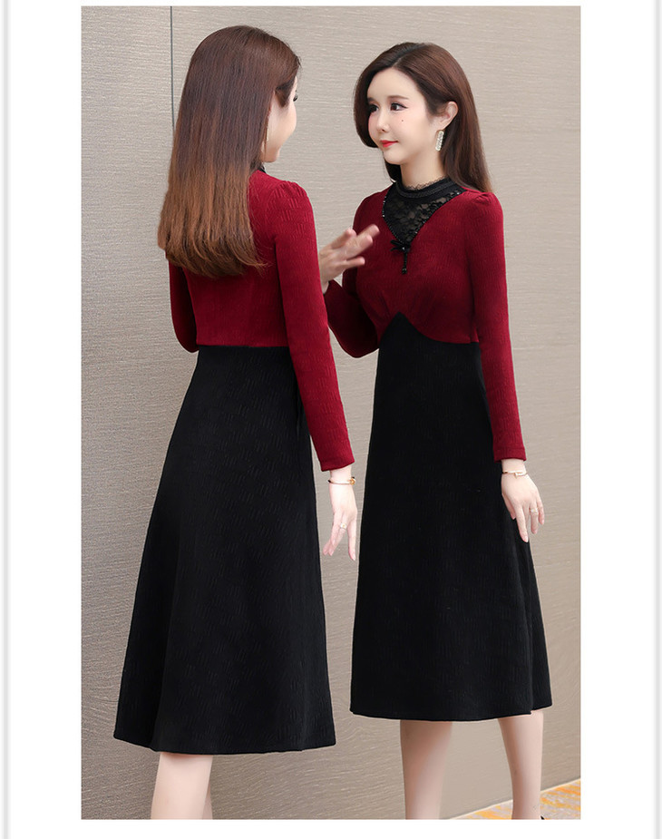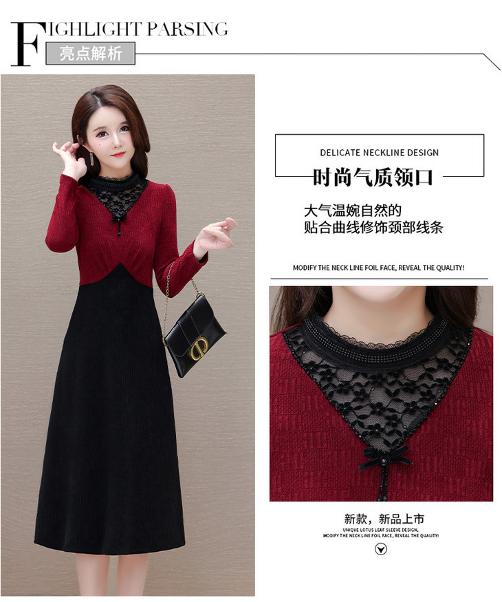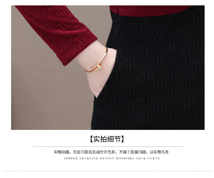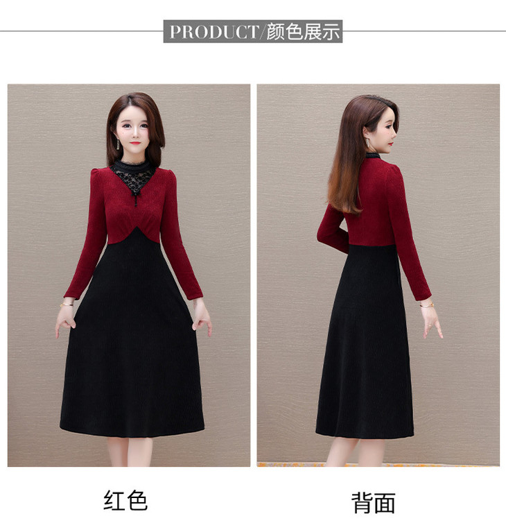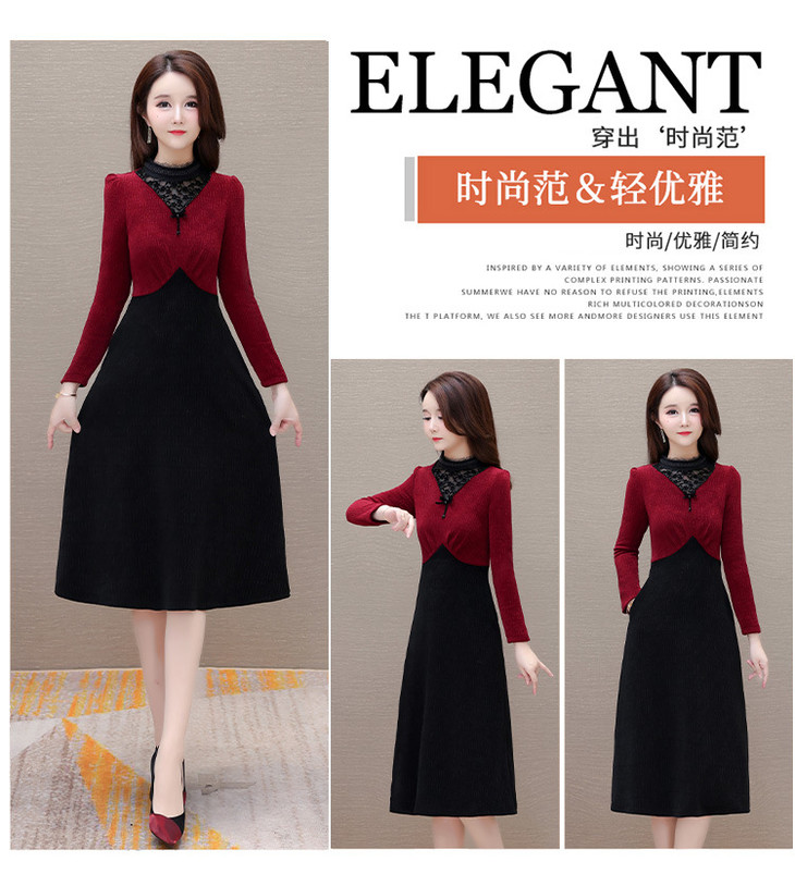 假两件中长款拼结连衣裙,春款时尚洋气高腰A字裙QYM-LRX-WL906 -Y