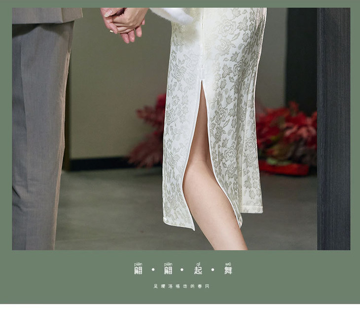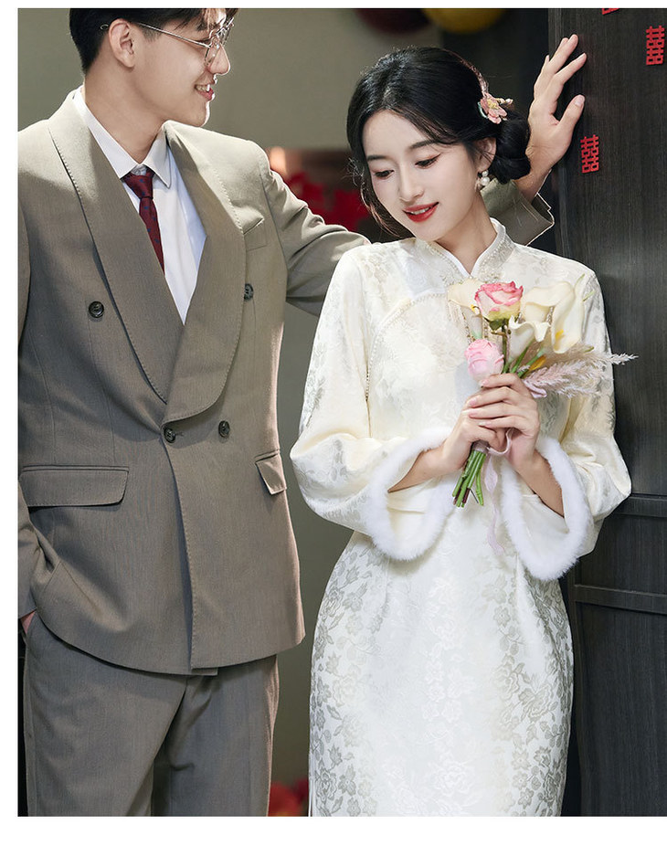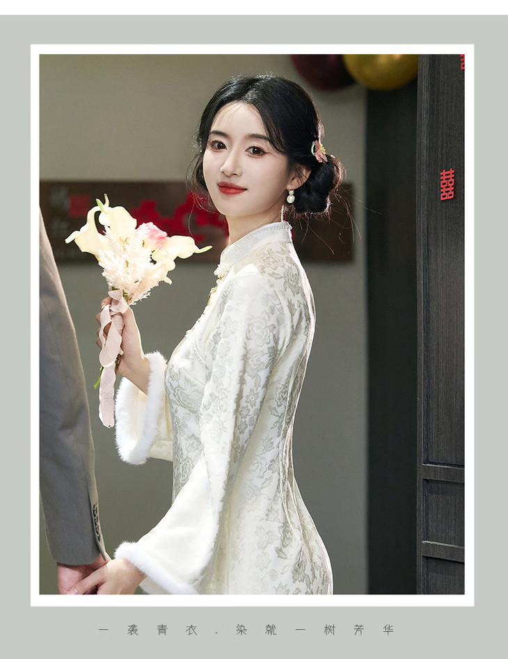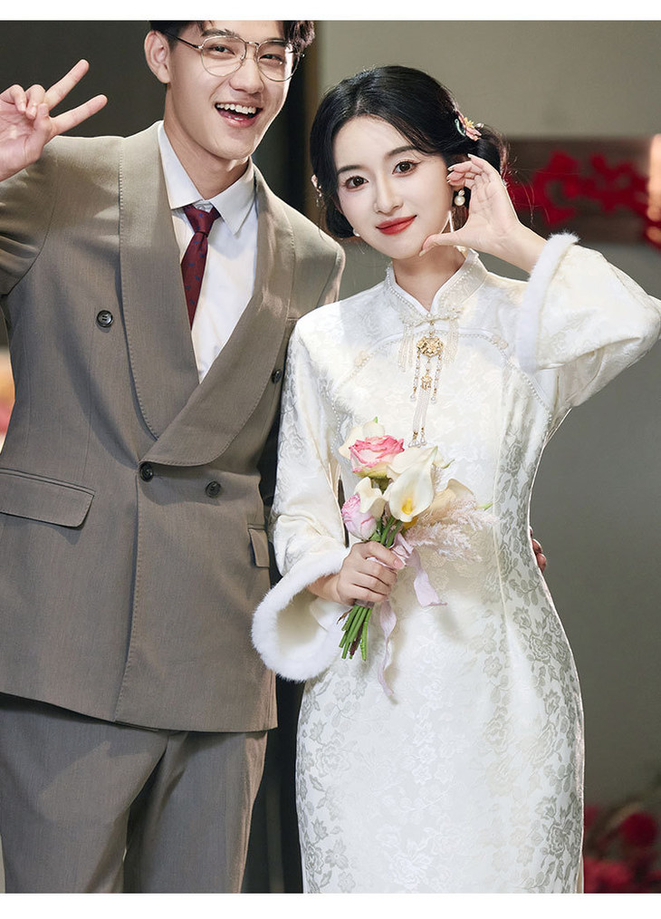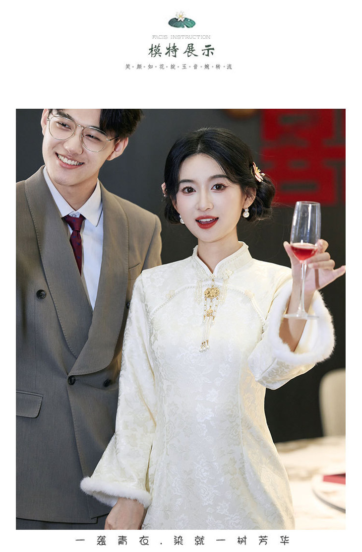 高级感加绒复古年轻款白色订婚旗袍连衣裙LSB4177 商品图3