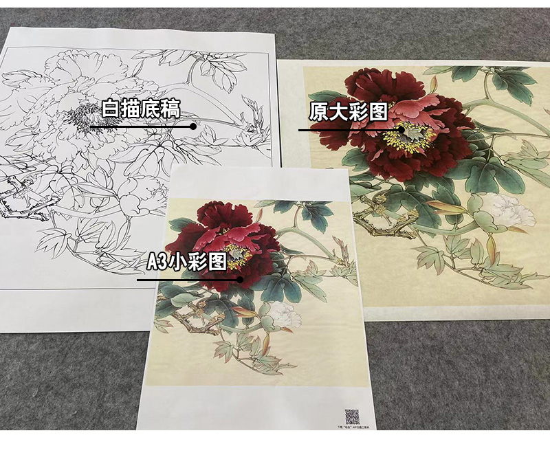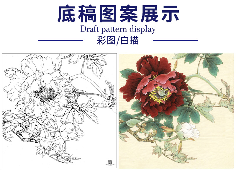 【大彩图】李晓明工笔画白描底稿斗方小品《暖香醉艳》牡丹临摹勾线花鸟线稿K044