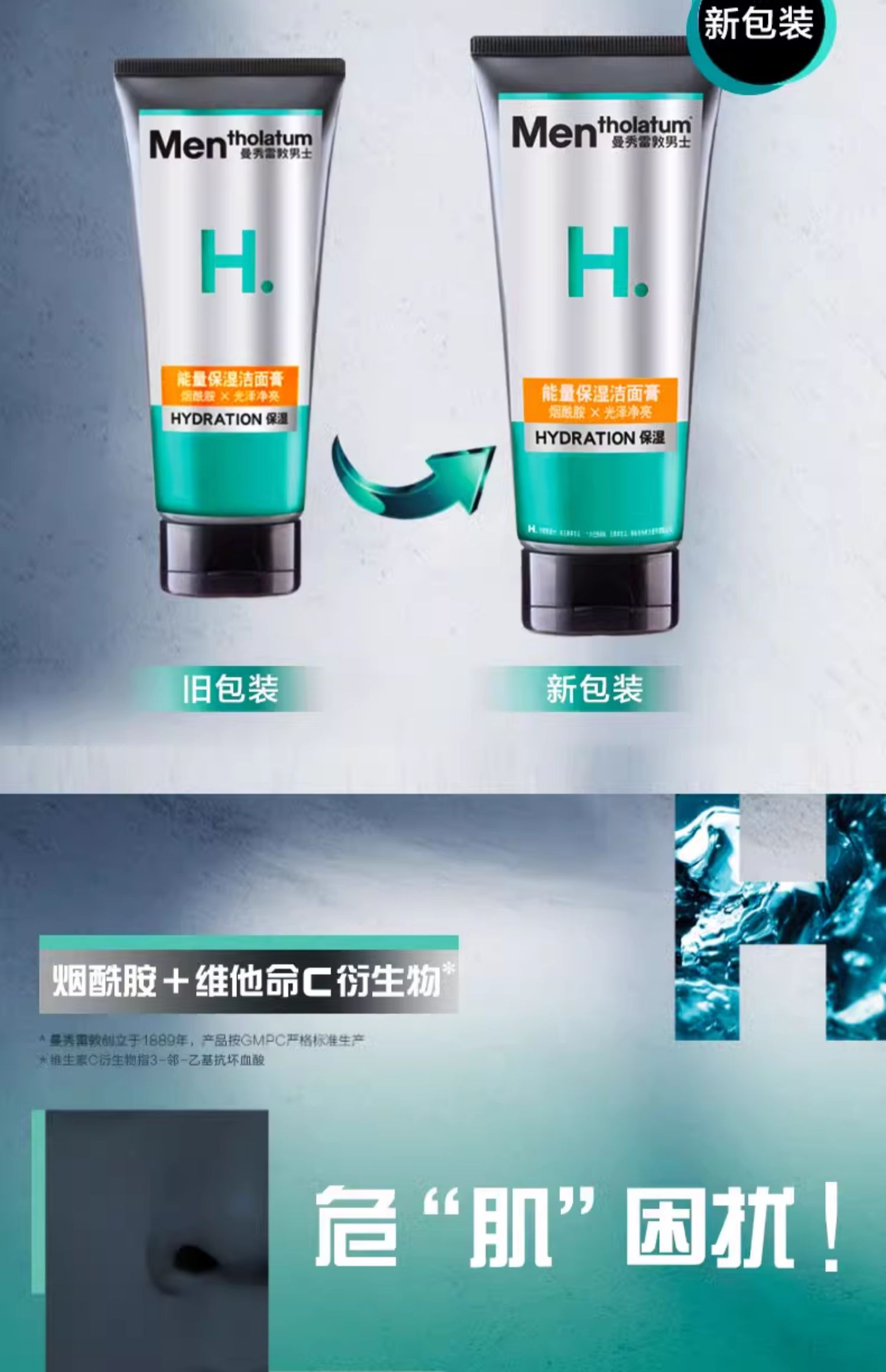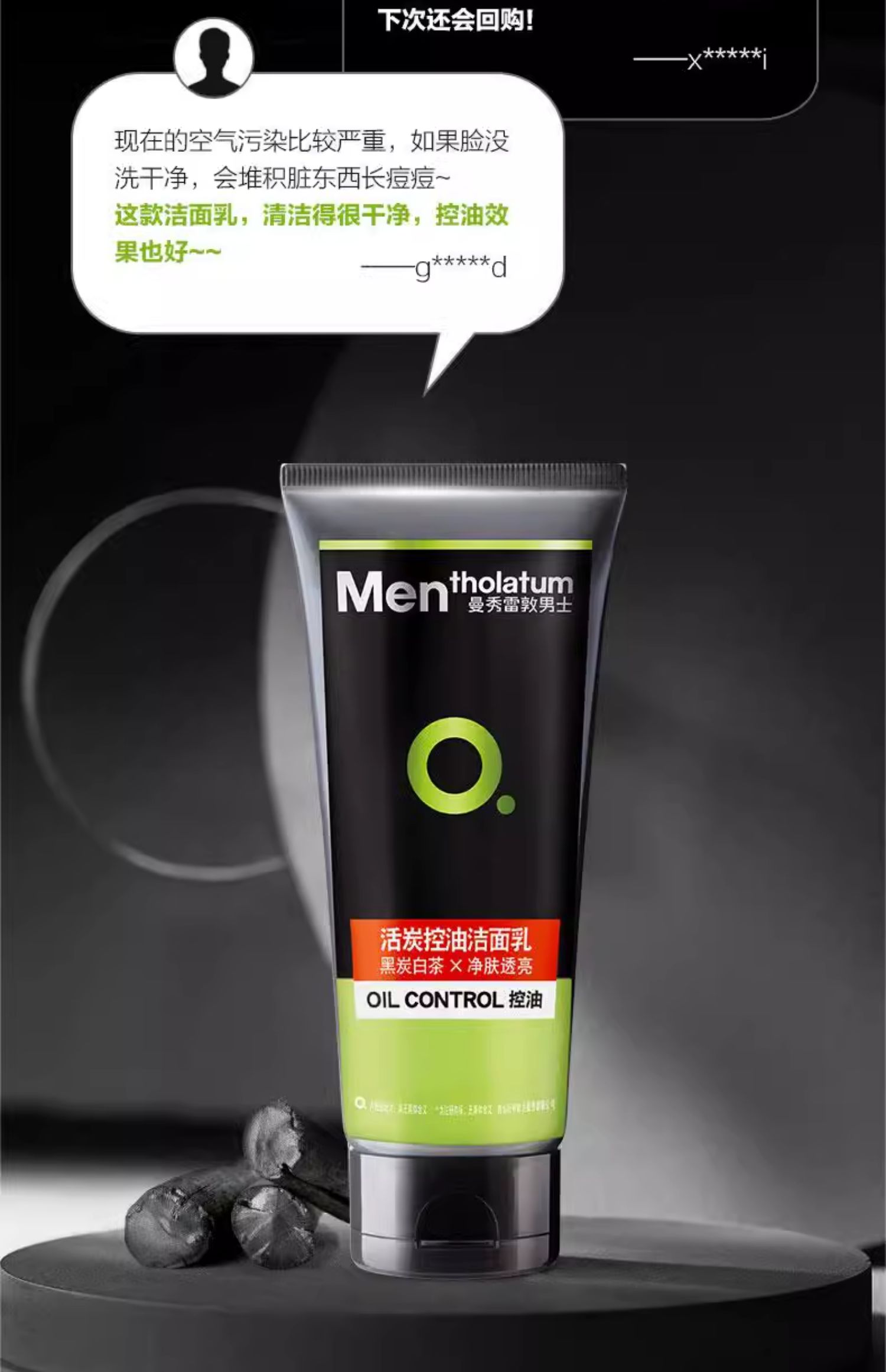 【门店直发】曼秀雷敦男士专用洗面奶活炭净黑头微米清爽控油保湿洁面乳抗痘100g