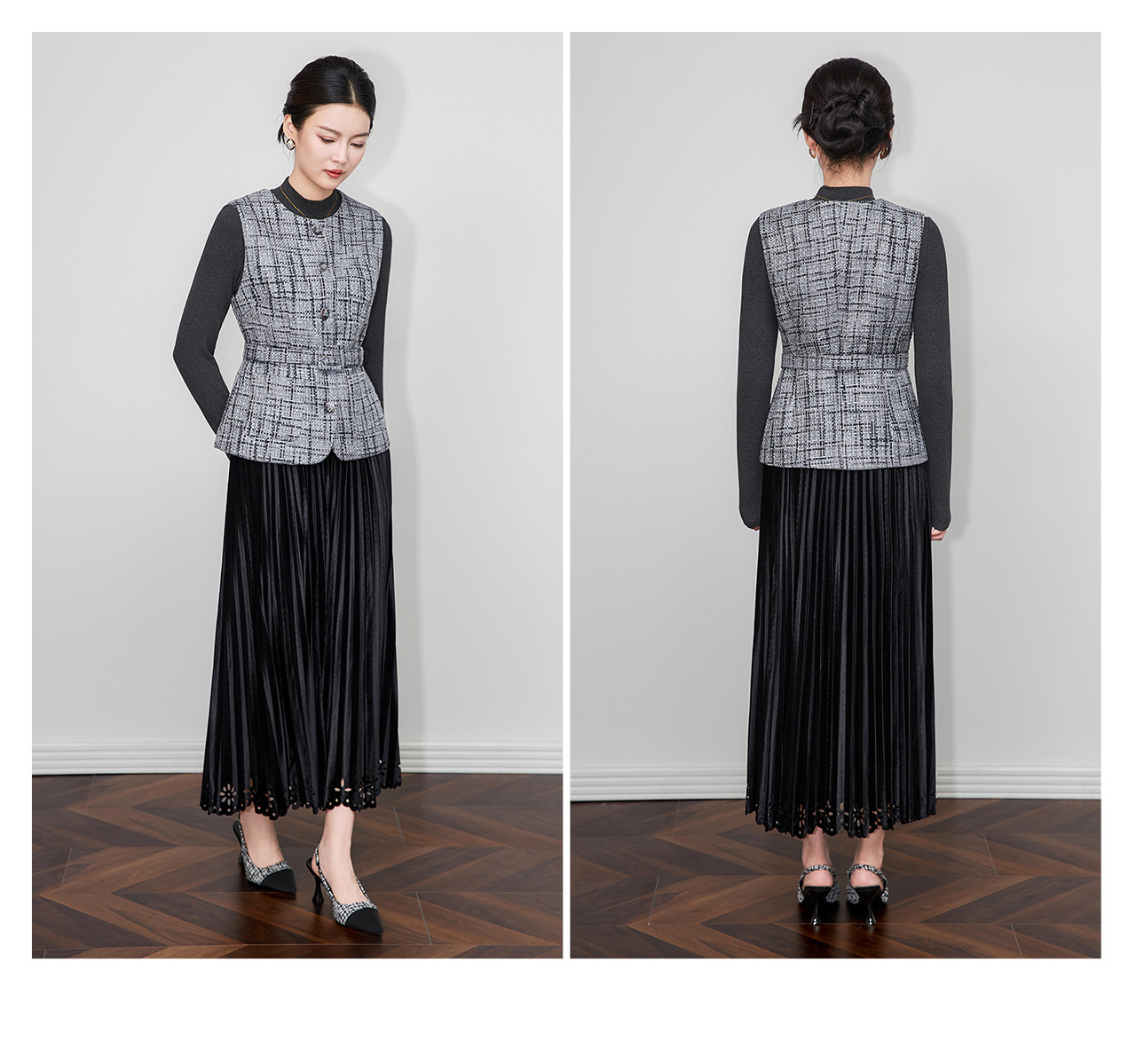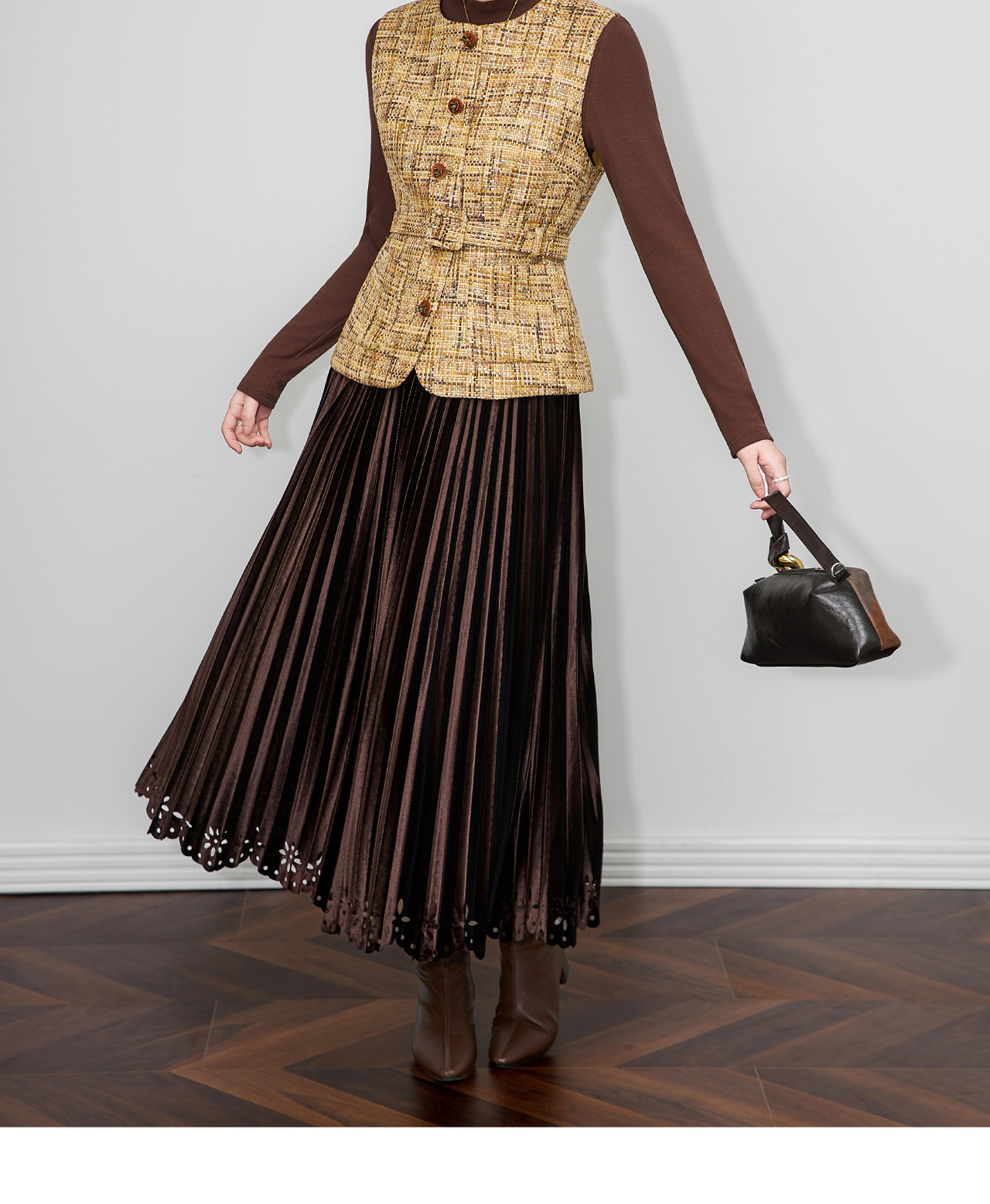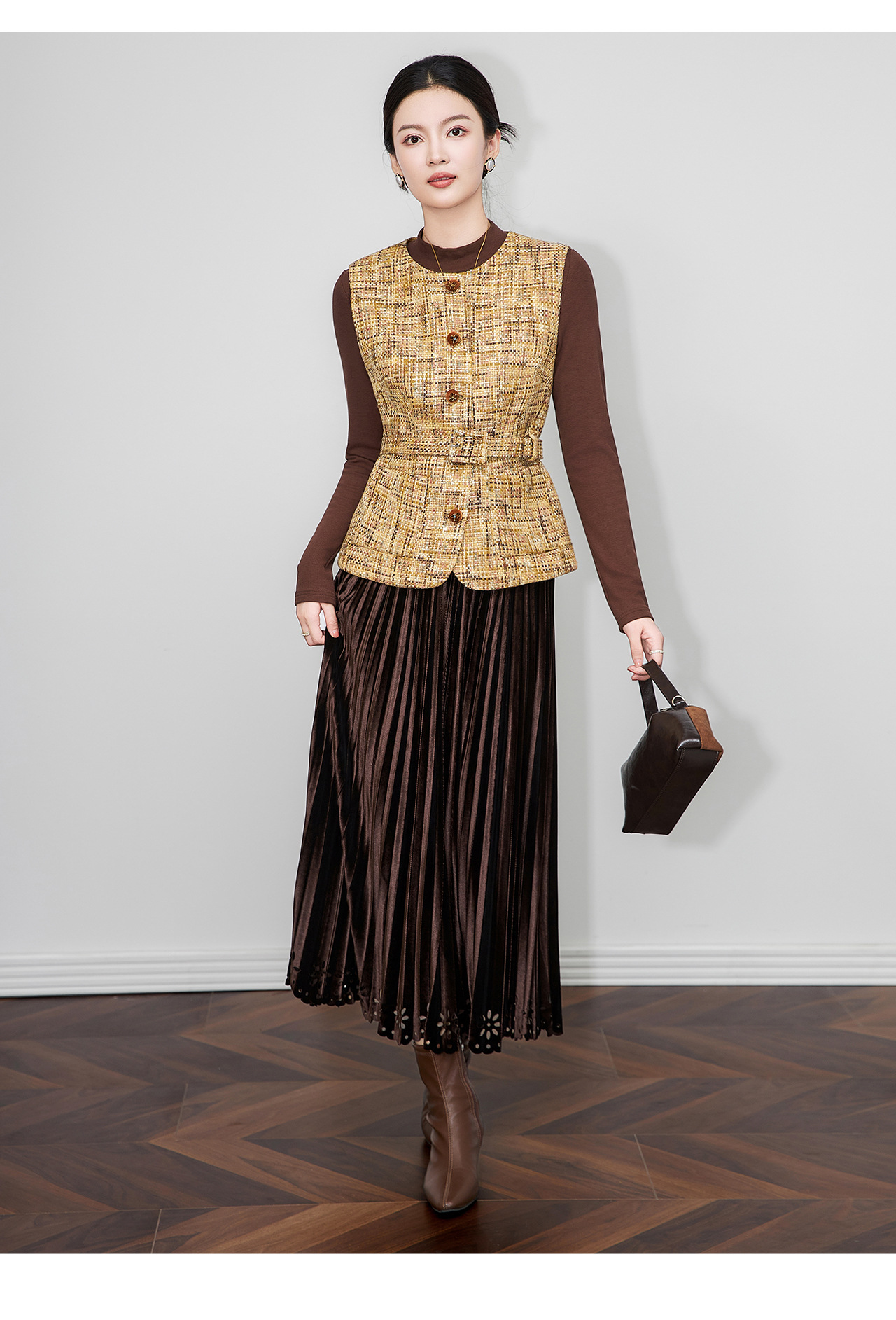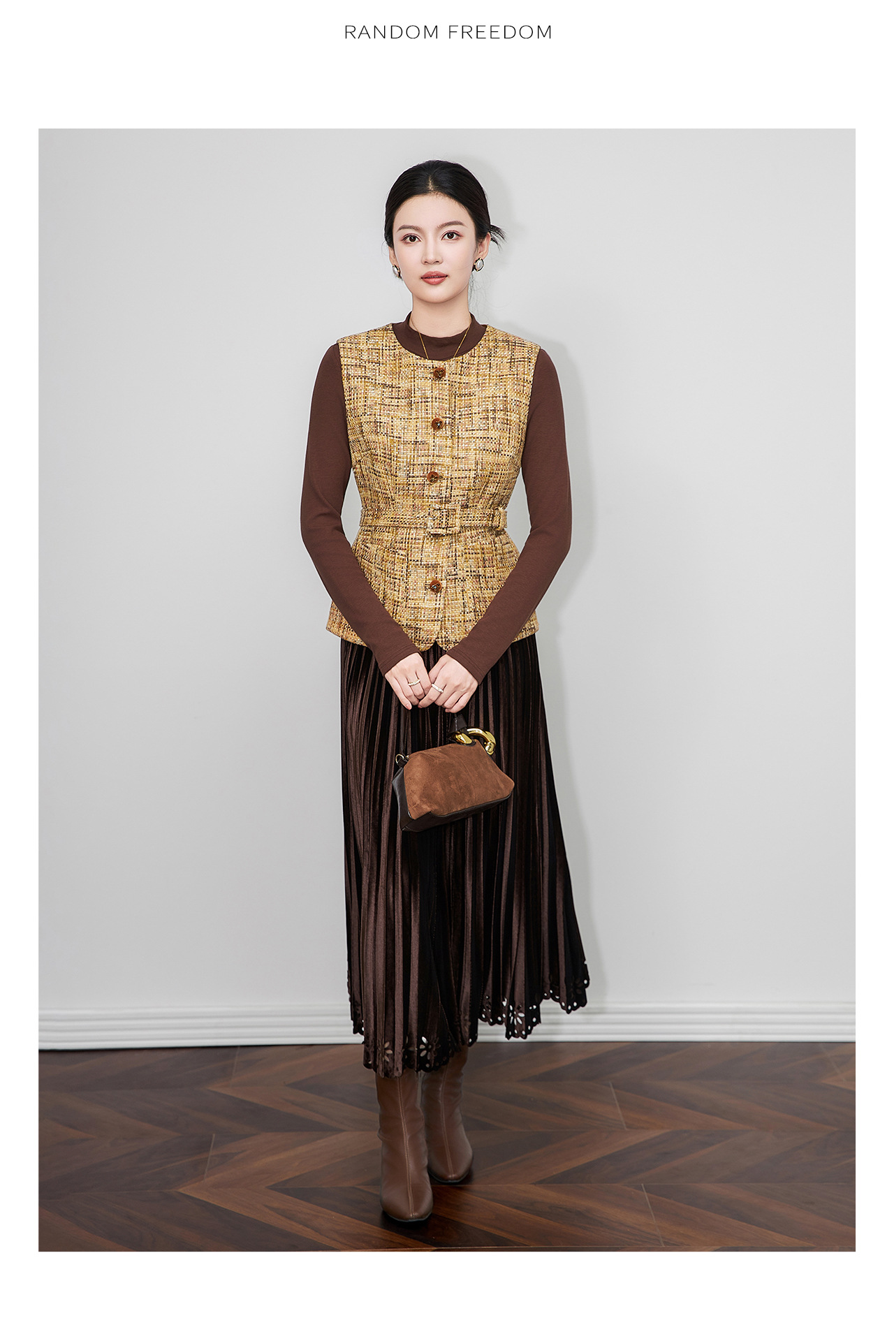 「高货wl」全新升级【铂金会员367/天猫499/差价132】(99634)洛诗琳2025秋冬法式小香风马甲外套丝绒镂空百褶裙两件套