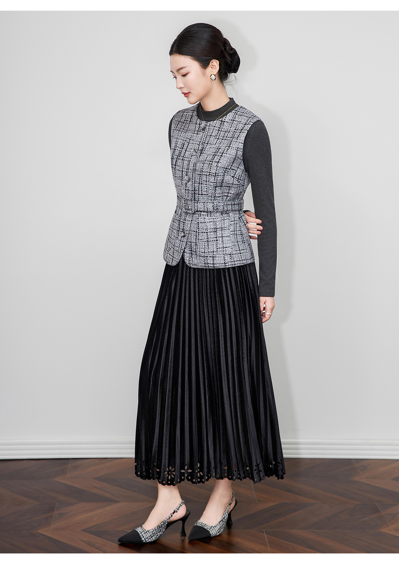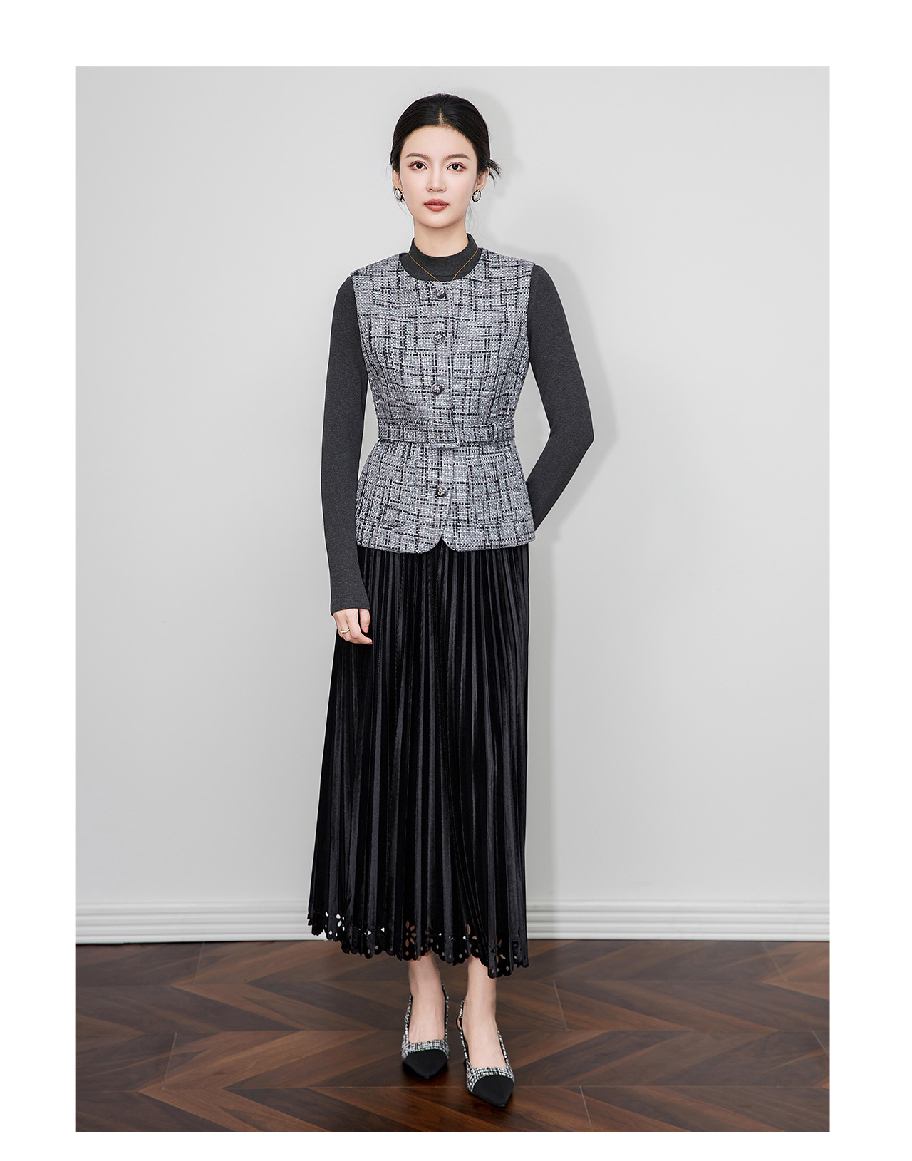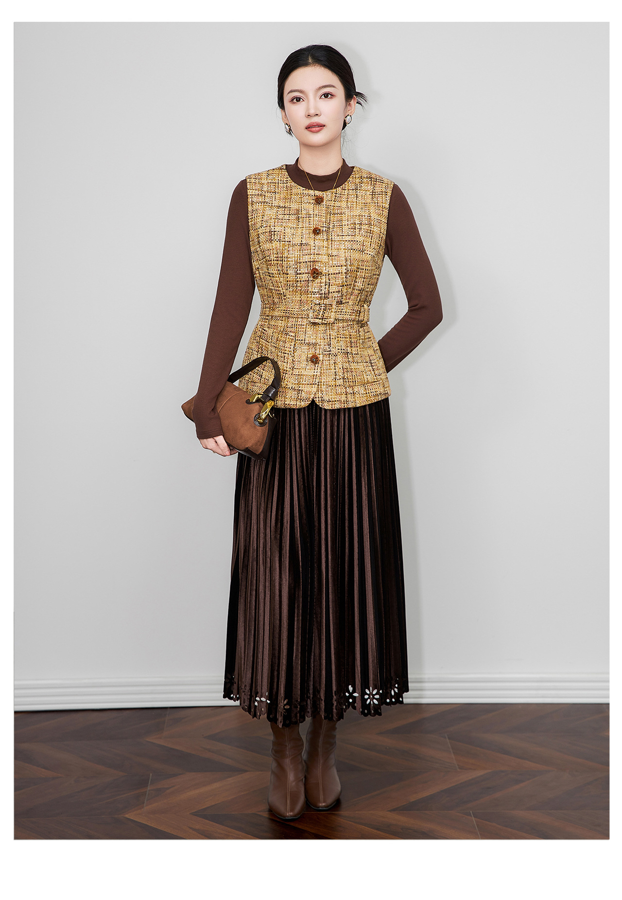 「高货wl」全新升级【铂金会员367/天猫499/差价132】(99634)洛诗琳2025秋冬法式小香风马甲外套丝绒镂空百褶裙两件套
