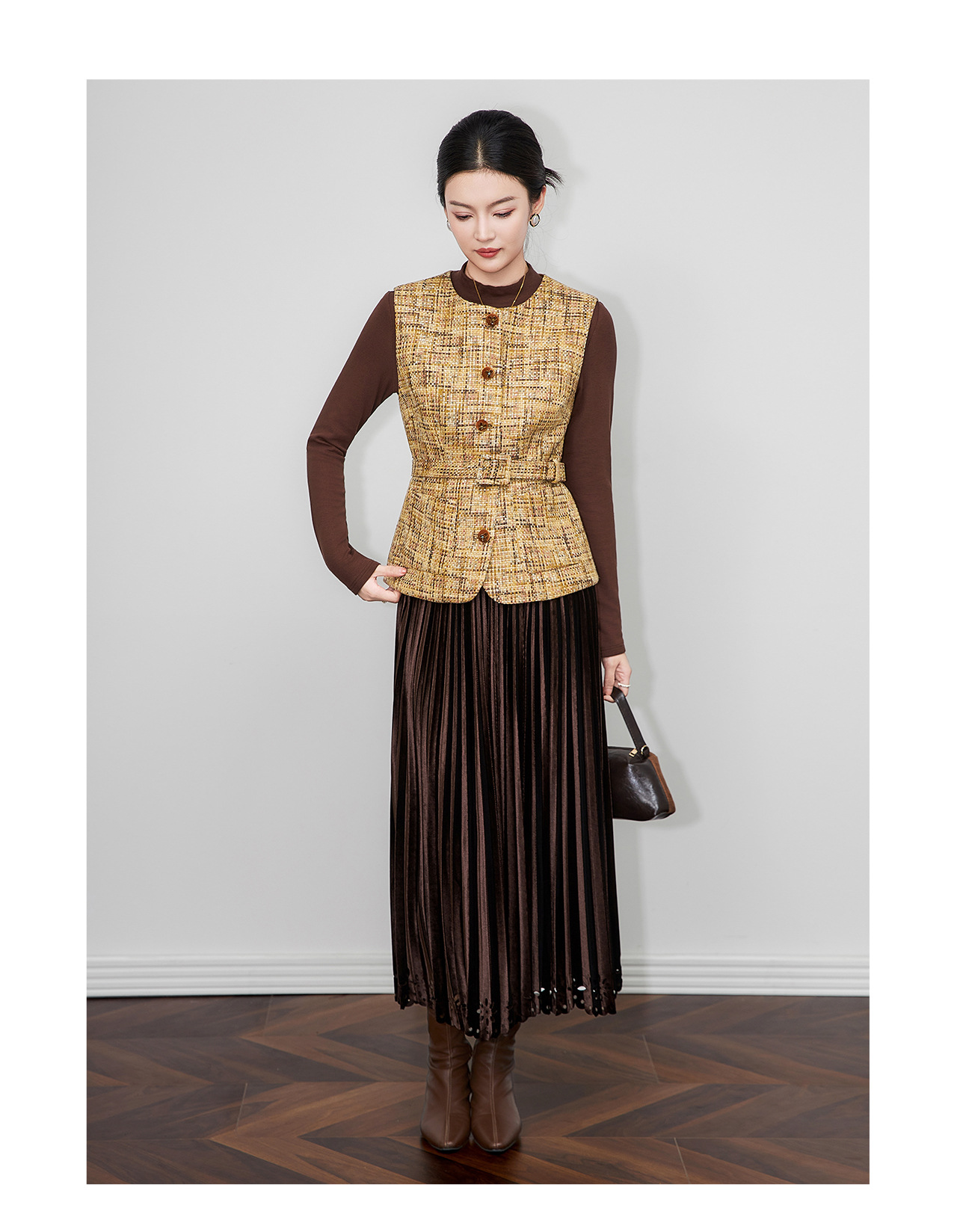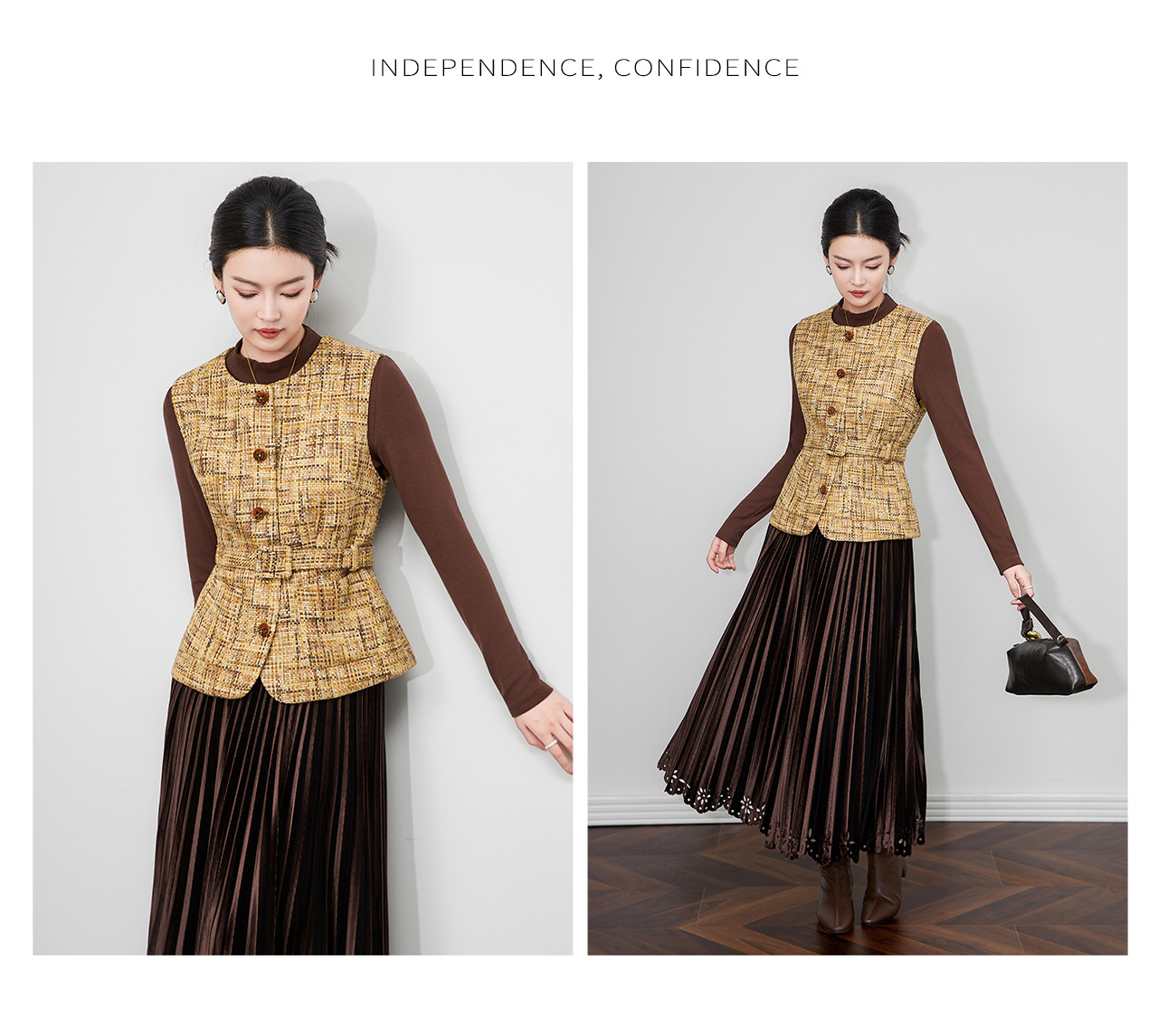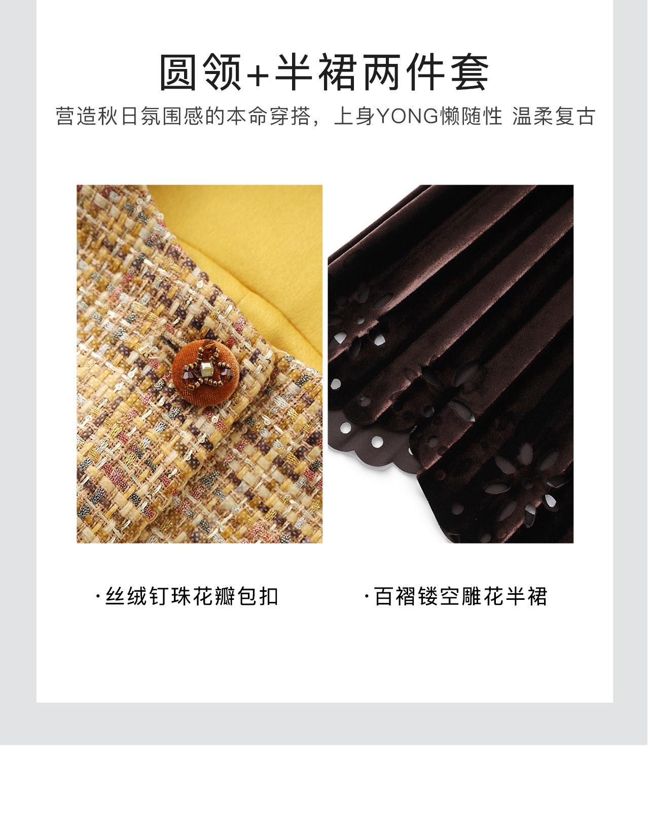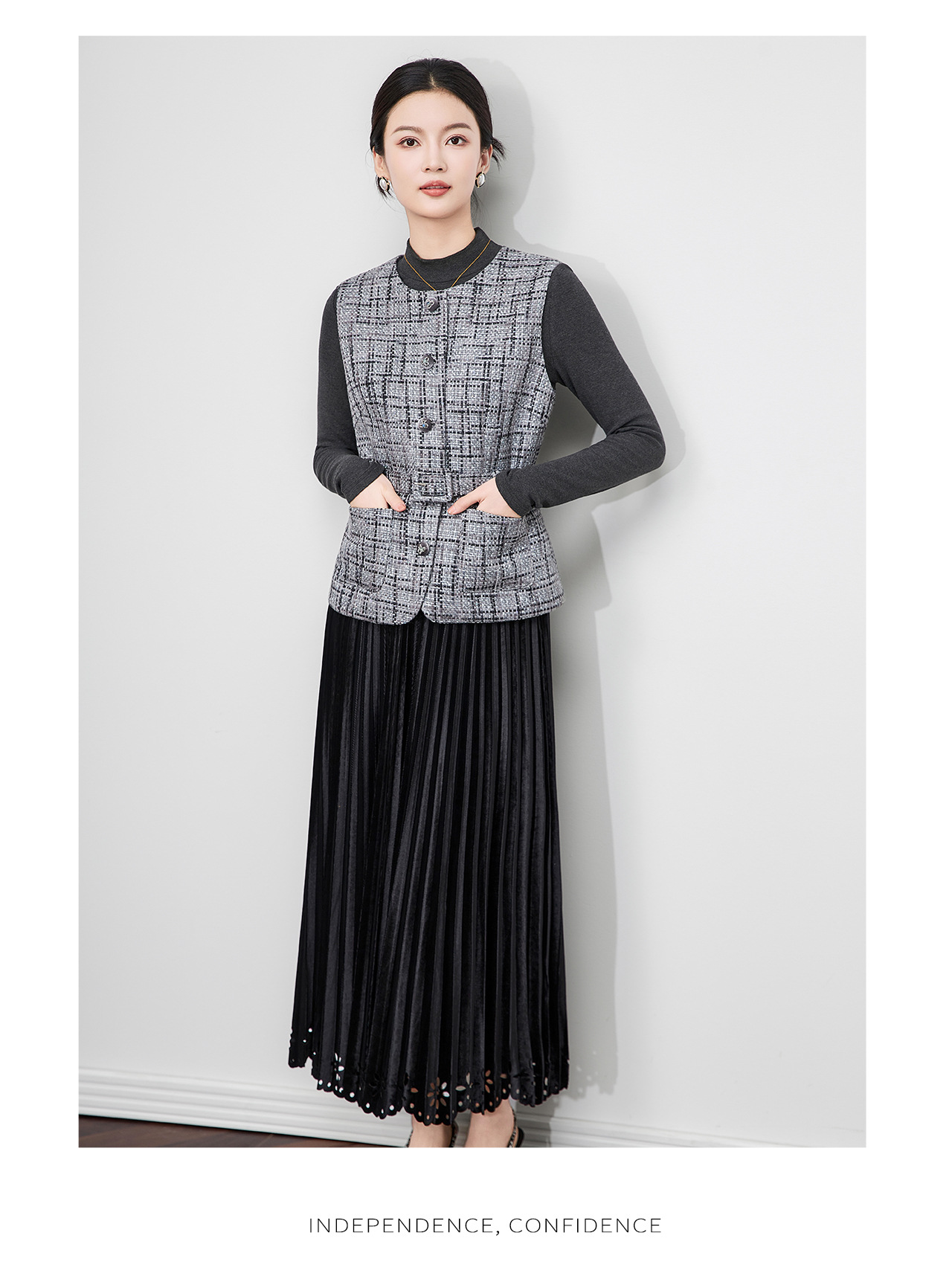 「高货wl」全新升级【铂金会员367/天猫499/差价132】(99634)洛诗琳2025秋冬法式小香风马甲外套丝绒镂空百褶裙两件套