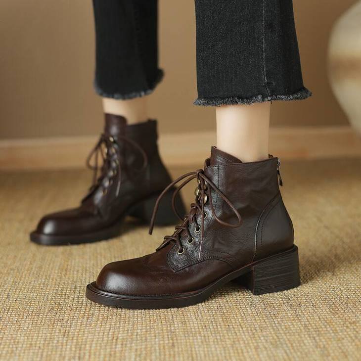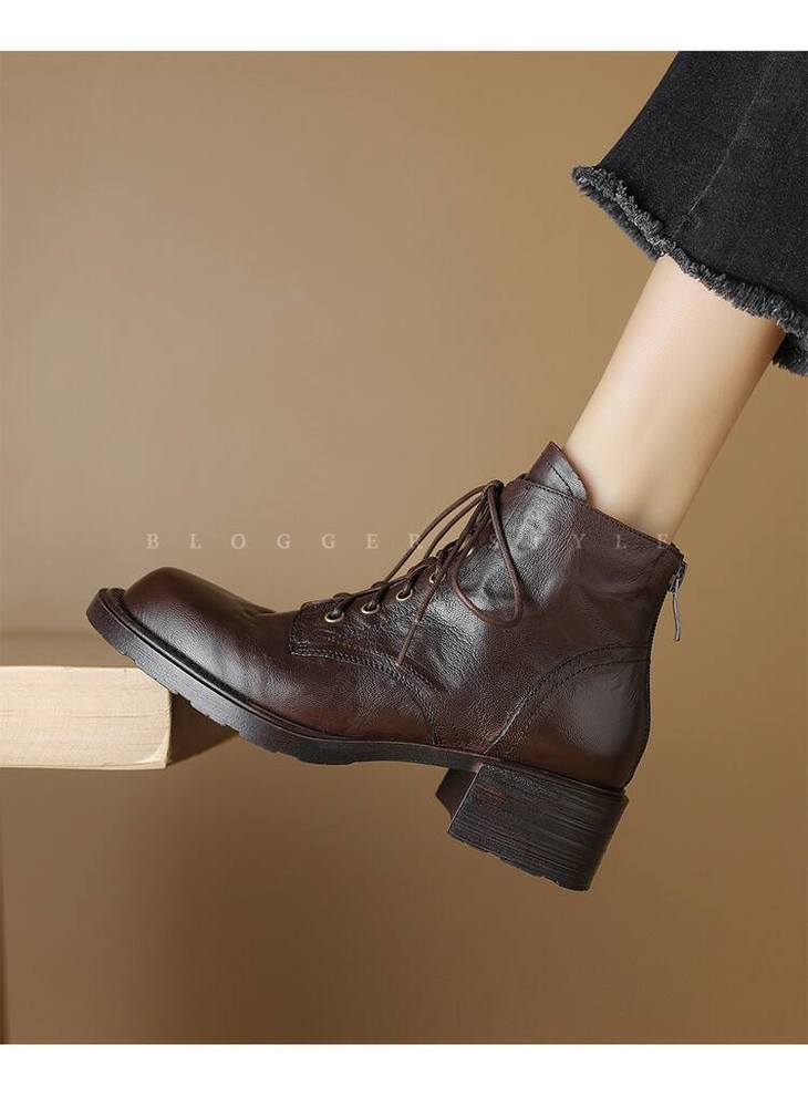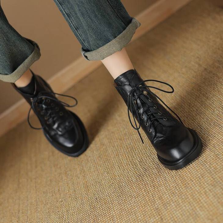 【预售5天】手抓纹羊皮褶皱质感系带休闲风马丁靴秋冬季新款学院风时尚短筒靴XS&AC9553