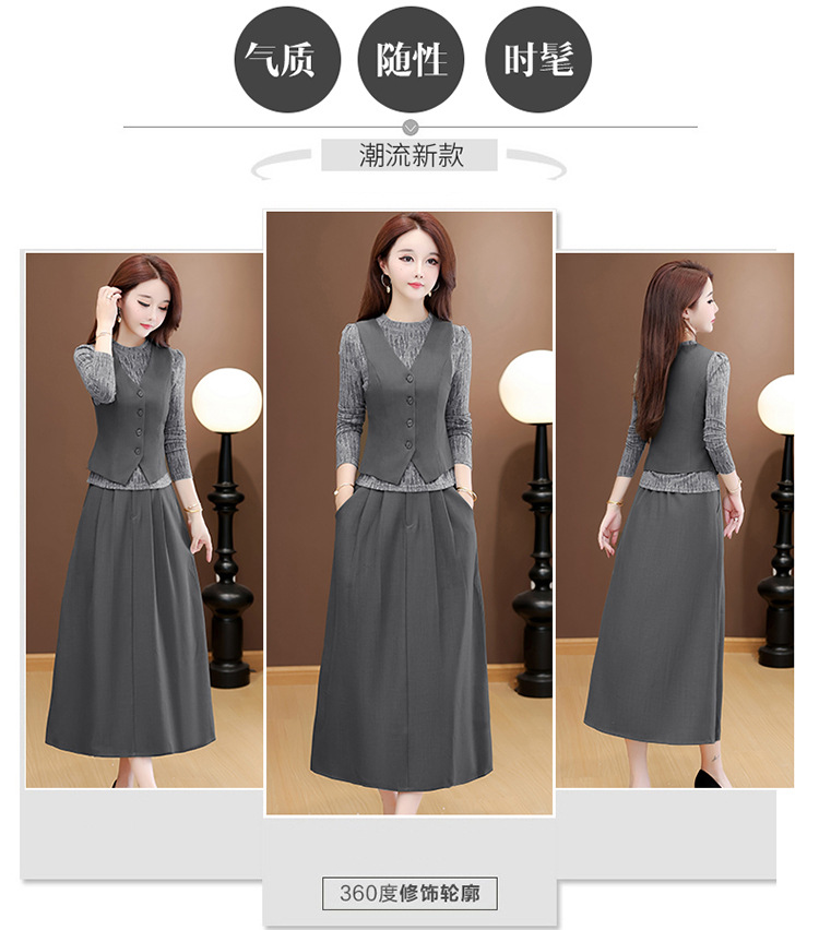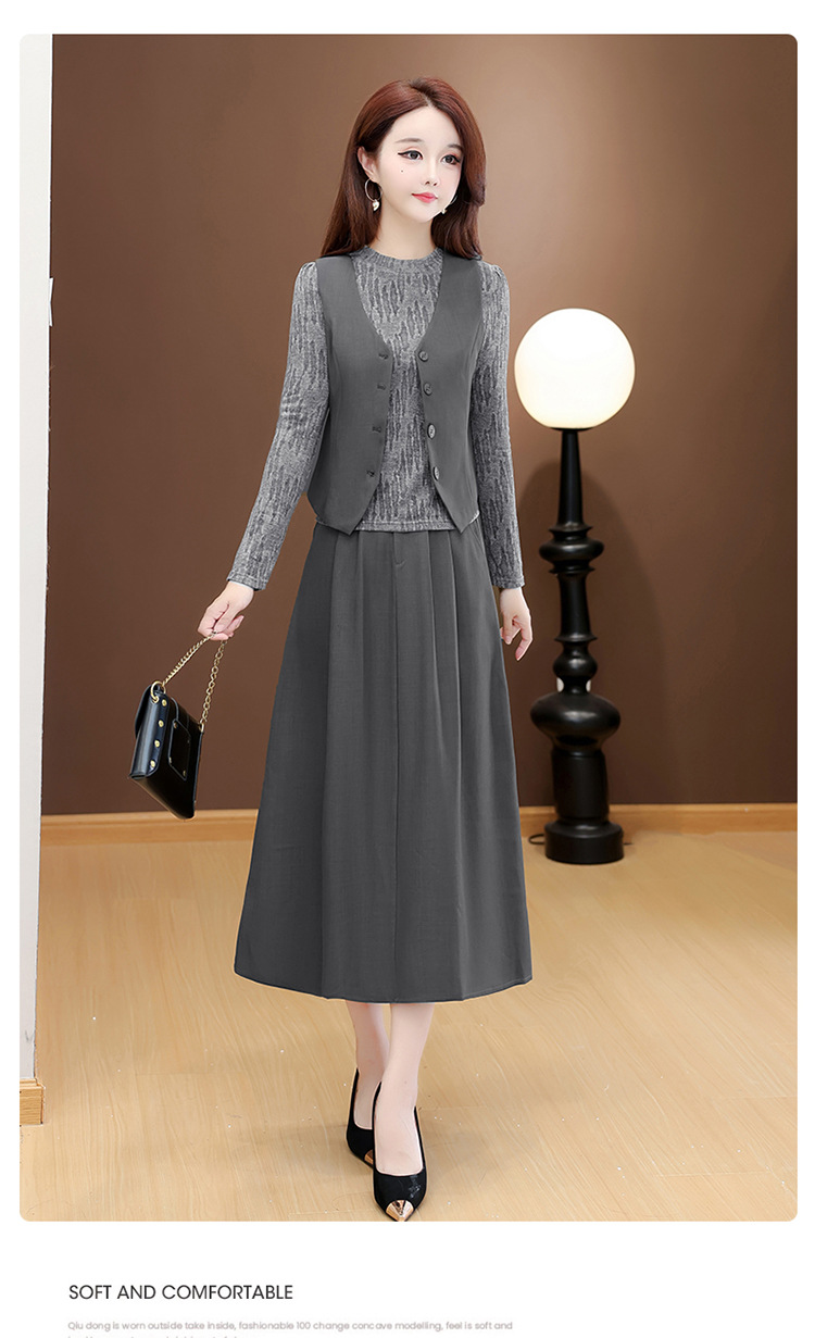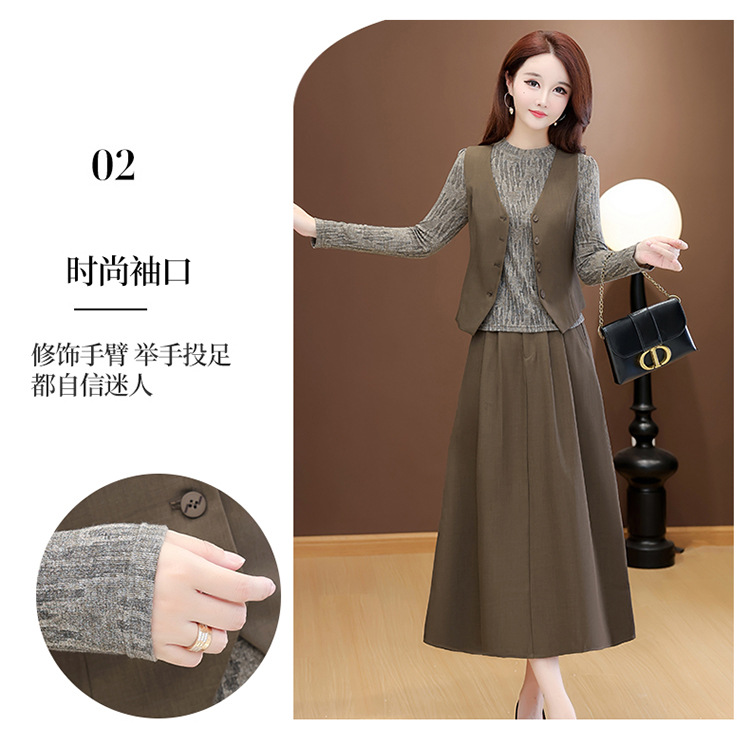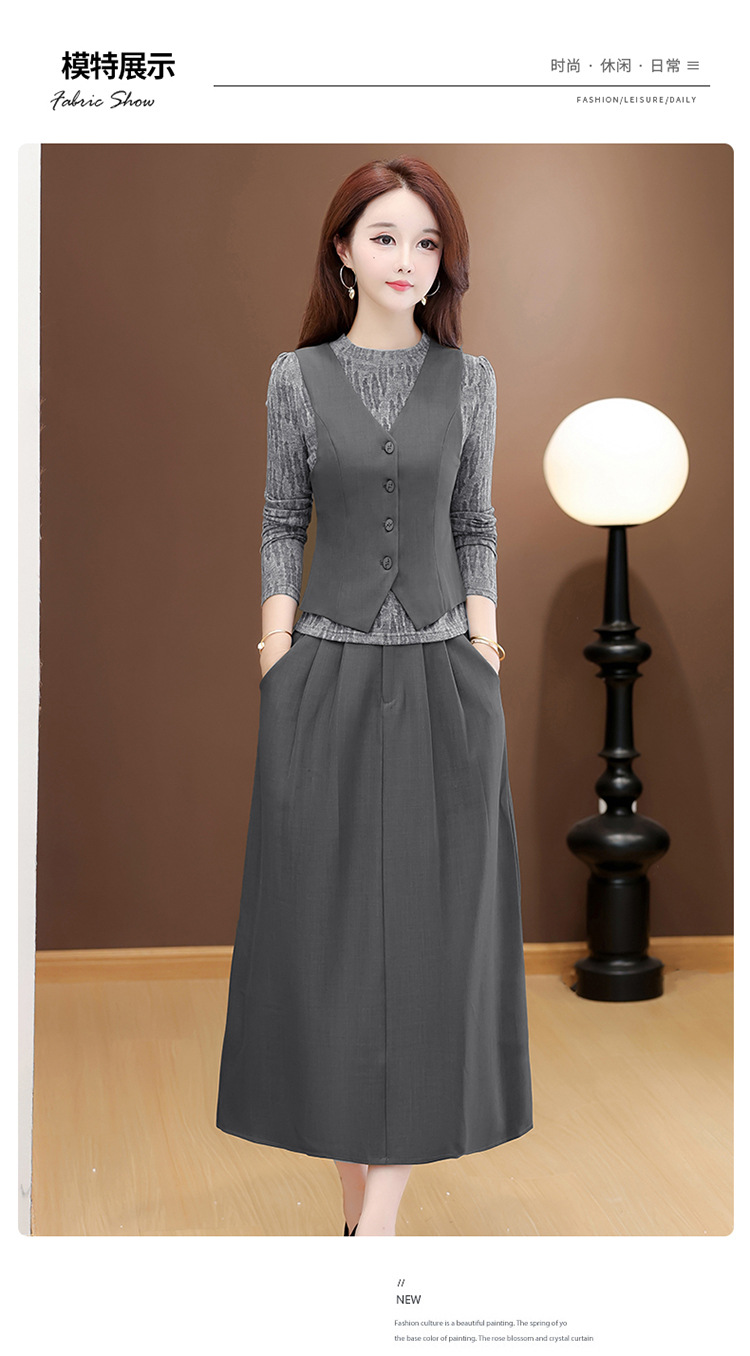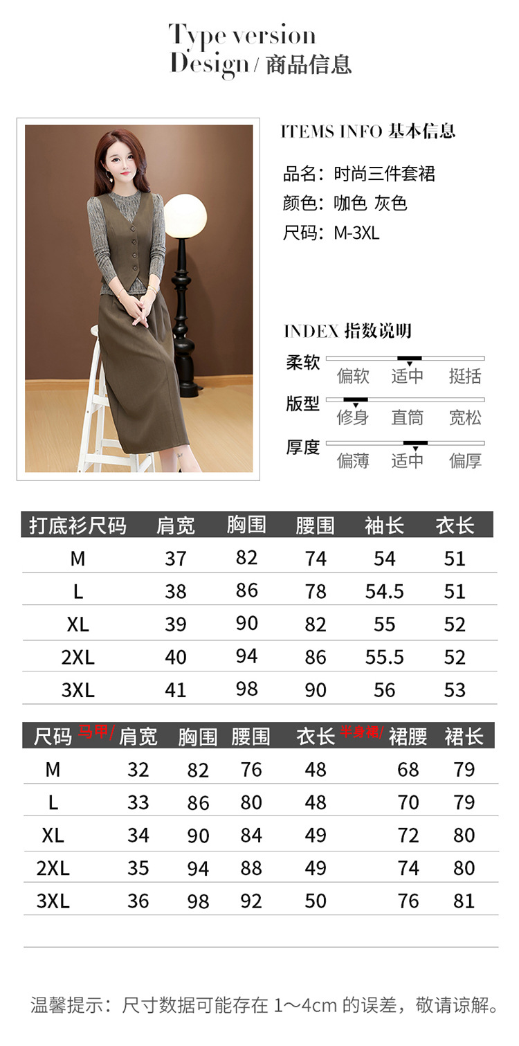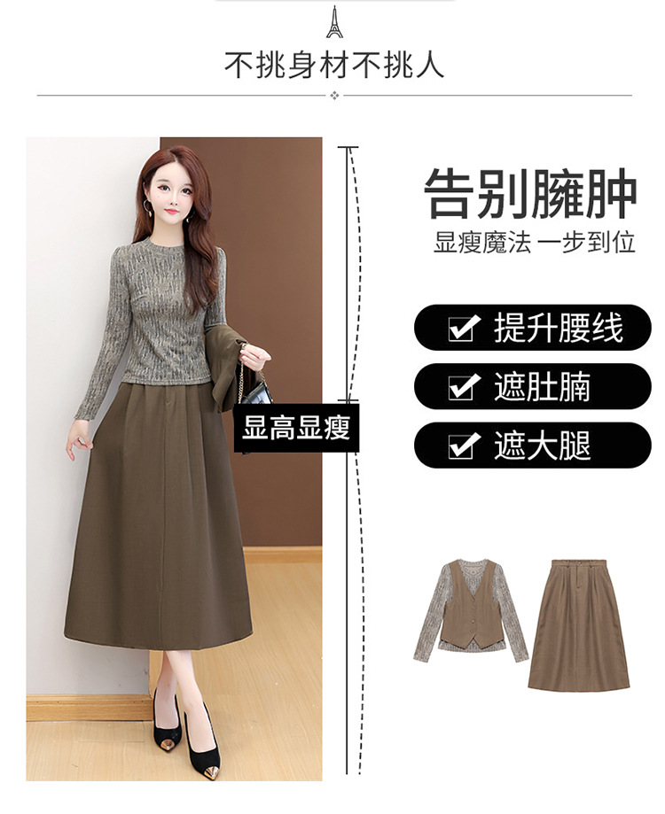 QYM 53B251-Y时尚三件套小衫+马甲+高腰半身裙套装