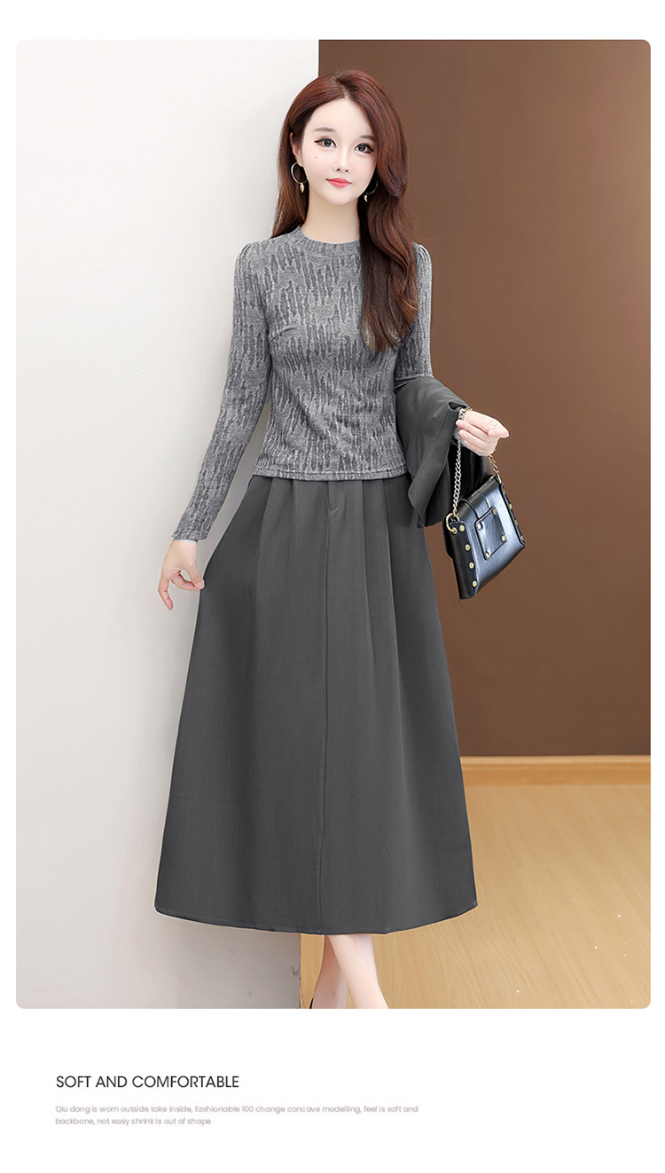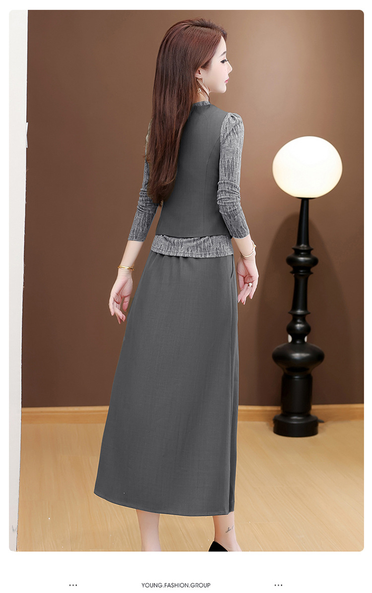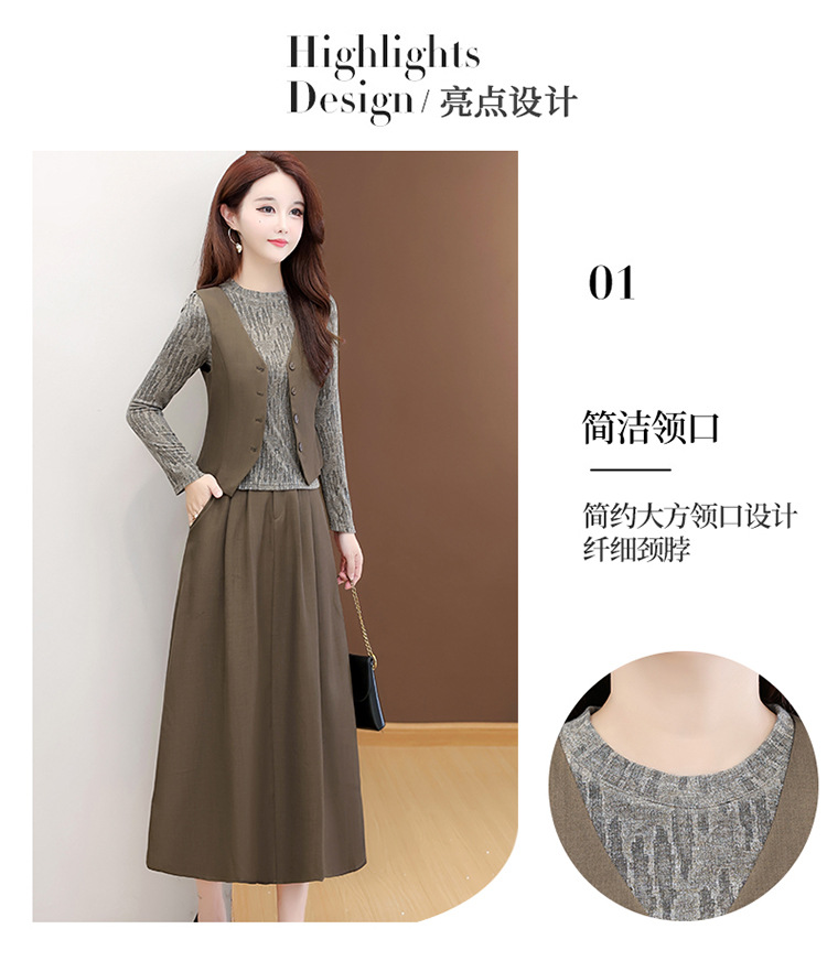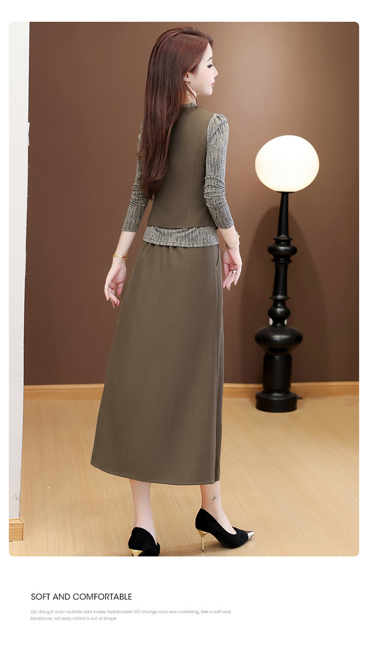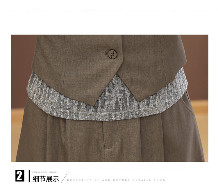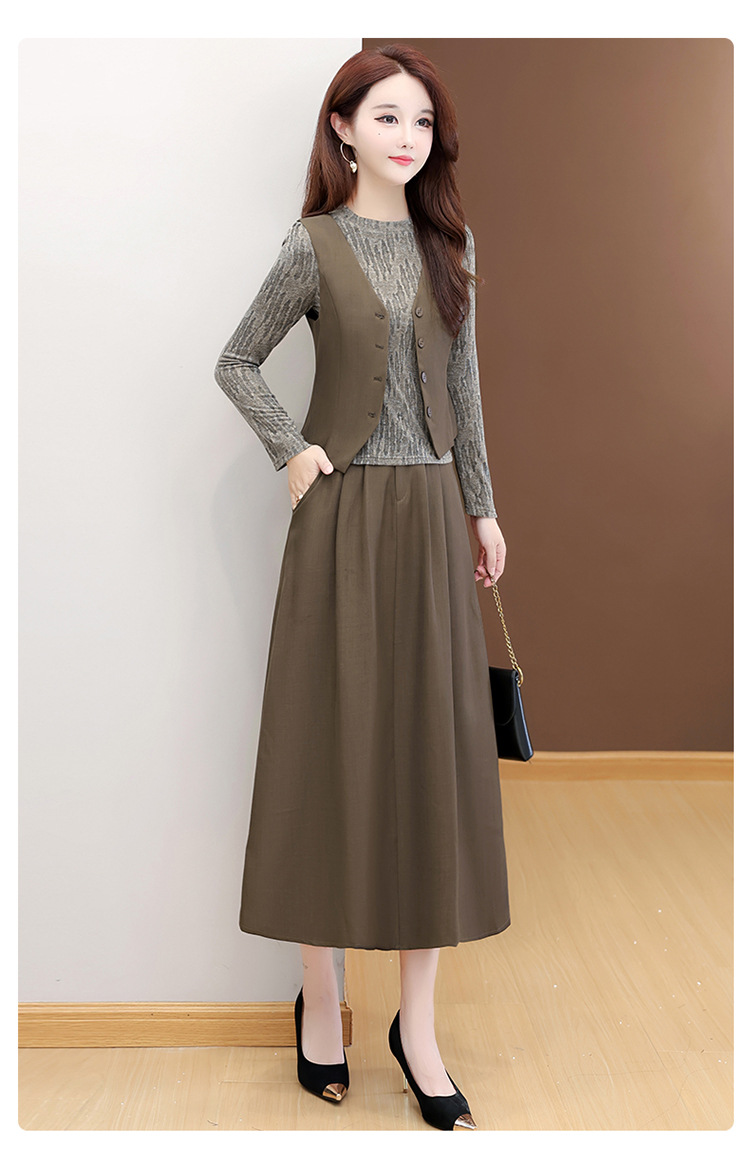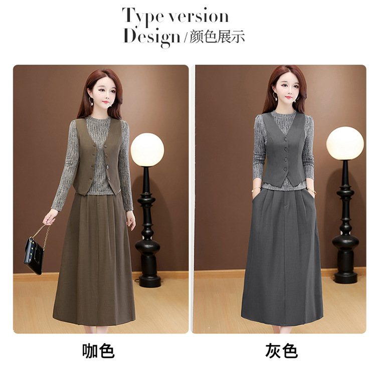 QYM 53B251-Y时尚三件套小衫+马甲+高腰半身裙套装