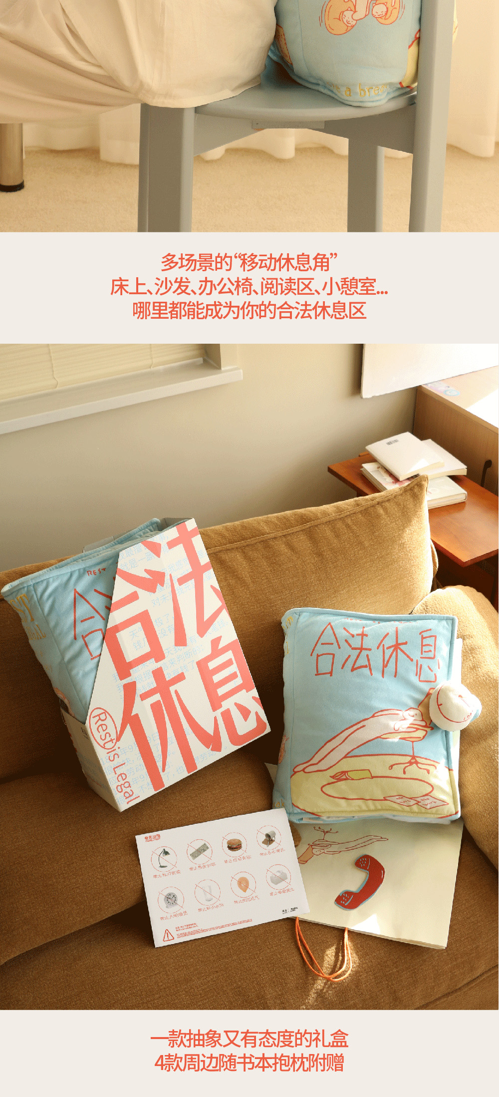 合法休息书本抱枕礼盒 创意毛绒靠枕 办公室午睡枕 节日礼物 果麦文创 保持联系station