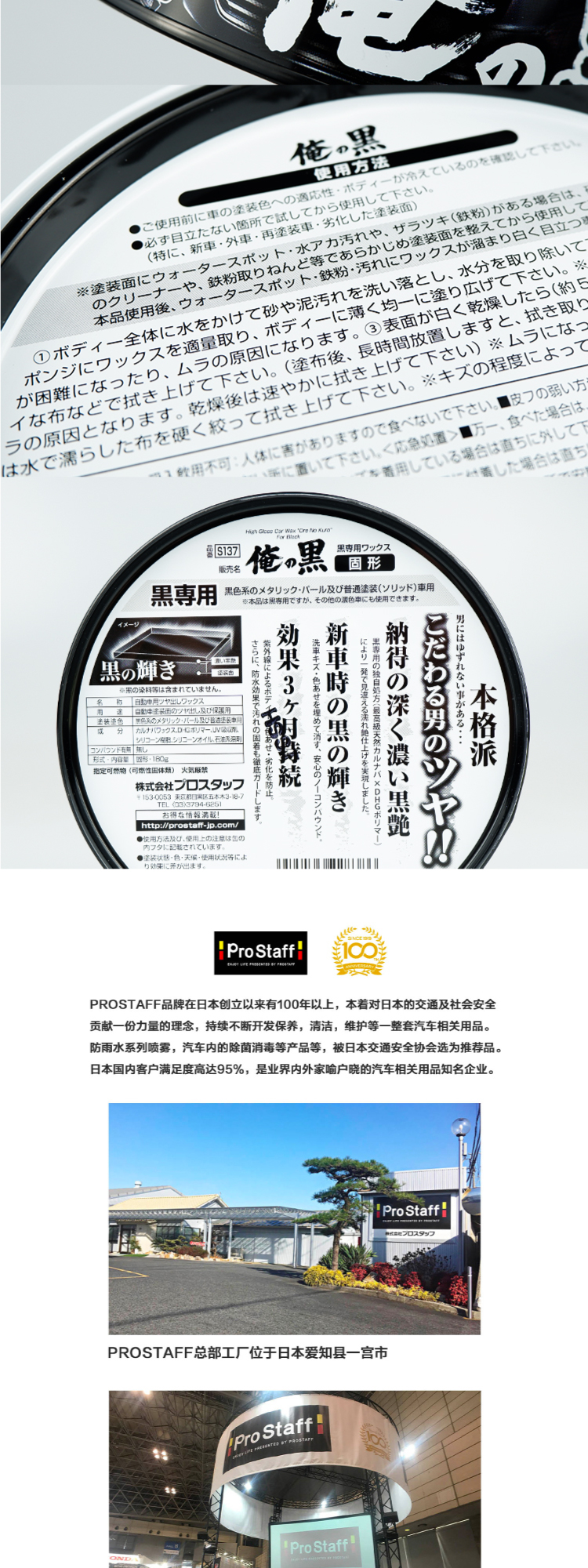 Prostaff专业大师S-137 “俺的黑”固体车蜡黑色车身通用上光镀膜蜡