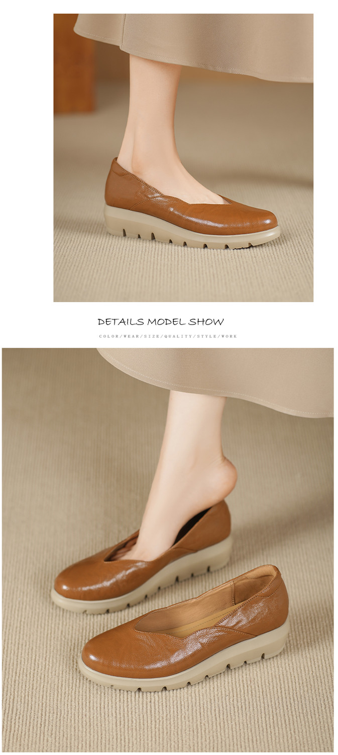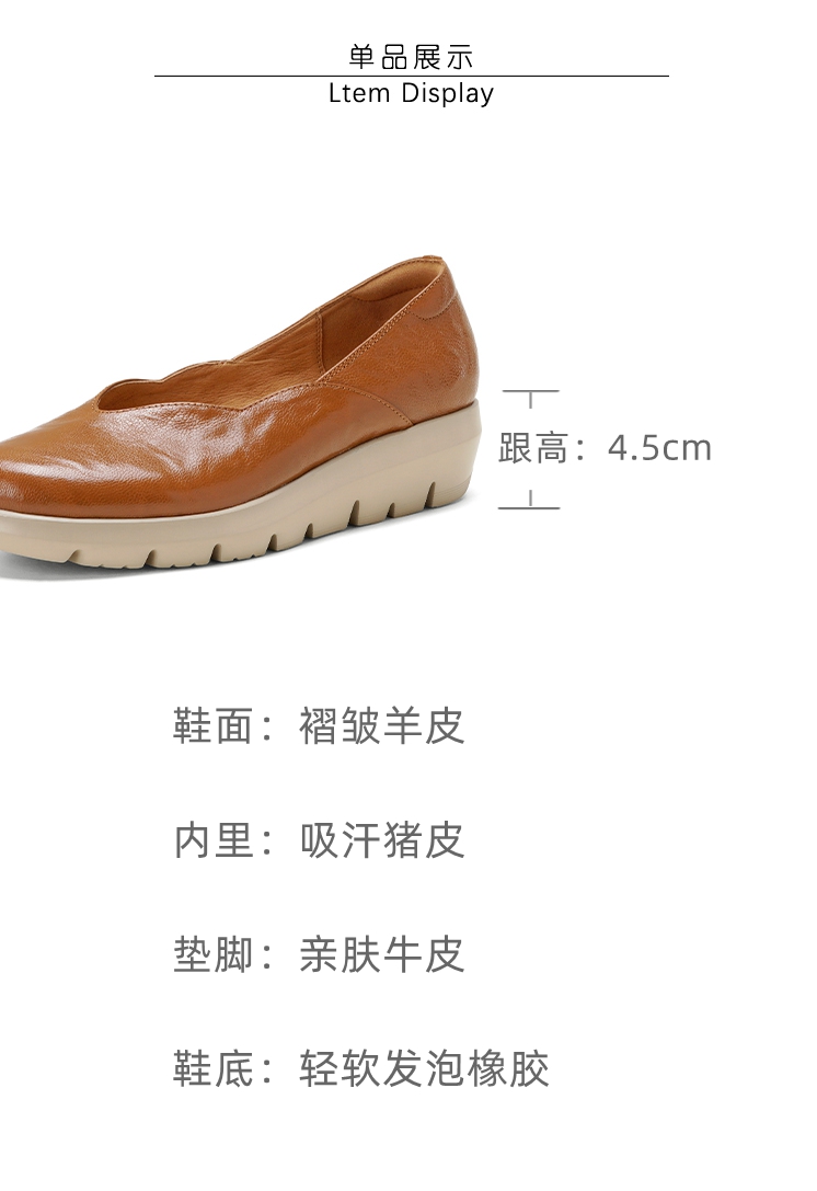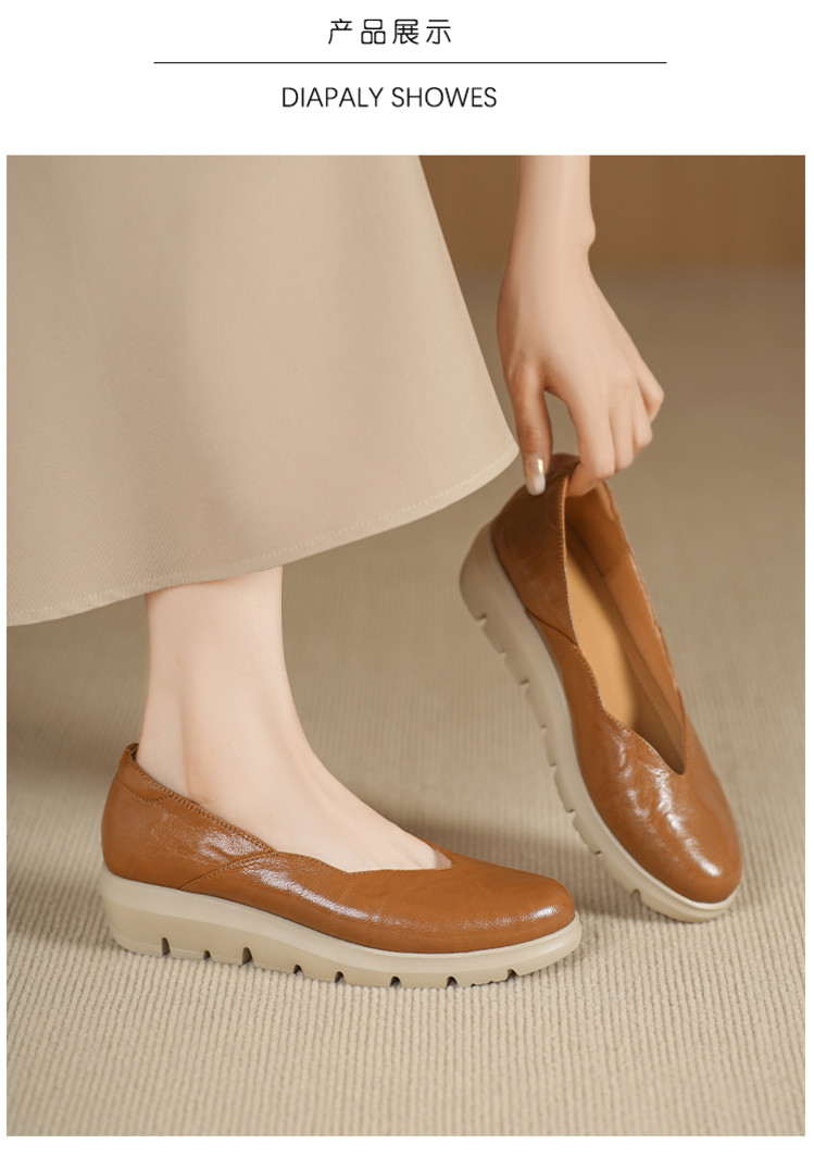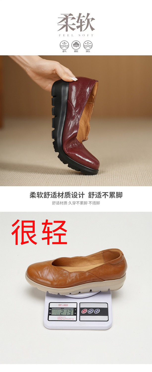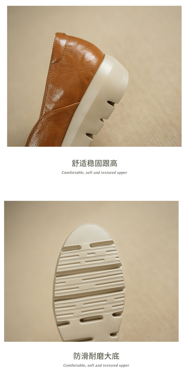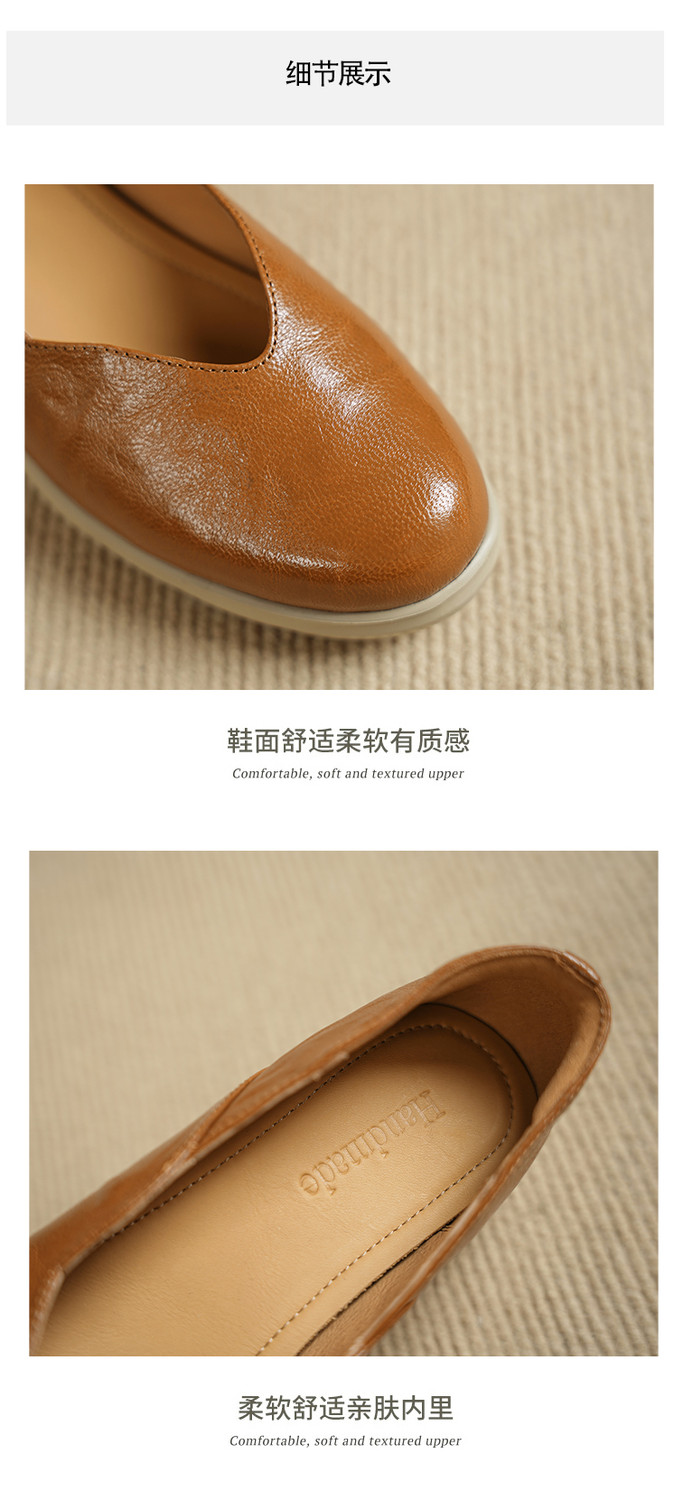 【预售5天】法式软羊皮浅口单鞋女通勤外穿真皮圆头厚底小皮鞋女舒适奶奶鞋DTN&583-10