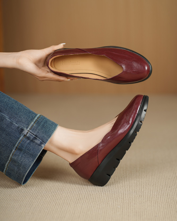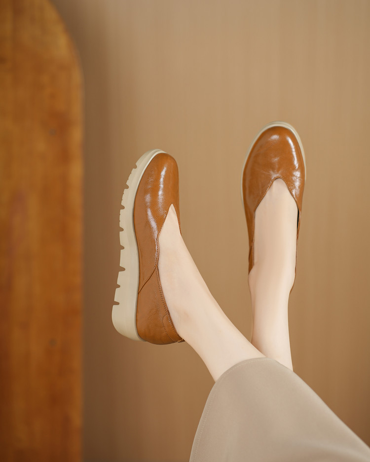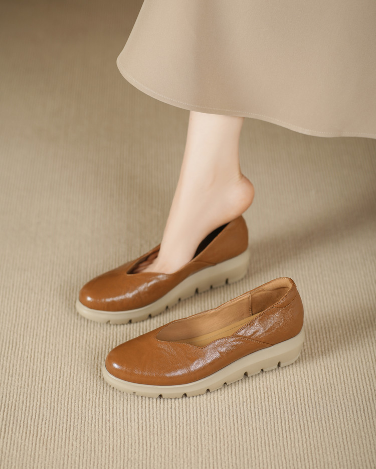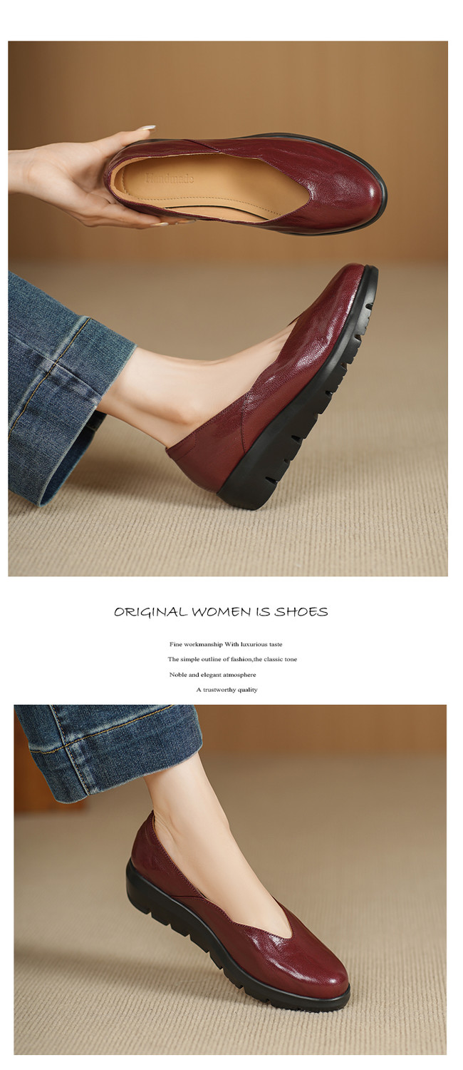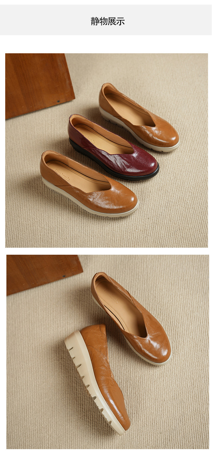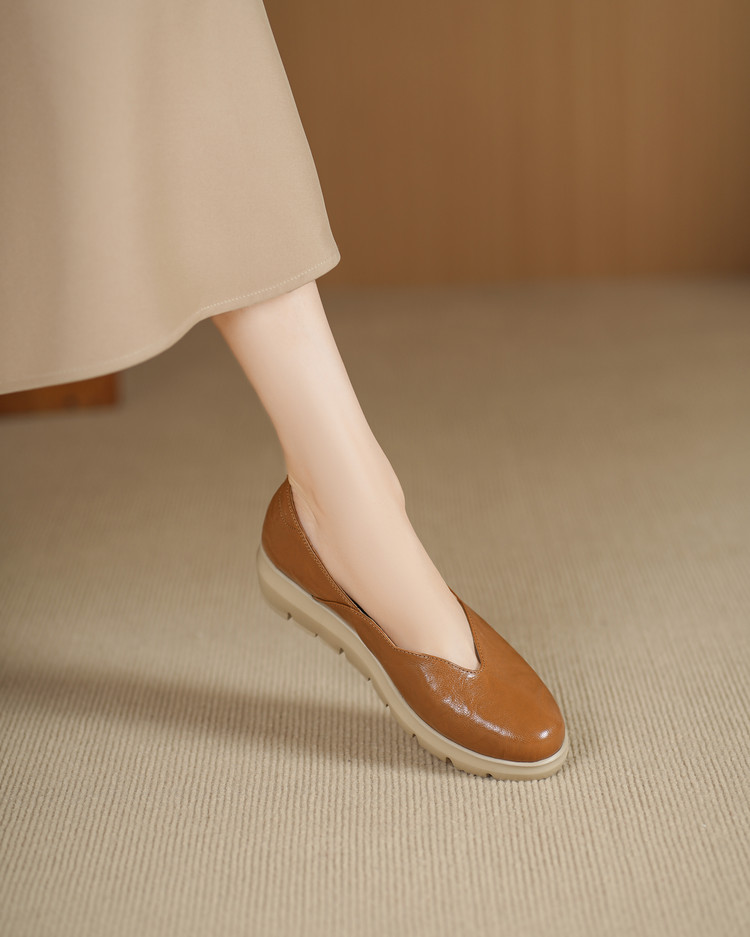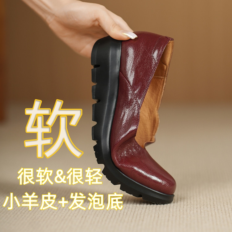 【预售5天】法式软羊皮浅口单鞋女通勤外穿真皮圆头厚底小皮鞋女舒适奶奶鞋DTN&583-10