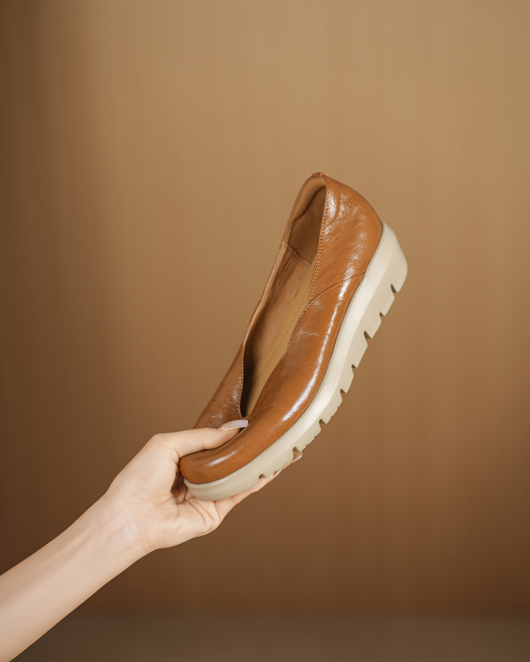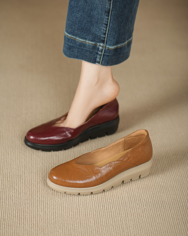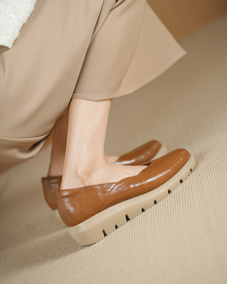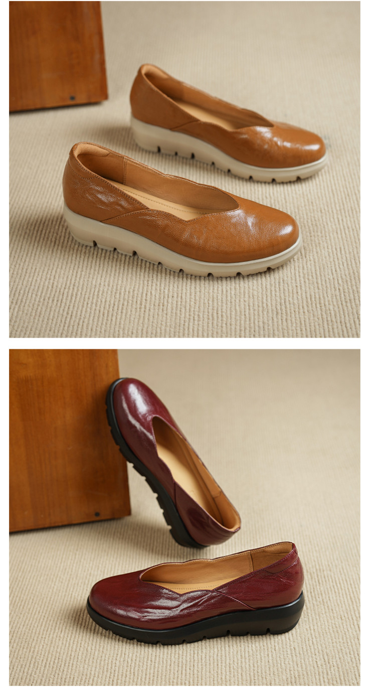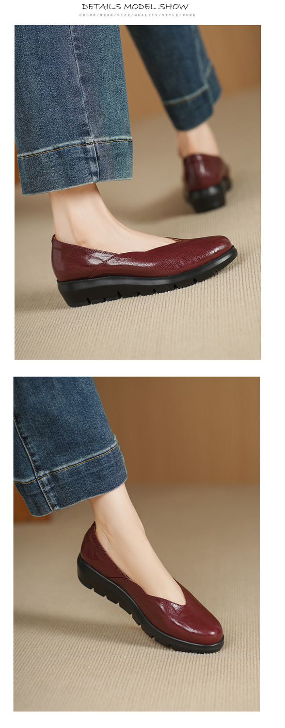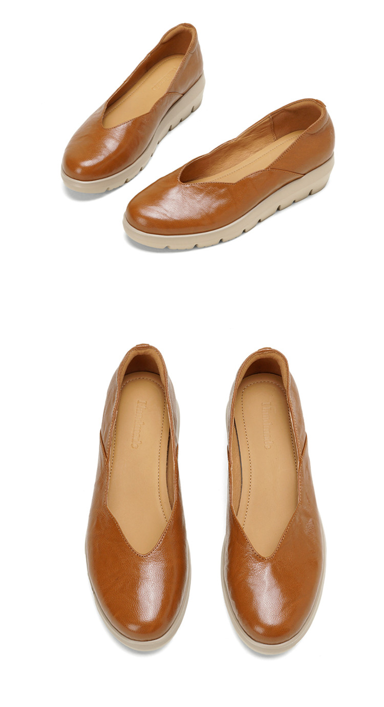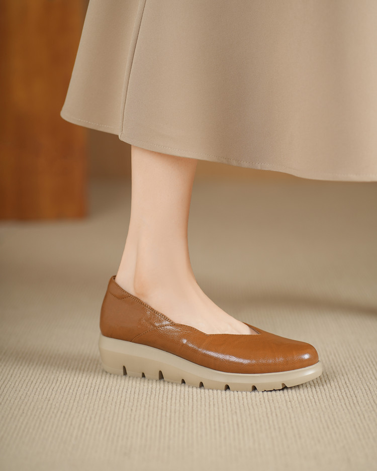 【预售5天】法式软羊皮浅口单鞋女通勤外穿真皮圆头厚底小皮鞋女舒适奶奶鞋DTN&583-10