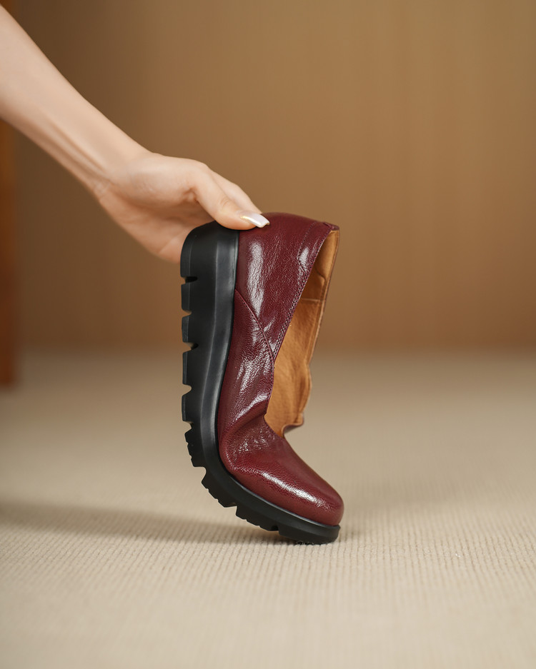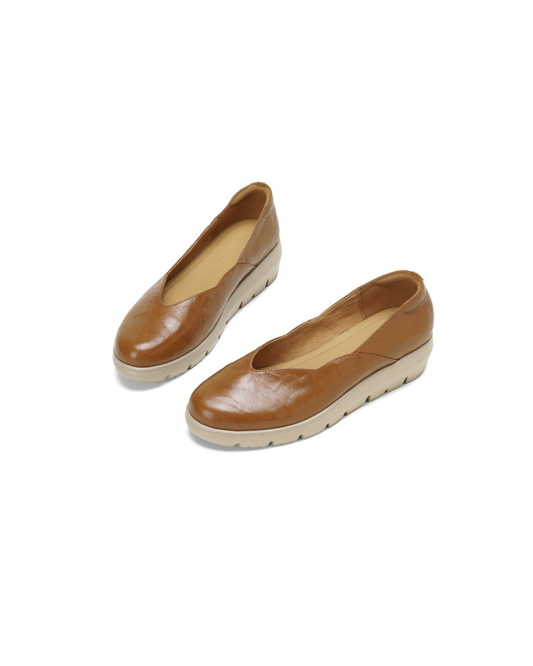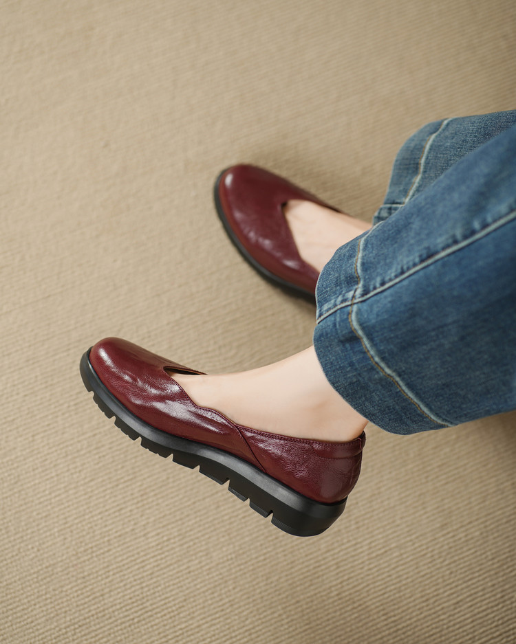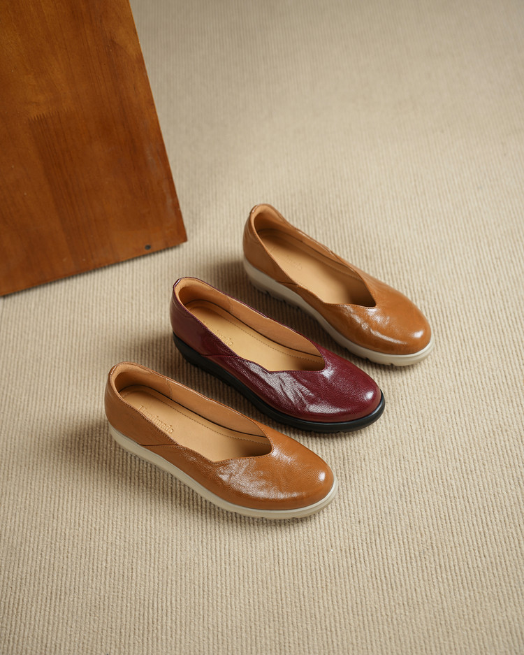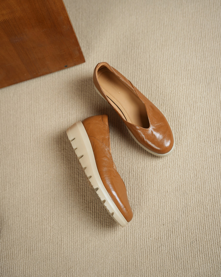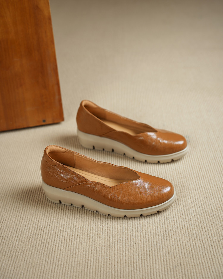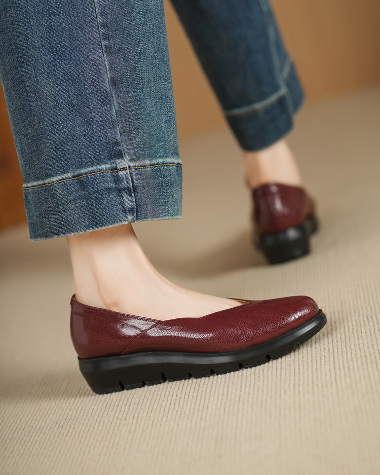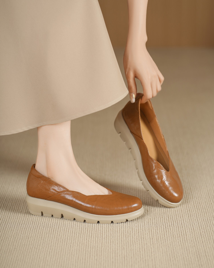 【预售5天】法式软羊皮浅口单鞋女通勤外穿真皮圆头厚底小皮鞋女舒适奶奶鞋DTN&583-10