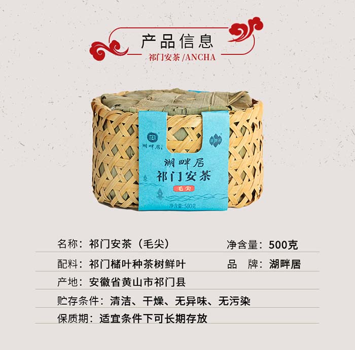2023年原料湖畔居祁门安茶(毛尖)安徽省祁门县醇香黑茶500g