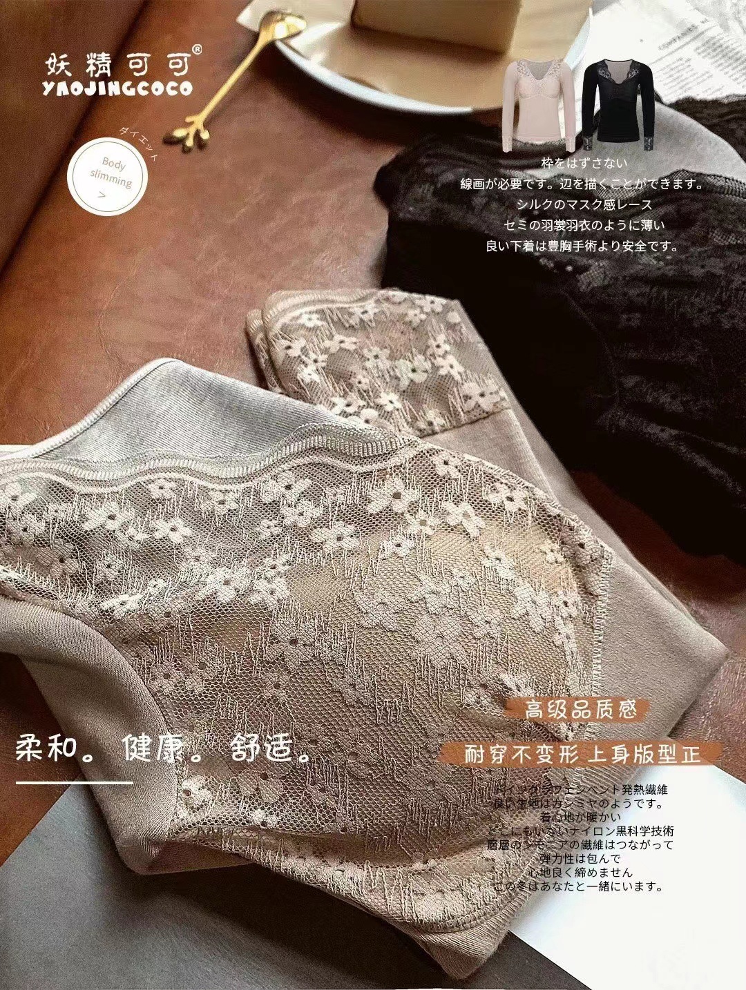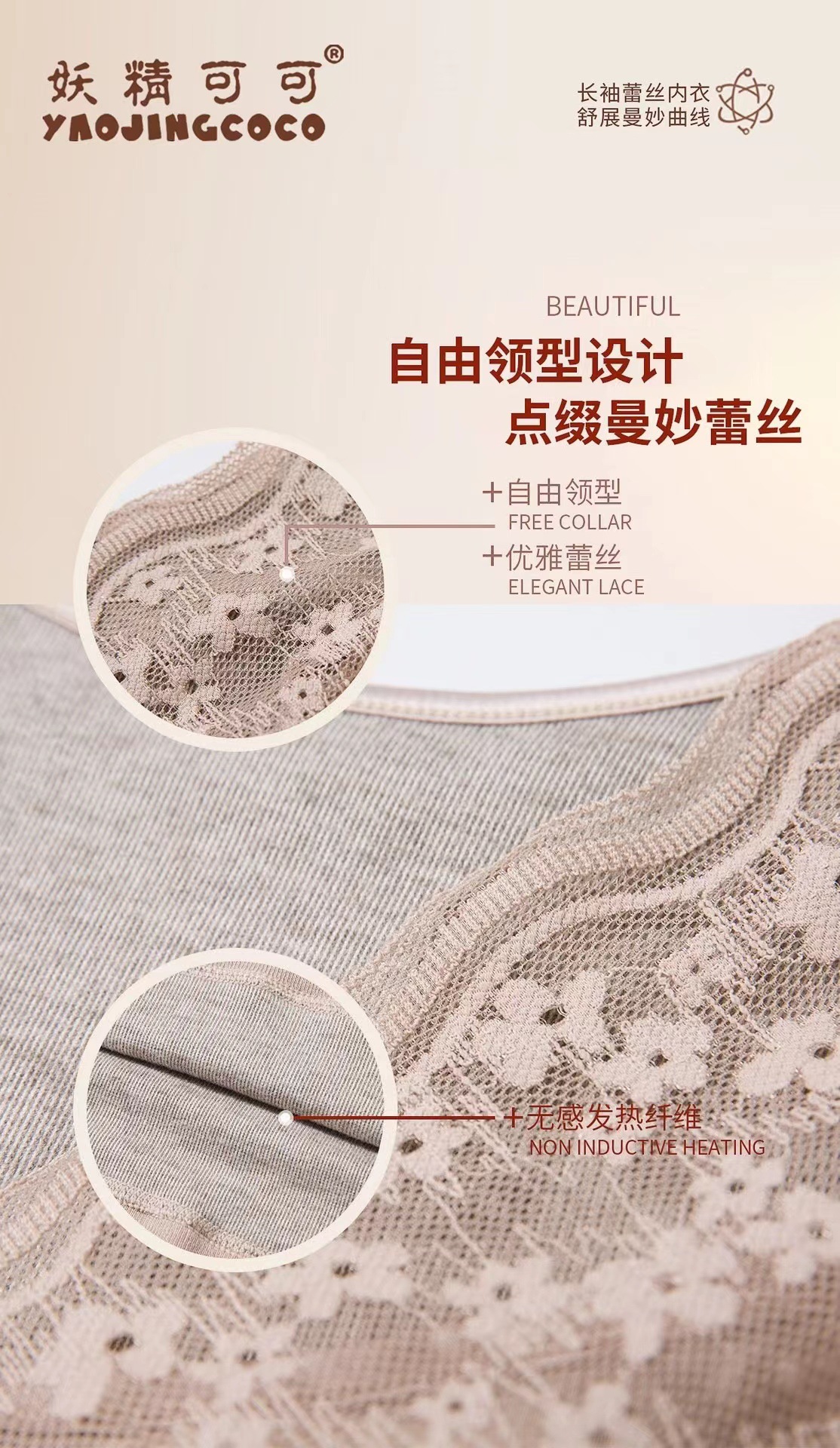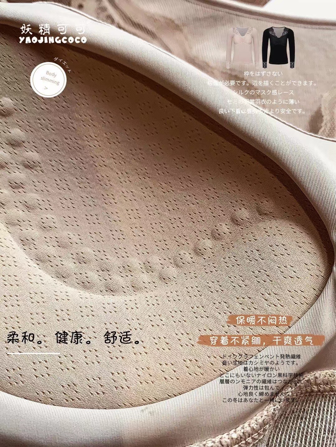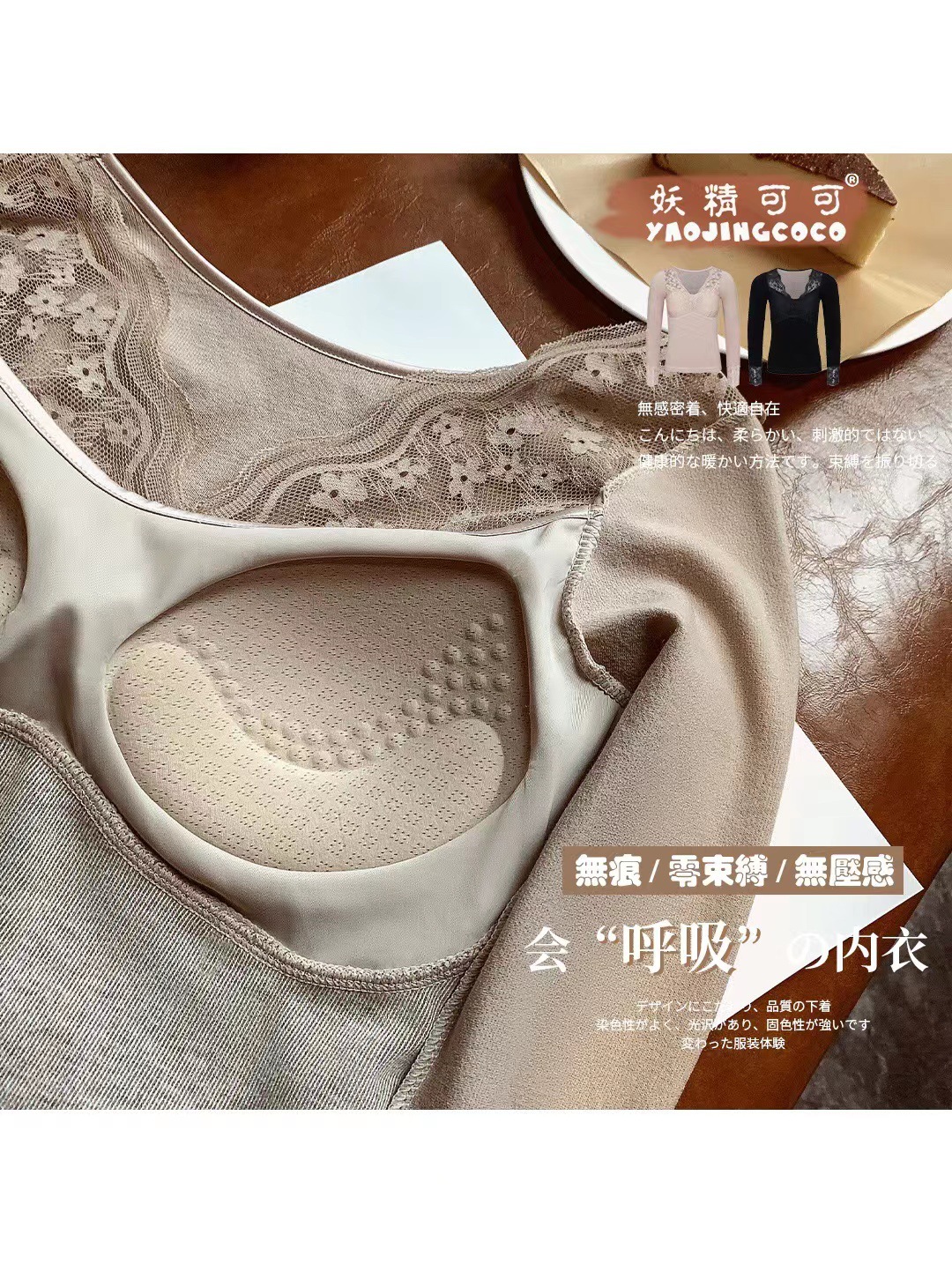 秋冬可可沐暖玲珑衣 无钢圈美胸内衣蕾丝打底加厚保暖上衣女 BQ玲珑衣