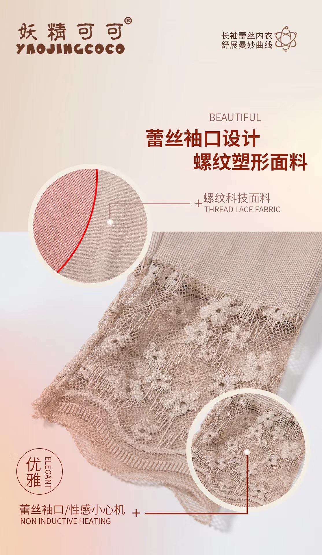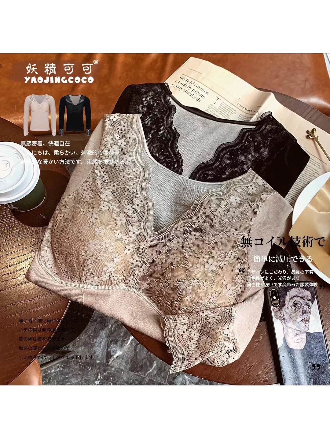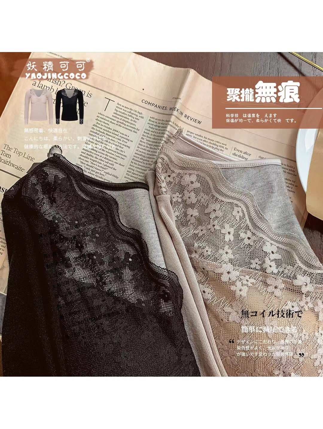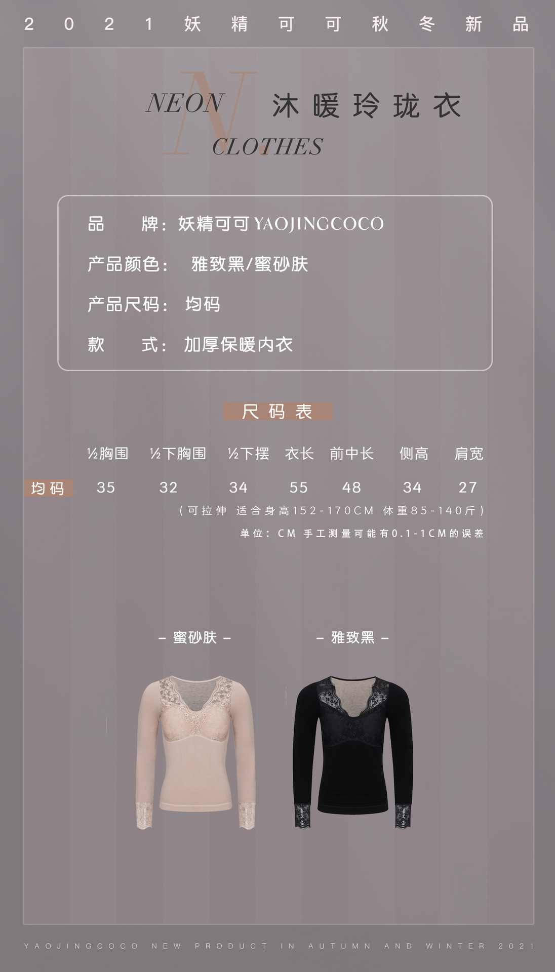 秋冬可可沐暖玲珑衣 无钢圈美胸内衣蕾丝打底加厚保暖上衣女 BQ玲珑衣