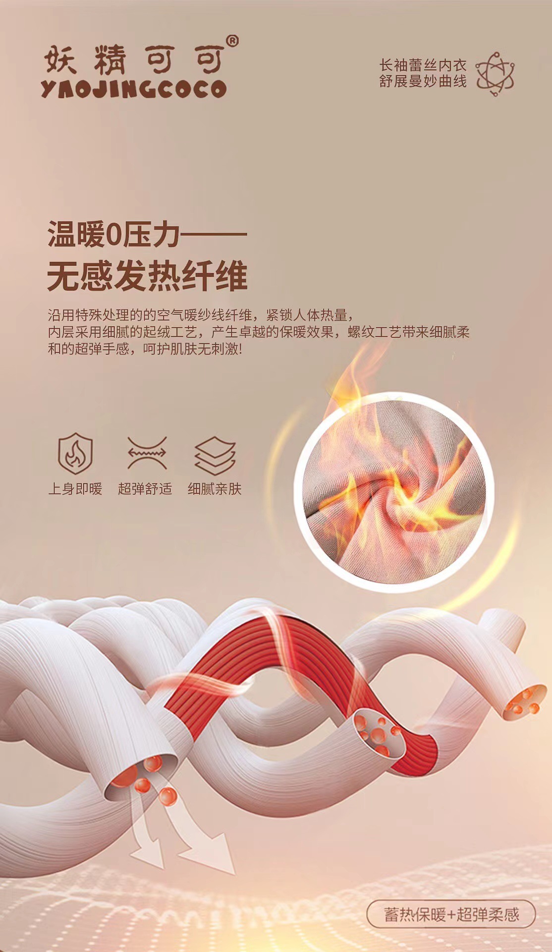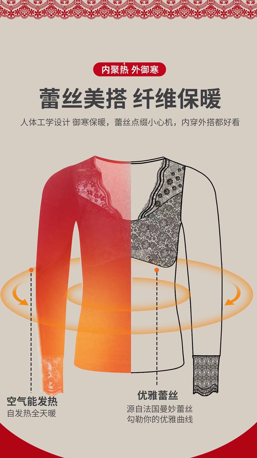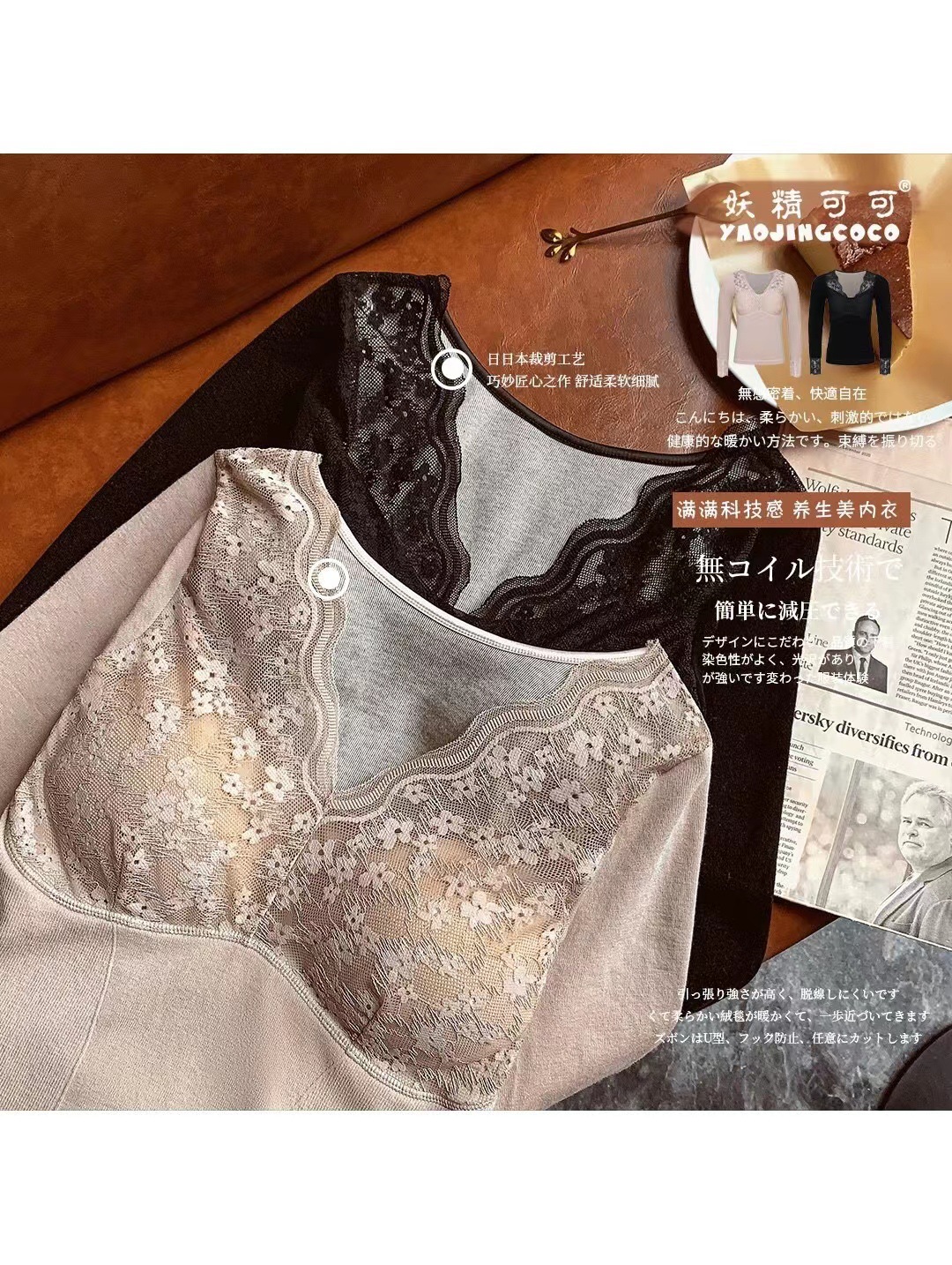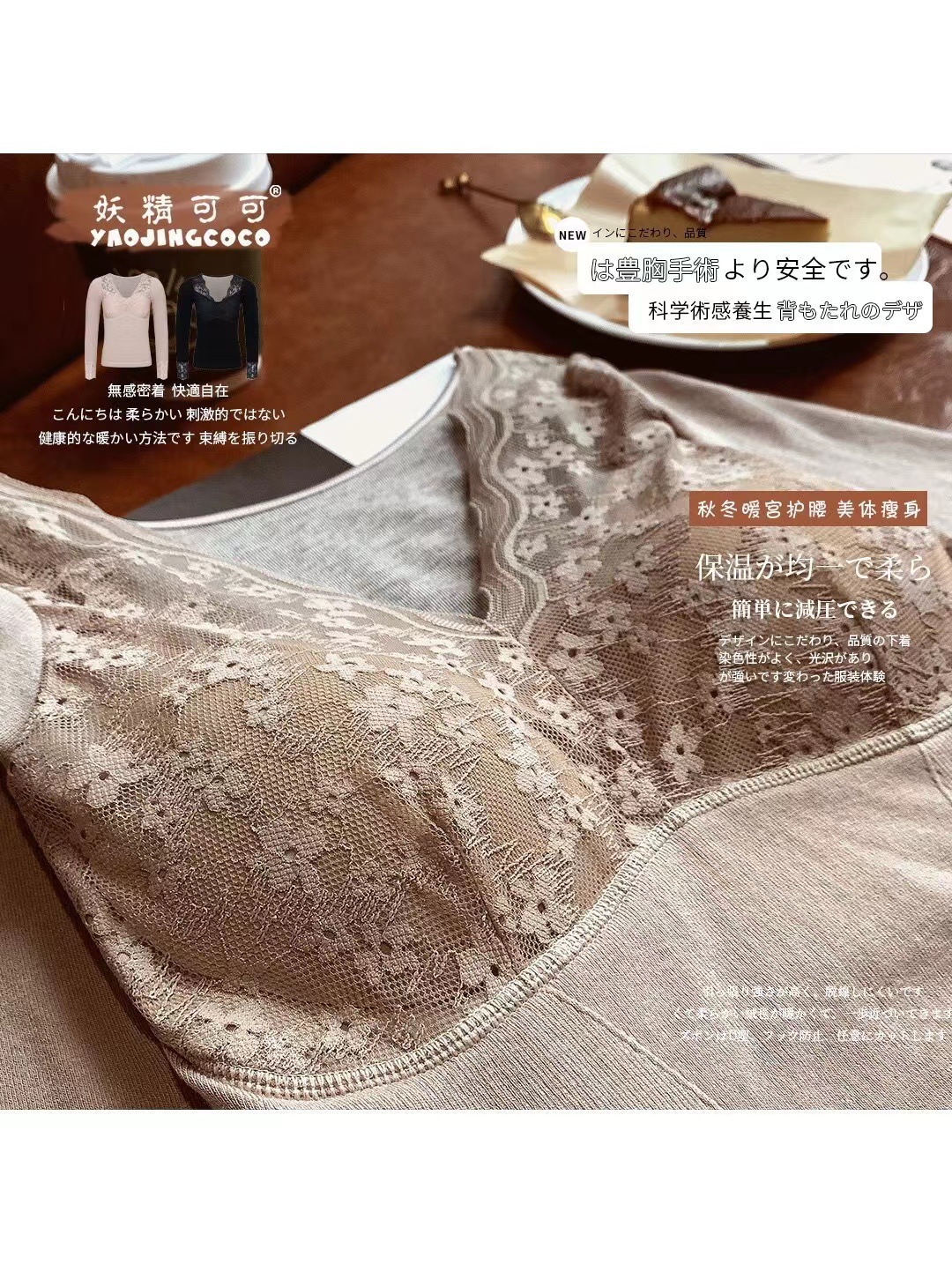 秋冬可可沐暖玲珑衣 无钢圈美胸内衣蕾丝打底加厚保暖上衣女 BQ玲珑衣