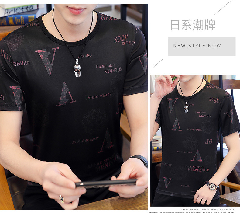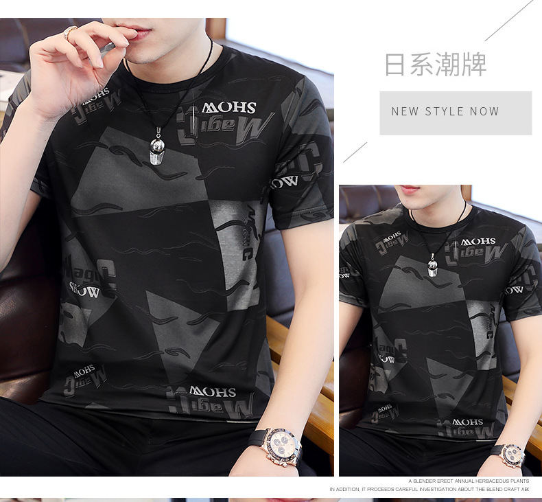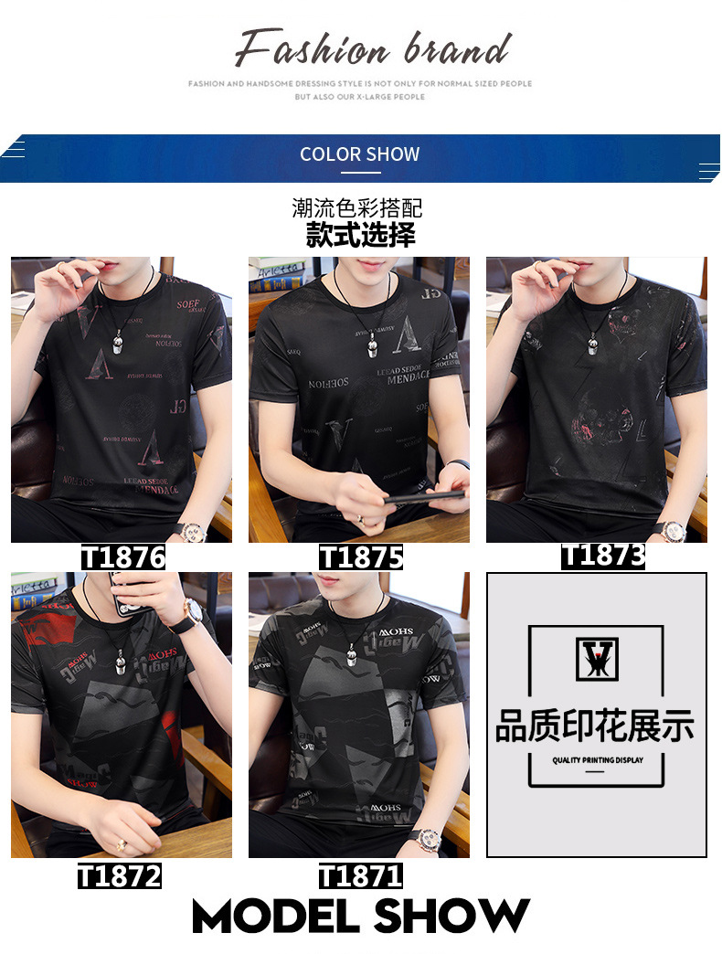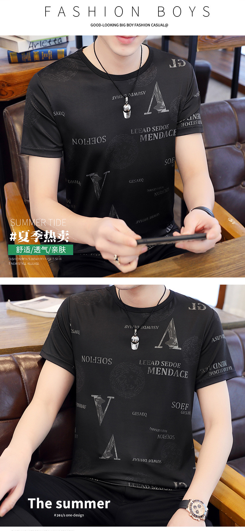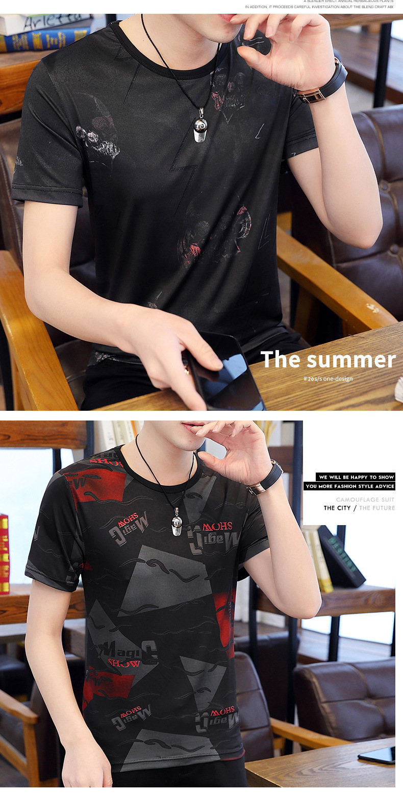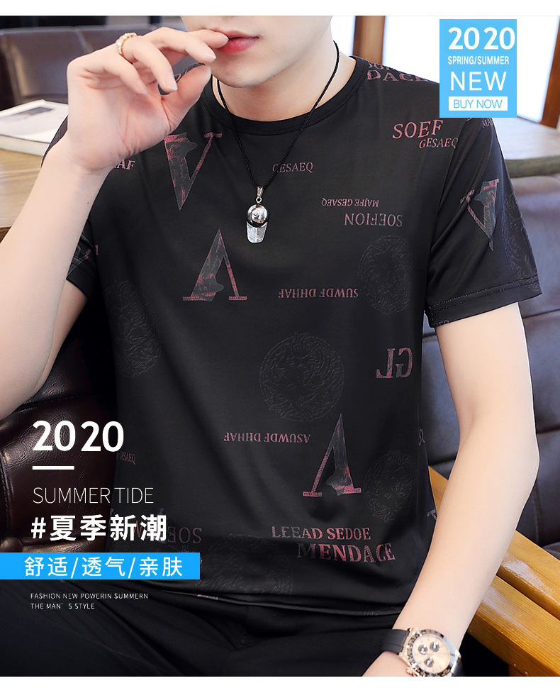 QS-BTS1871男士冰丝短袖t恤夏新款2020修身潮流大码衣服