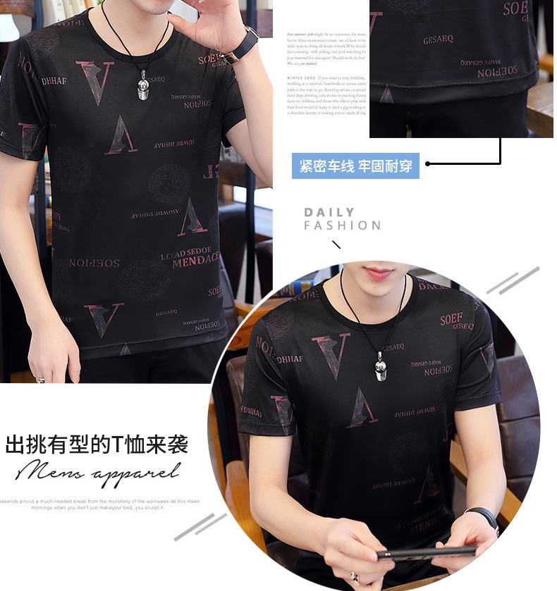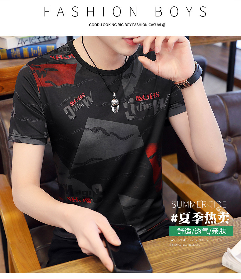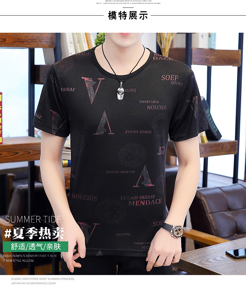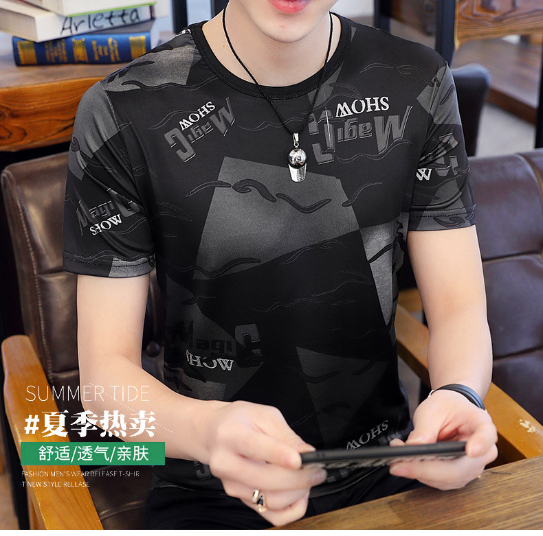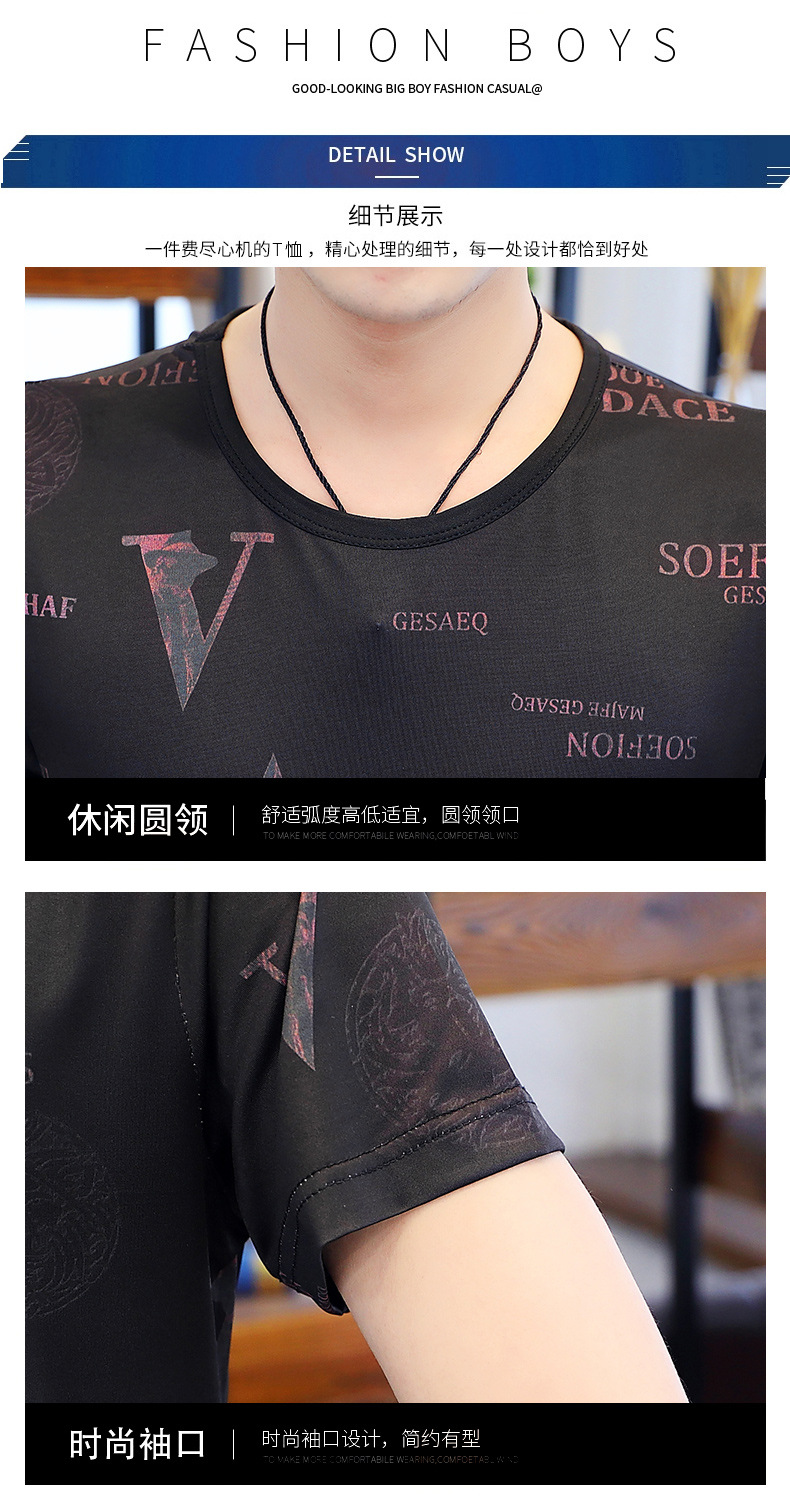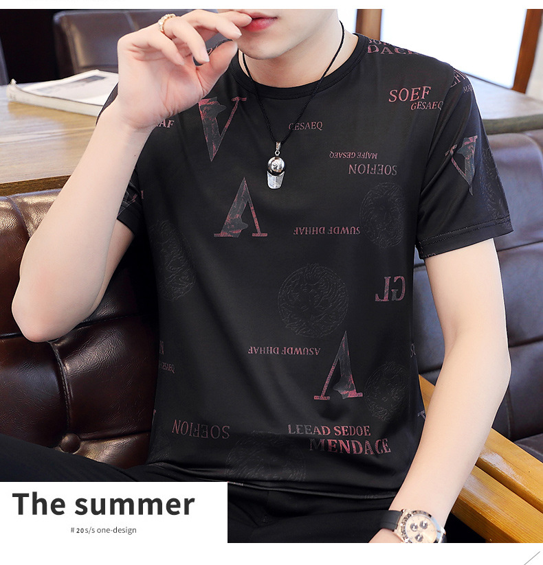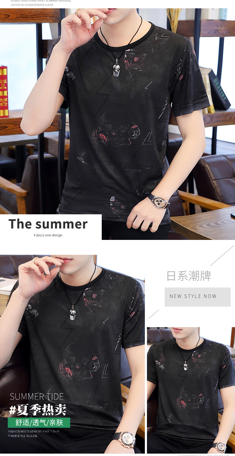 QS-BTS1871男士冰丝短袖t恤夏新款2020修身潮流大码衣服