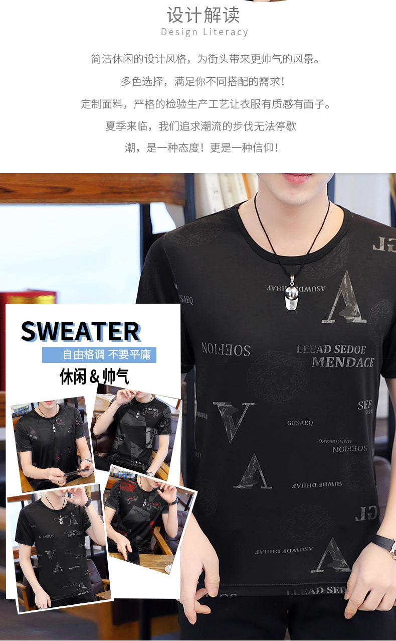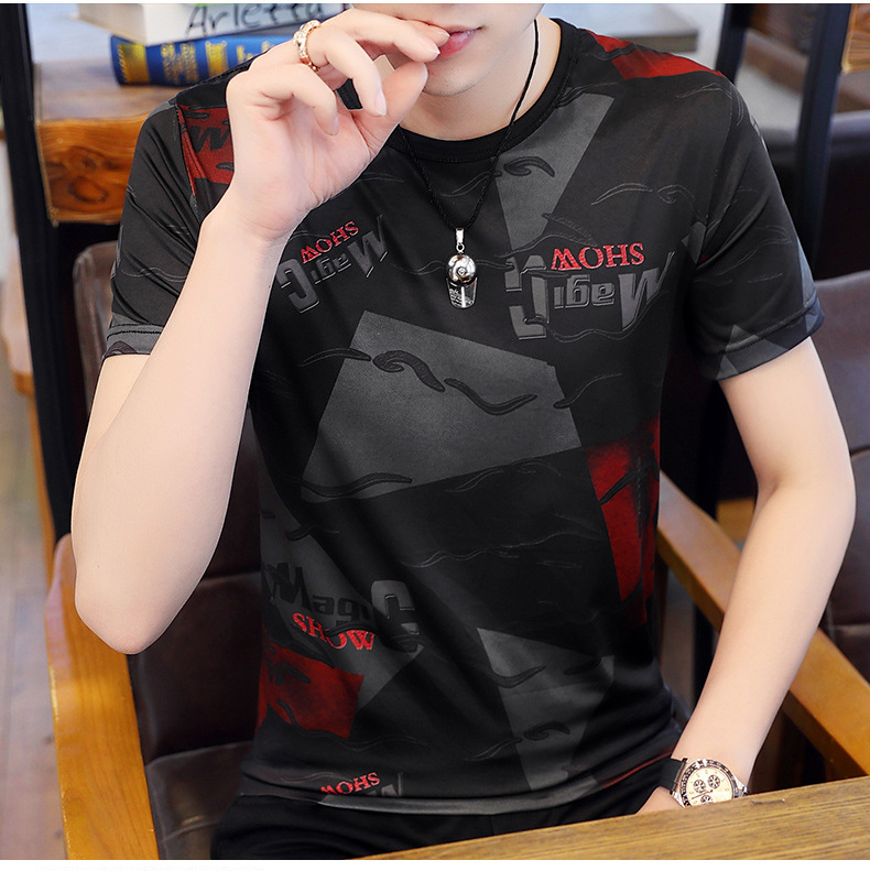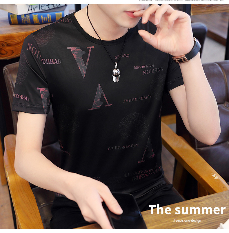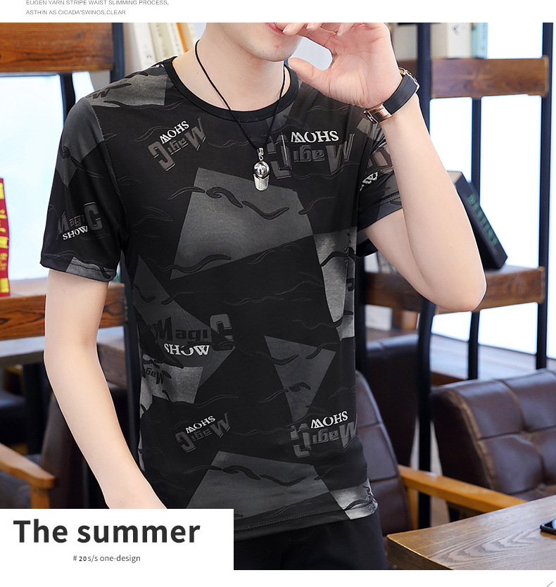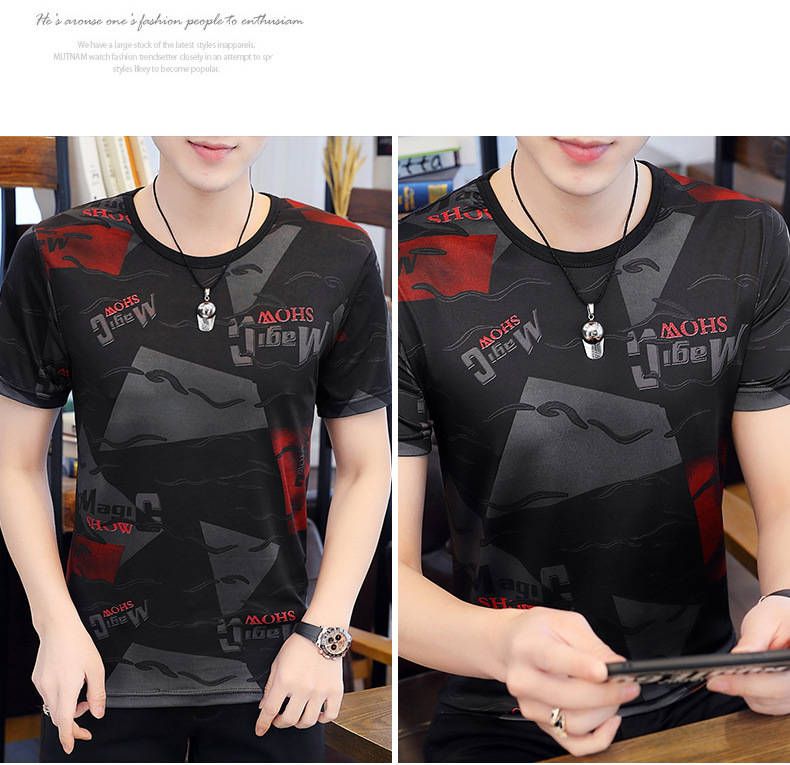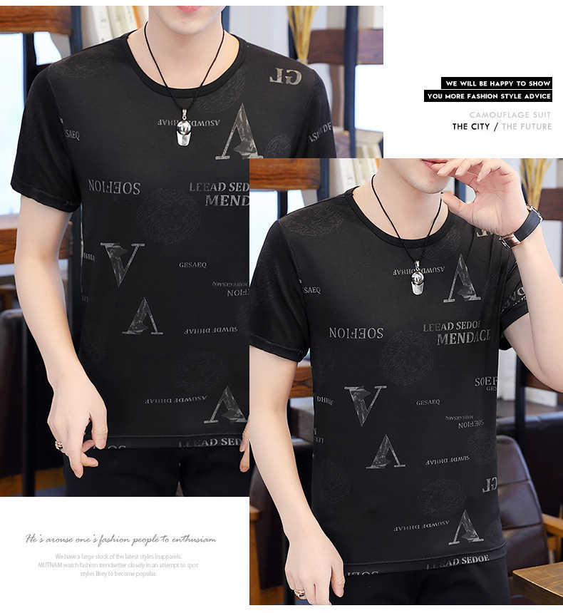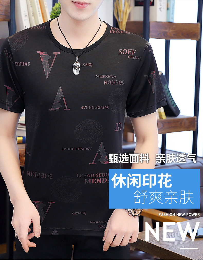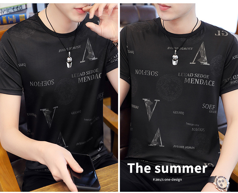 QS-BTS1871男士冰丝短袖t恤夏新款2020修身潮流大码衣服