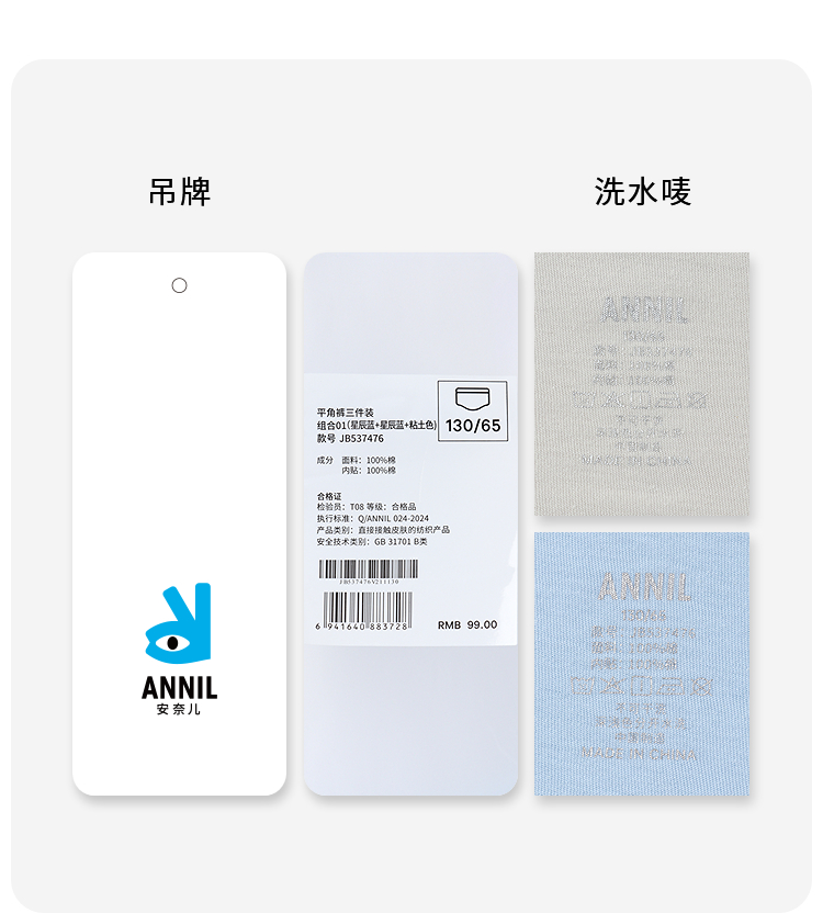 【实体店同款】男童平角裤三件装秋季新款安奈儿童装JB537476